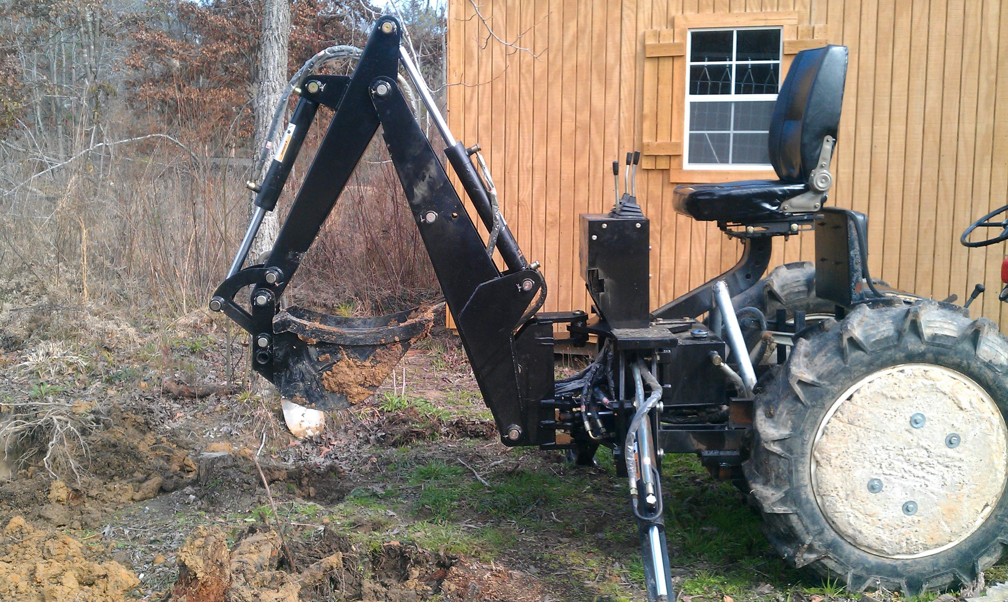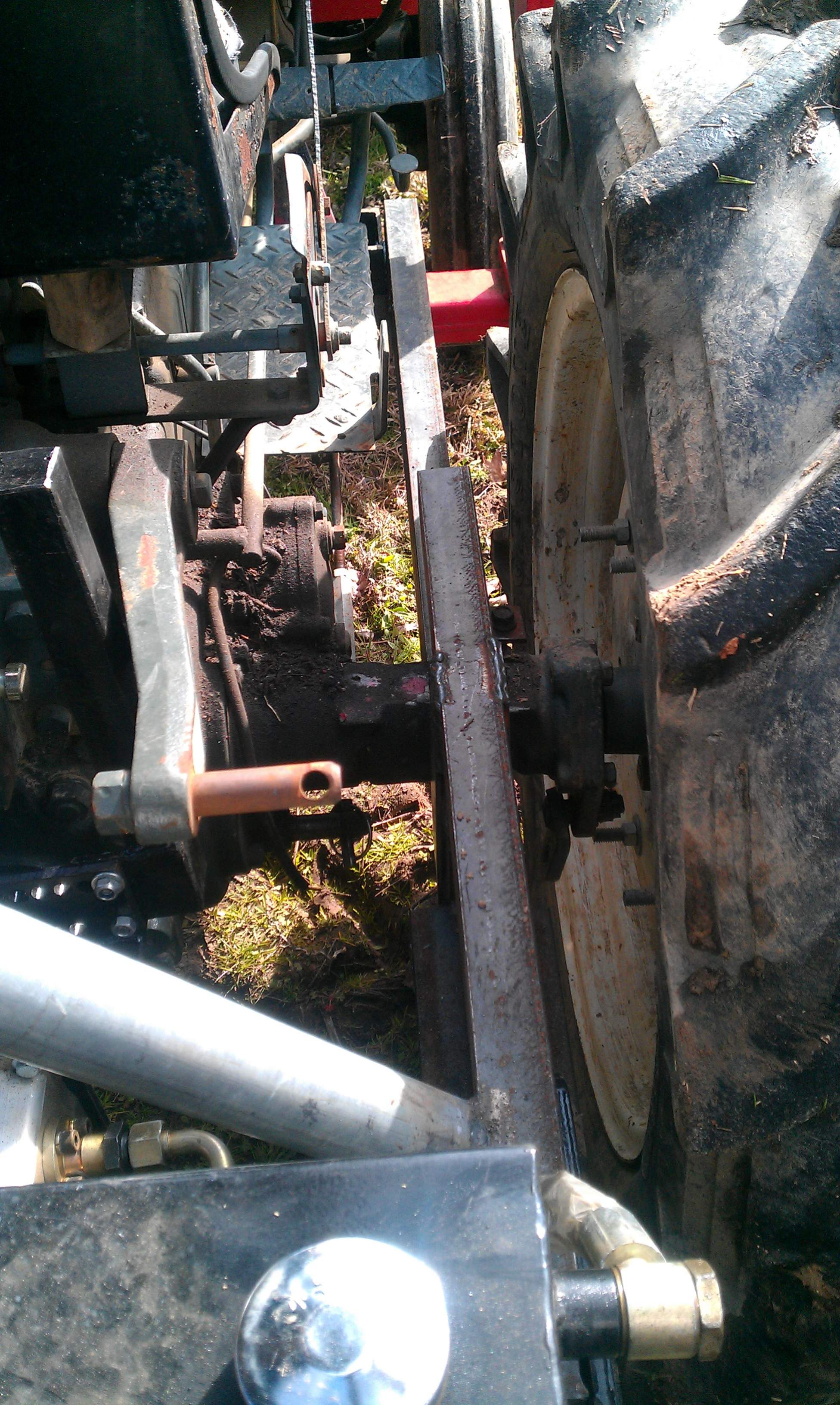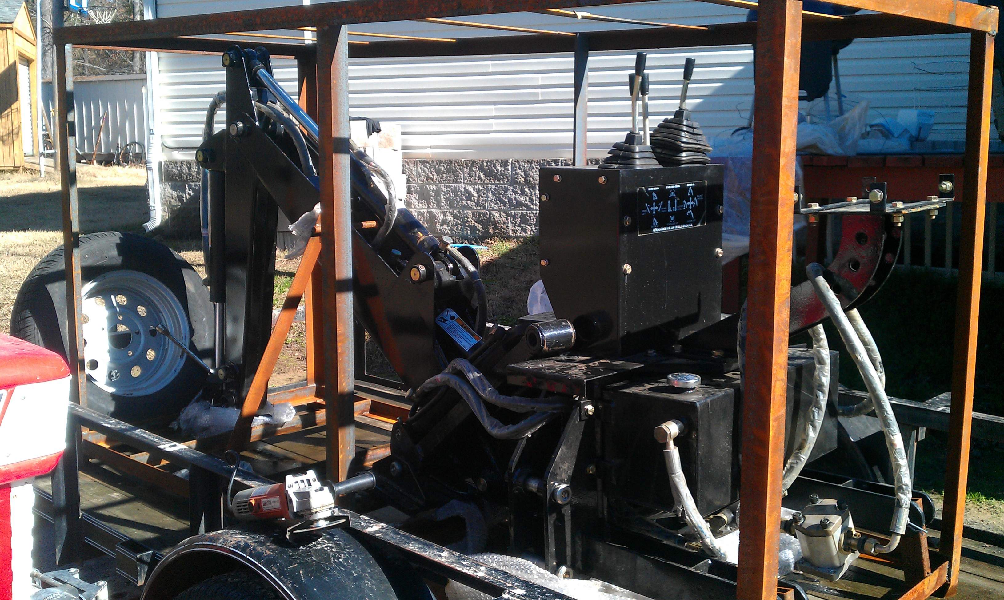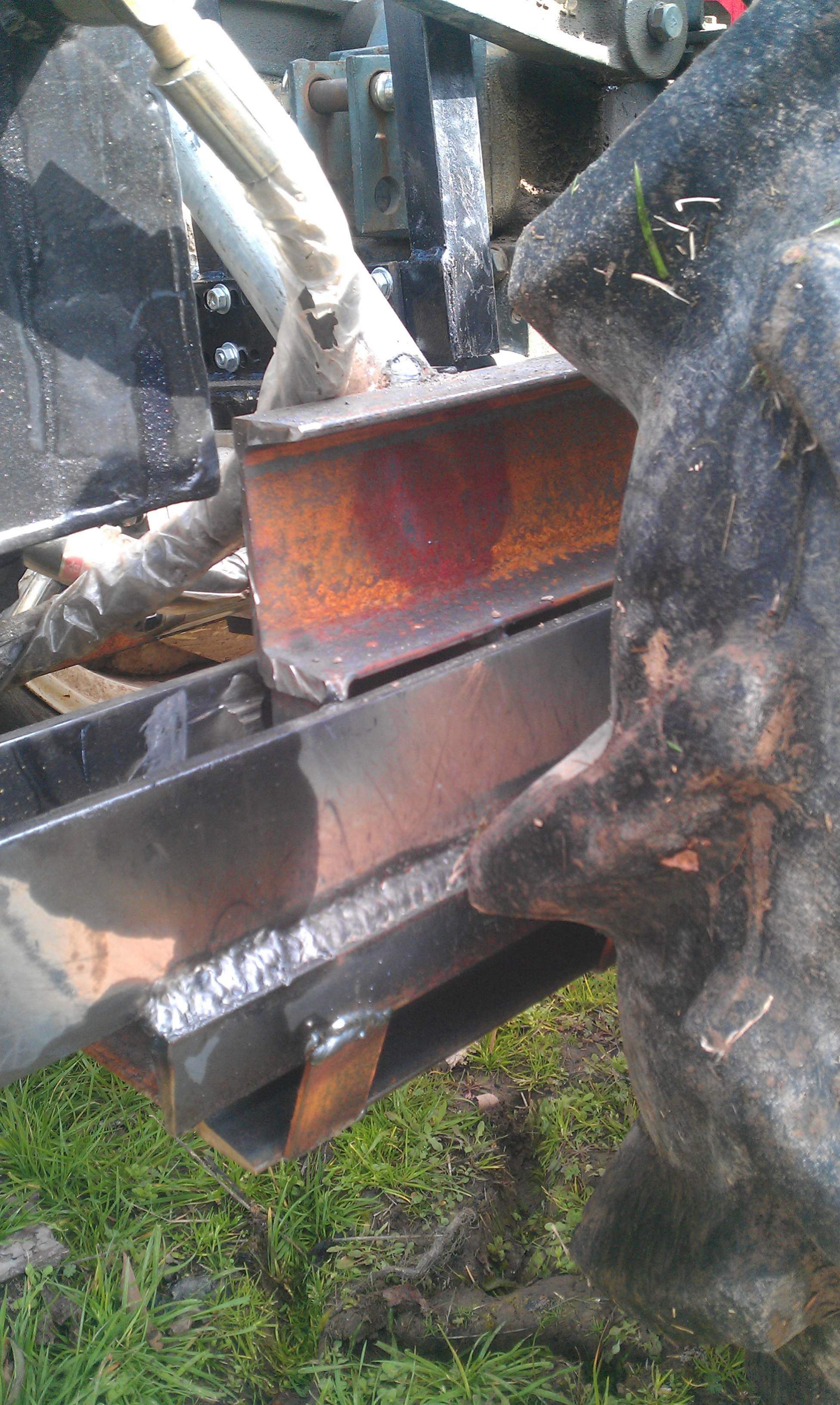 I used about 20 feet of 4 inch channel for the main body of the sub-frame with a few little pieces of scrap steel I had laying around to reinforce it. Also used a couple of sections of 2 inch pipe to weld the upper part (where the top link goes) to the subframe. I was concerned about the structural integrity of the sub-frame, due to my welder, so it is built like a tank. After using it today to dig up 3 stumps, I am no longer worried if it will hold up. It is an amazingly stout design that comes off the tractor by removing 4 bolts. I took the fenders off temporarily to make it easier to do all this and will remount them later.