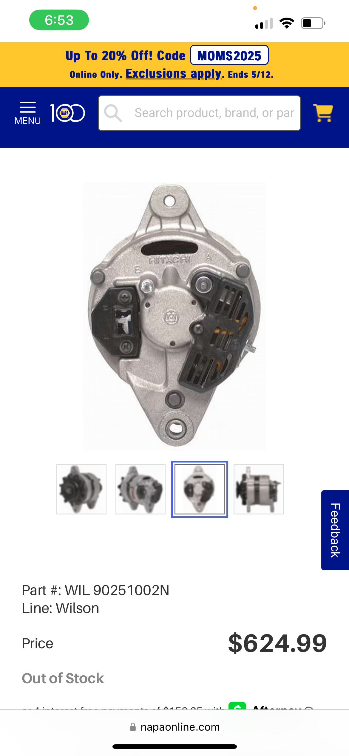 Autoparts for the alternator for a Yanmar YM2500 or a YM2610, that’s an identical plug and play match to the original Hitachi alternator? The original Yanmar part number is 124756-77200. The original Hitachi part number is LT115-52.