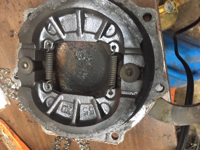 Another though is to unbolt the cam shaft and upper pin to remove the outer plate. That way you can at least see where the shoes are stuck at and perhaps disassemble from there.
