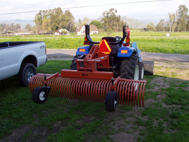 This hydraulic angle kit looks to be fairly easy to duplicate for less than the $461.00:eek: that York wants. The cylinder appears to be a "Chief" so that's commonly carried through TSC and other outlets, hoses and tips are no problem either. My York RI 8' rake is exact to this sales photo with the exception that mine has the standard mechanical adjustment bar but the mounting tabs are the same but York Modern offers up no cylinder specs as far as I know. The rake's two attachment plates are of different thicknesses so the cylinder's base clevis fork needs to have a 1" opening and the rod clevis fork needs to have a 3/4" opening or both just at 1" as in the photo there looks to be some play in the rod's clevis fork.