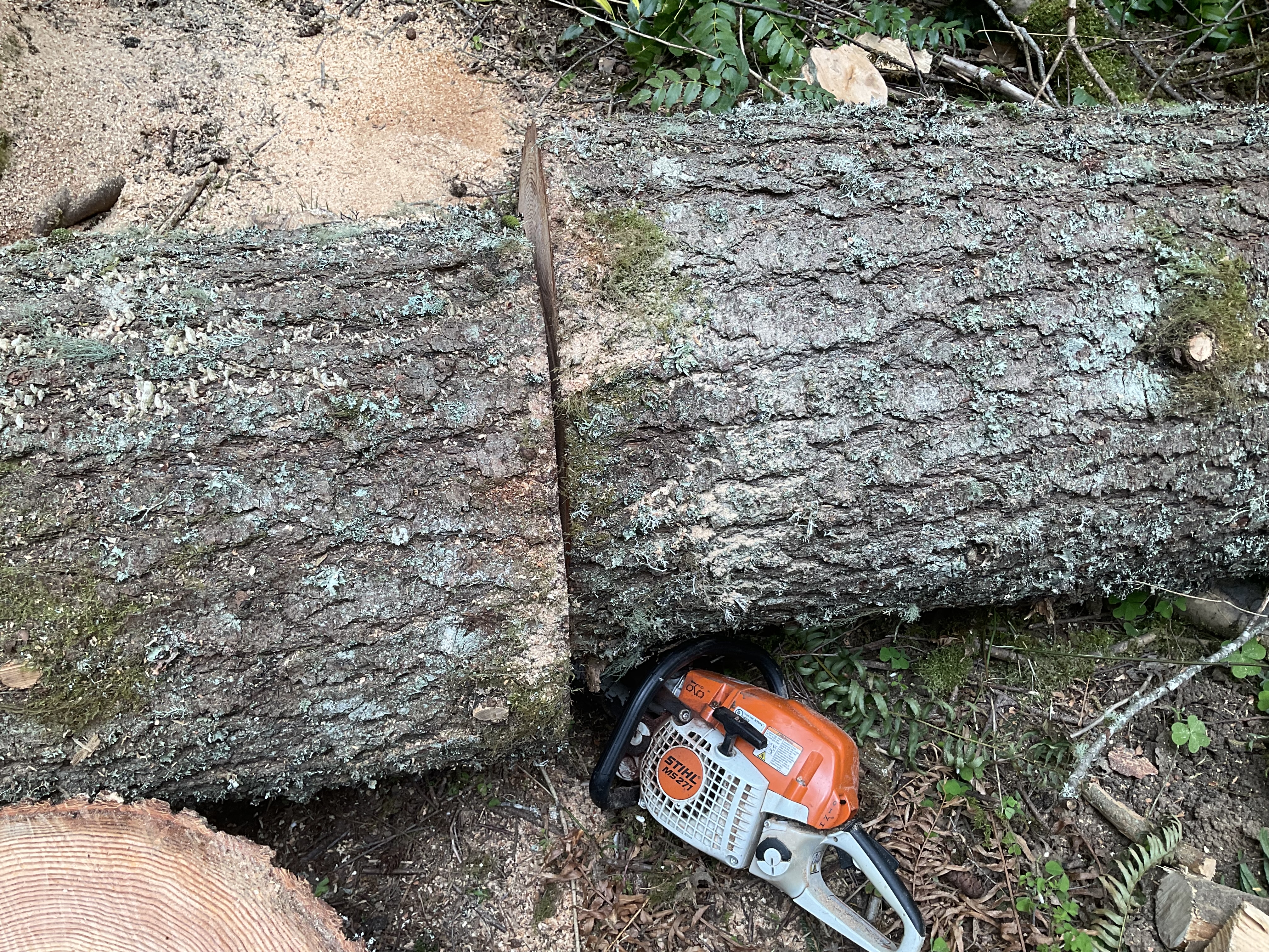 I was felling a dead Doug fir🌲 well over 100’ and 30+” at the stump and didn’t move my saw far enough away