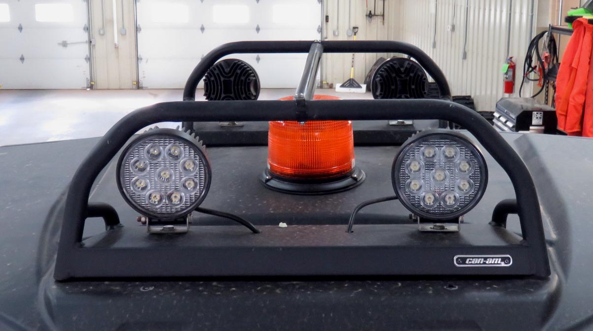 I've used many ATV's and UTV's and sleds to groom ski trails with and we usually don't have to deal with other machines out there and that's what you see in these photos. High mounted LED's are by far, the most important lights we have on them. Having said that, same as you do with brights on your auto, you need to turn them off when meeting other machines. I believe all you'll see in these photos is spot lights.