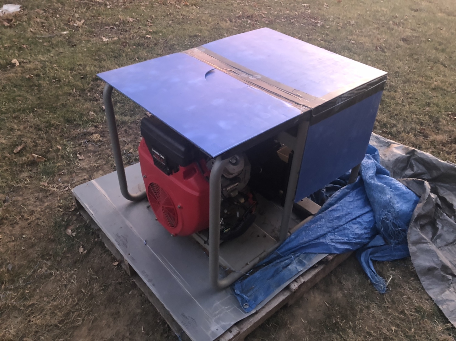 ;) Here’s a pic of the partial enclosure I made to keep it a little dryer if it’s raining. Eventually I’ll build or find an inexpensive doghouse for it, leave it wired to my panel, and hook up a remote start switch in my basement. Going to use a power door lock actuator to operate the choke.