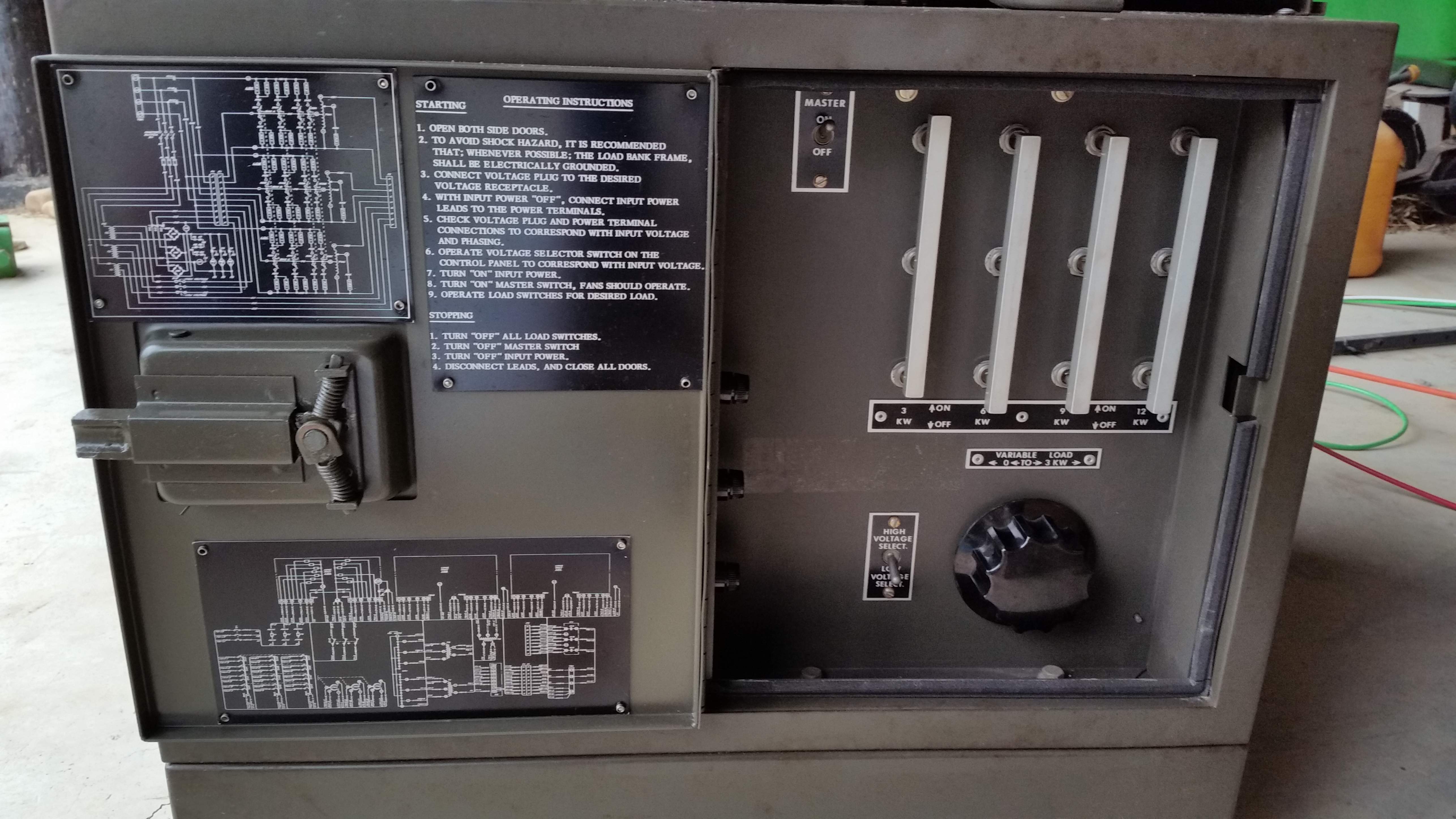 A surplus military load bank (Essex Electro Engineers A427 0-33kw) single phase and 3 phase