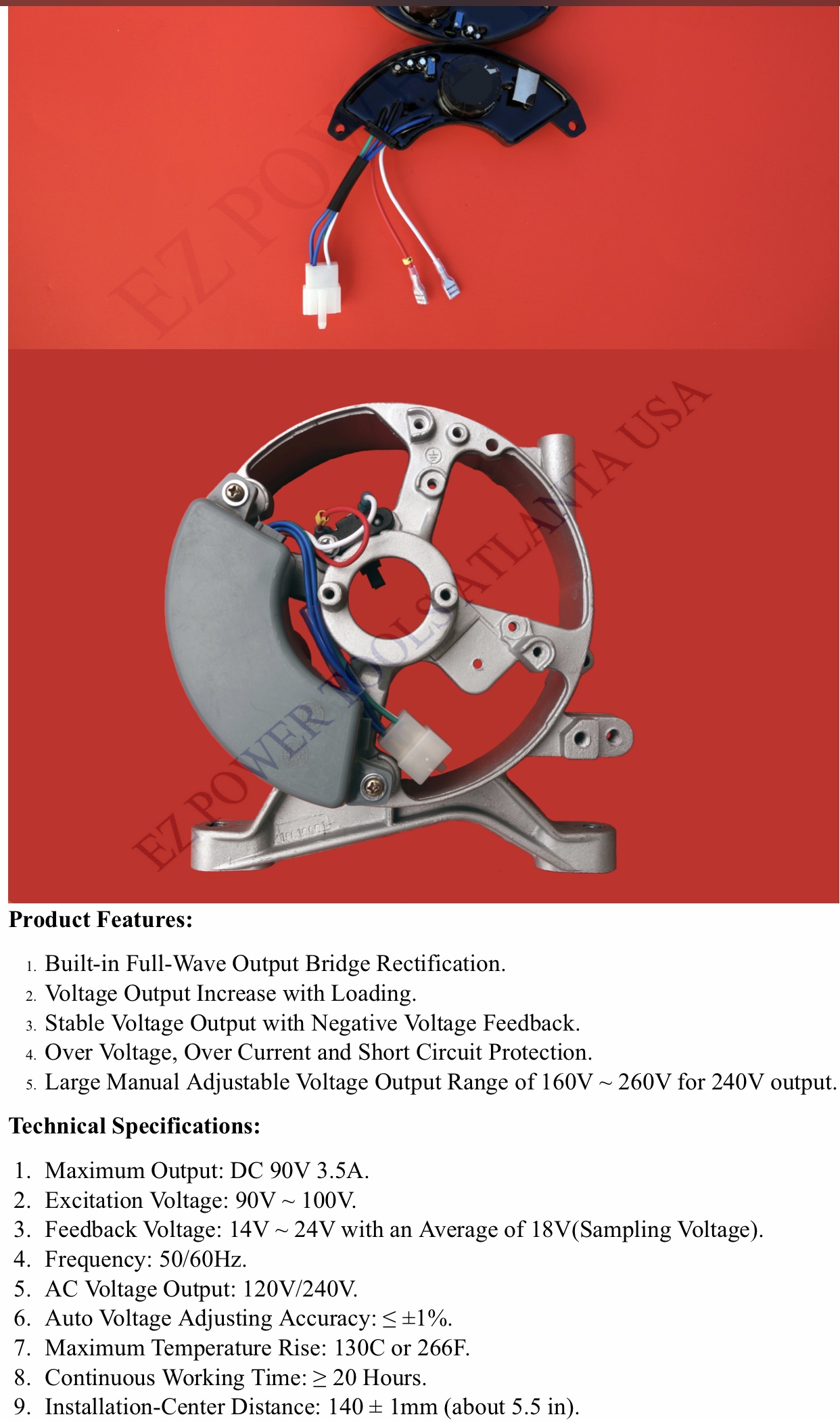 There are many generic voltage regulators for generators. As long as you know the voltage range of your rotor. Most VRs have a pretty broad range and will put that voltage to the Rotor that will create 120 or whatever you set it for on the output.