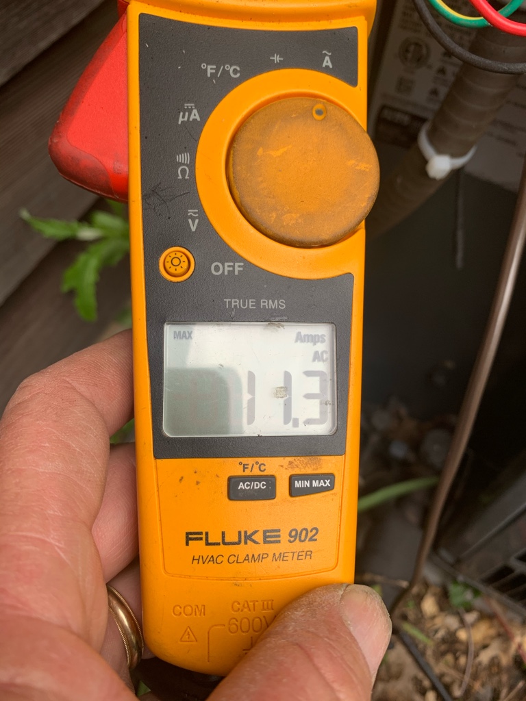 After researching the Hyper Engineering “Sure Start” I figured I would investigate further and plunked down the $275 to buy one to test. I installed it on a 3-1/2 ton heat pump. Here is the before and after results as measured on my clamp on ammeter set to capture peak reading. The before was with a hard start, the after was with a sure start.