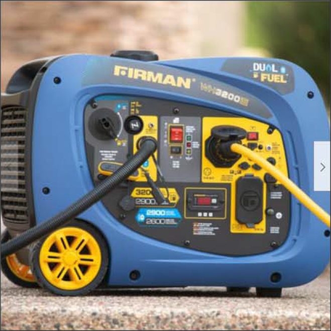 Our Firman inverter dual fuel 2900 / 2600 W running on LPG did very well, and was easily able to power our needs.