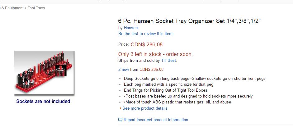 Fairly well priced I think. Even on sale currently. 3 Pc SAE Socket Tray/Organizer