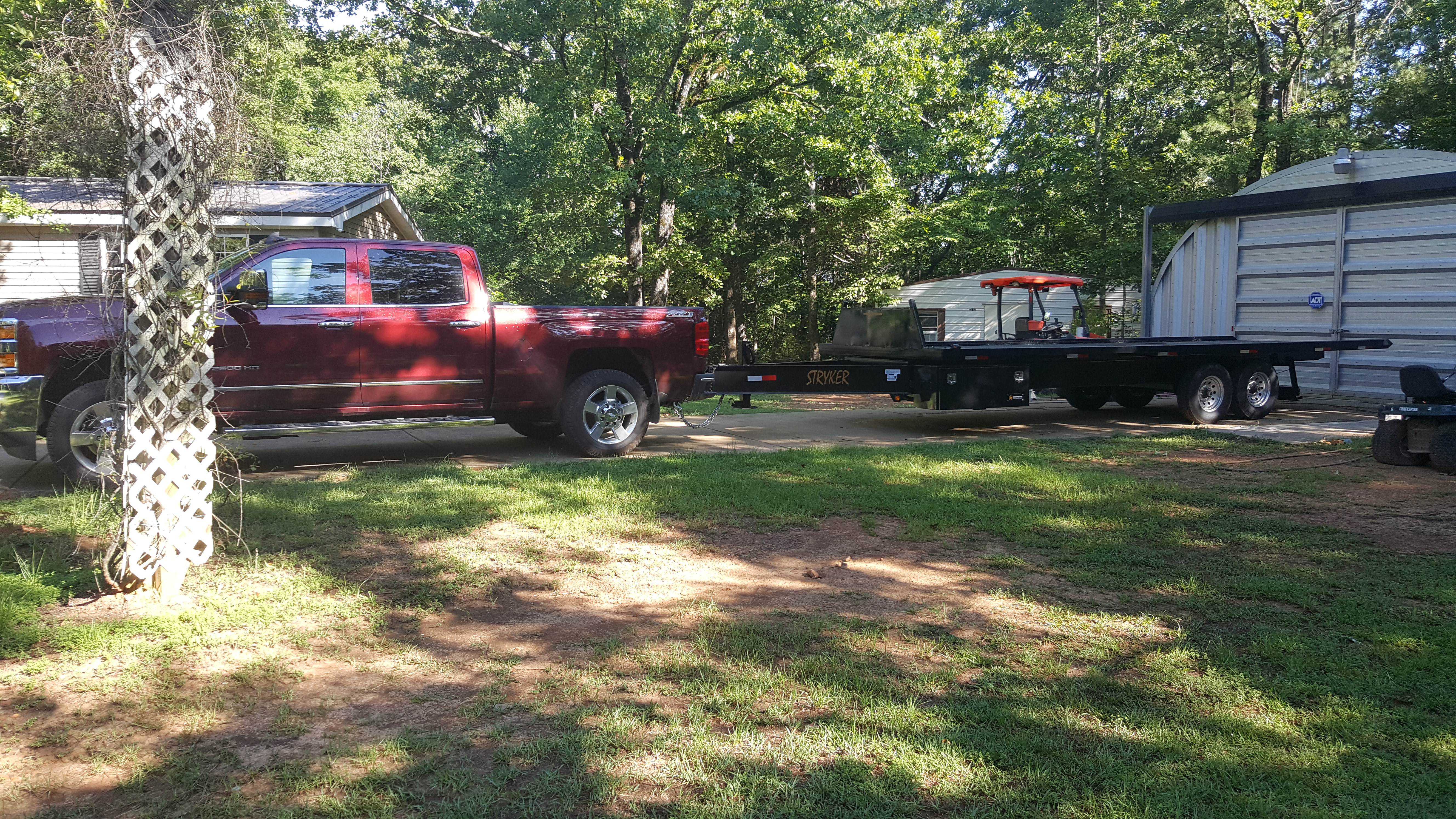 That's pretty slick but I would strongly consider a pintle hitch setup and 2.5" hitch shank. As far back as the axles are it looks like it would be quite a bit of weight on the truck.