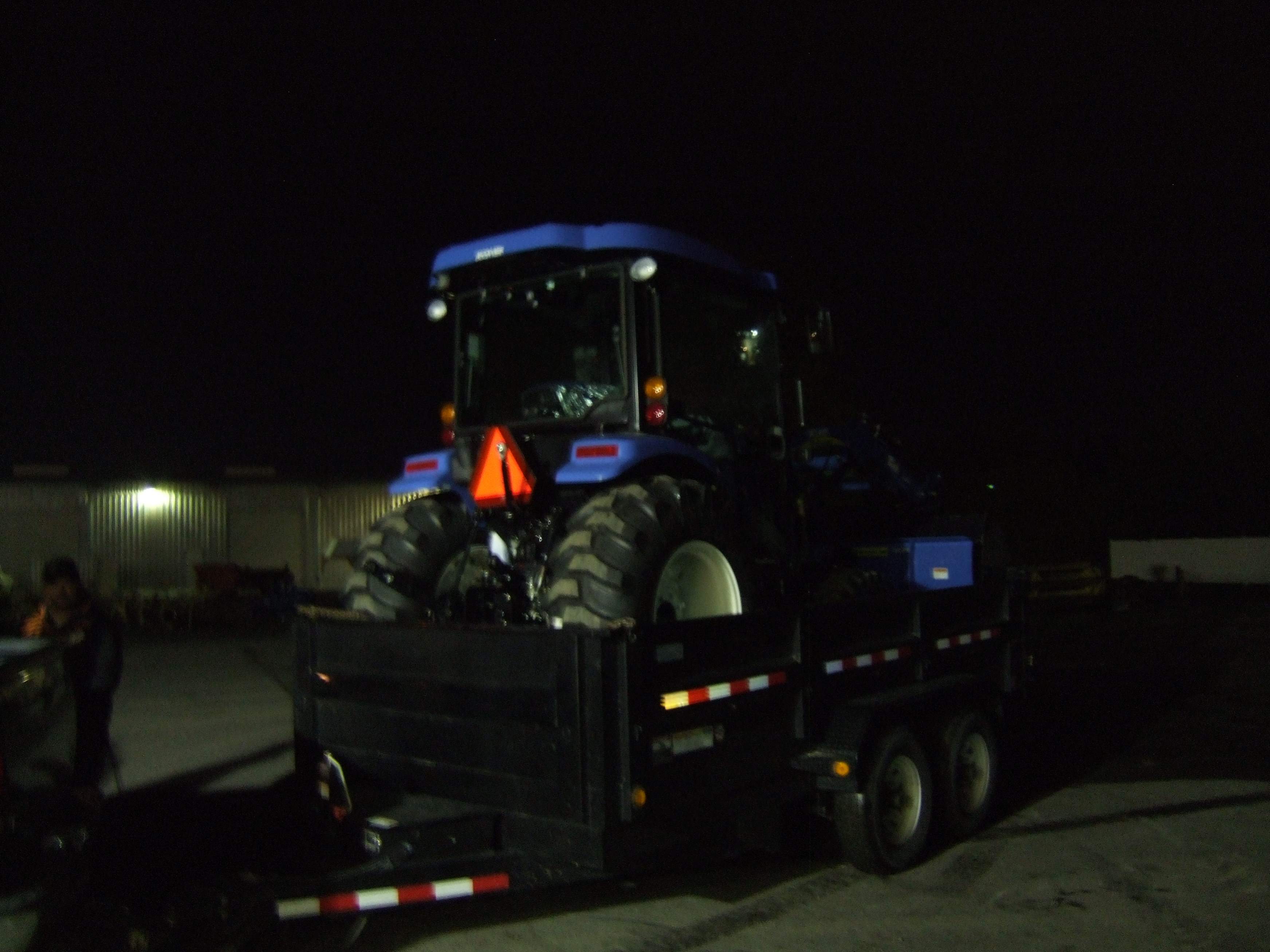 This is my tow vehicle and how I got the New Holland home. As you can see it was dark by the time we got it loaded.
