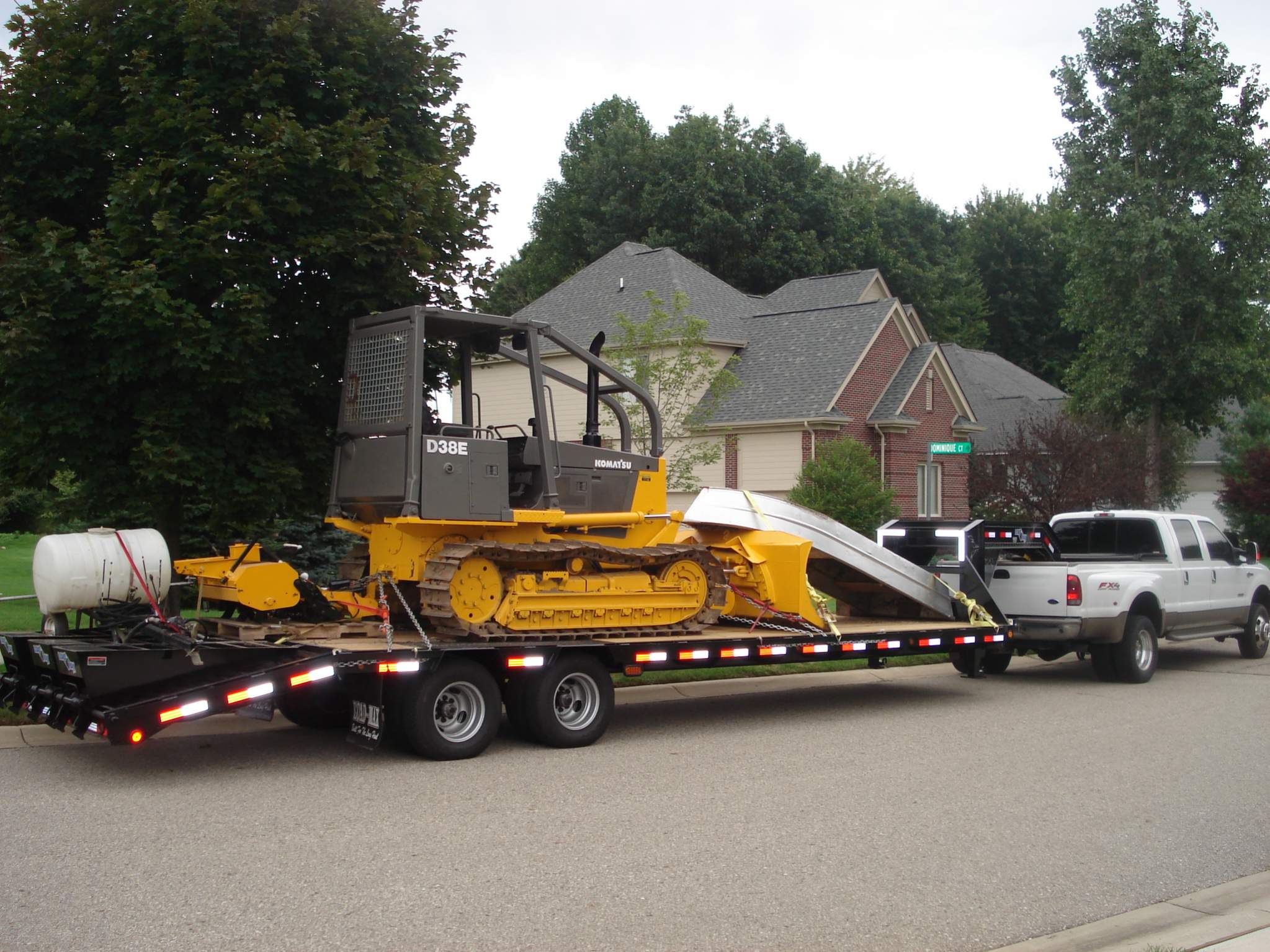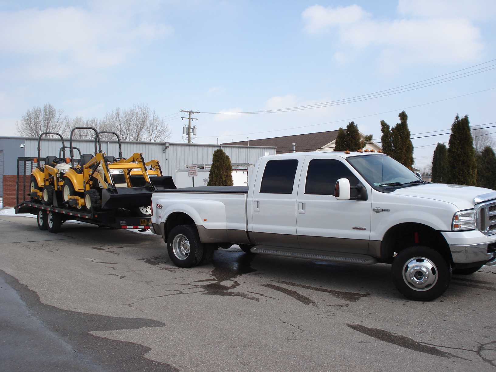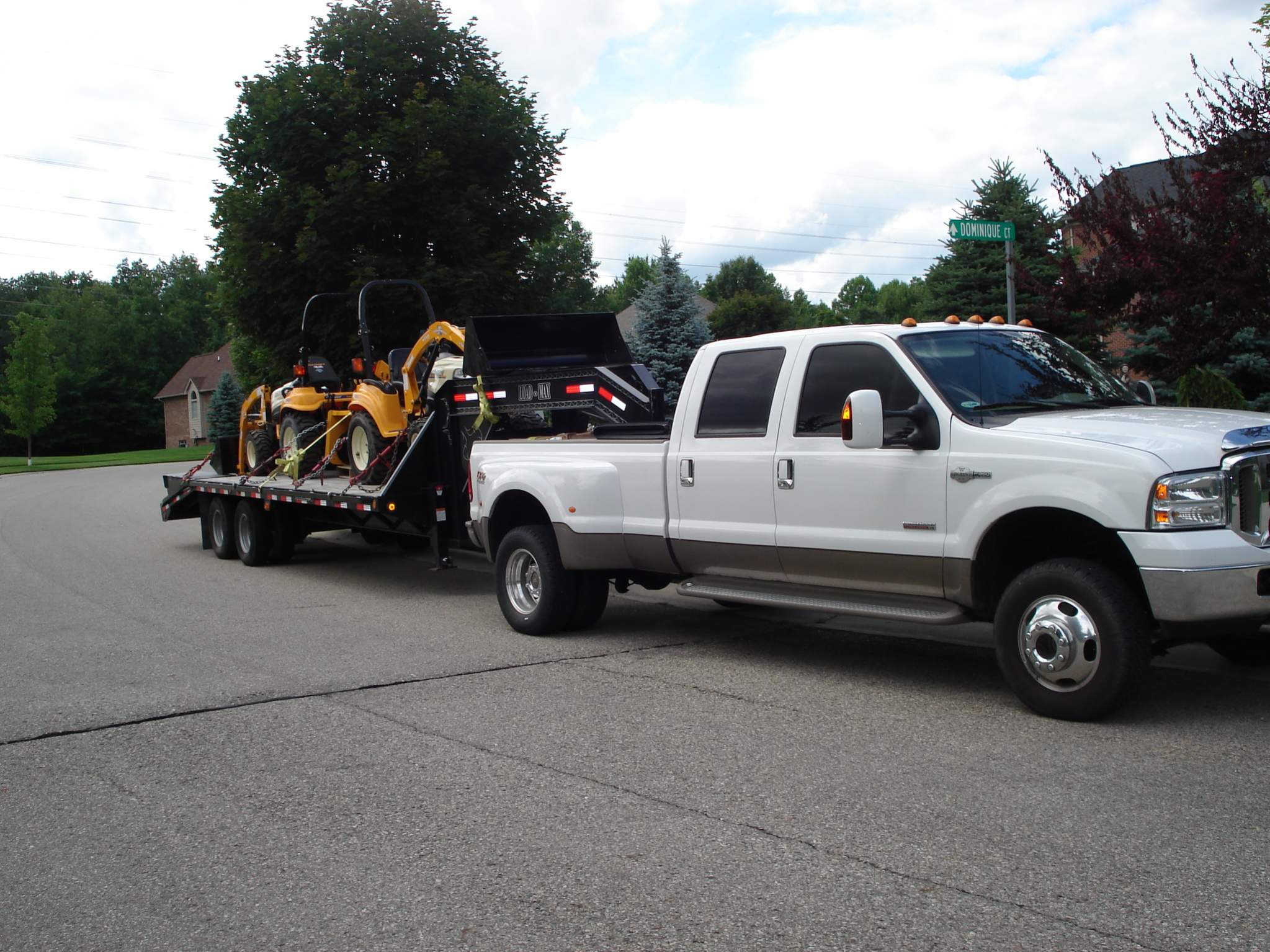 Finally got a truck that could haul my trailer with a full load. Well actually more than a full load, needed the bucket on the truck for ballast and so trailer was not over gross. Also about 2500 lbs tongue weight. Total weight 22280lbs according to cat scale. Wish I could say I do not even know it is back there but it is a pretty good load, pulls well though.