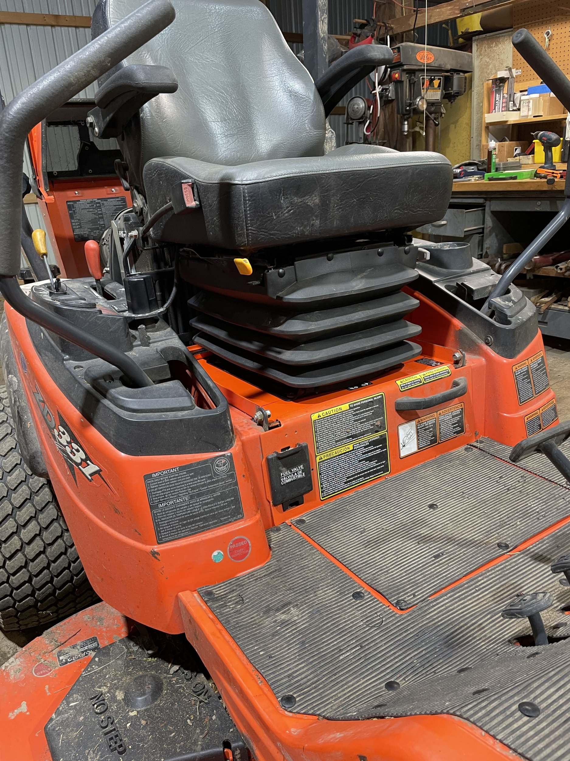 I was going to use the winter down time to retrofit an air suspension seat to the 331. The stock suspension seat is not very good and it slows me down during mowing. I am working on getting a Grammer seat base functional and using it on the mower. Turns out a wire was pinched inside the seat and that prevented the compressor from turning on. More to come on this