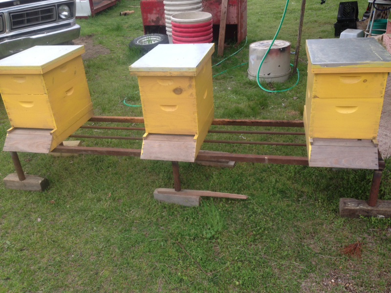 Haven't got any advice since I'm new myself and jumped off the deep end . I bought 12 new hives last year but never could get any bees . I have 12 nucs bought that I'm waiting on to be ready . I just build me some hive stands yesterday . Going to run 3 hives per stand but can run 5 on them later if needed . There going to be on 4" concrete blocks at there final location .