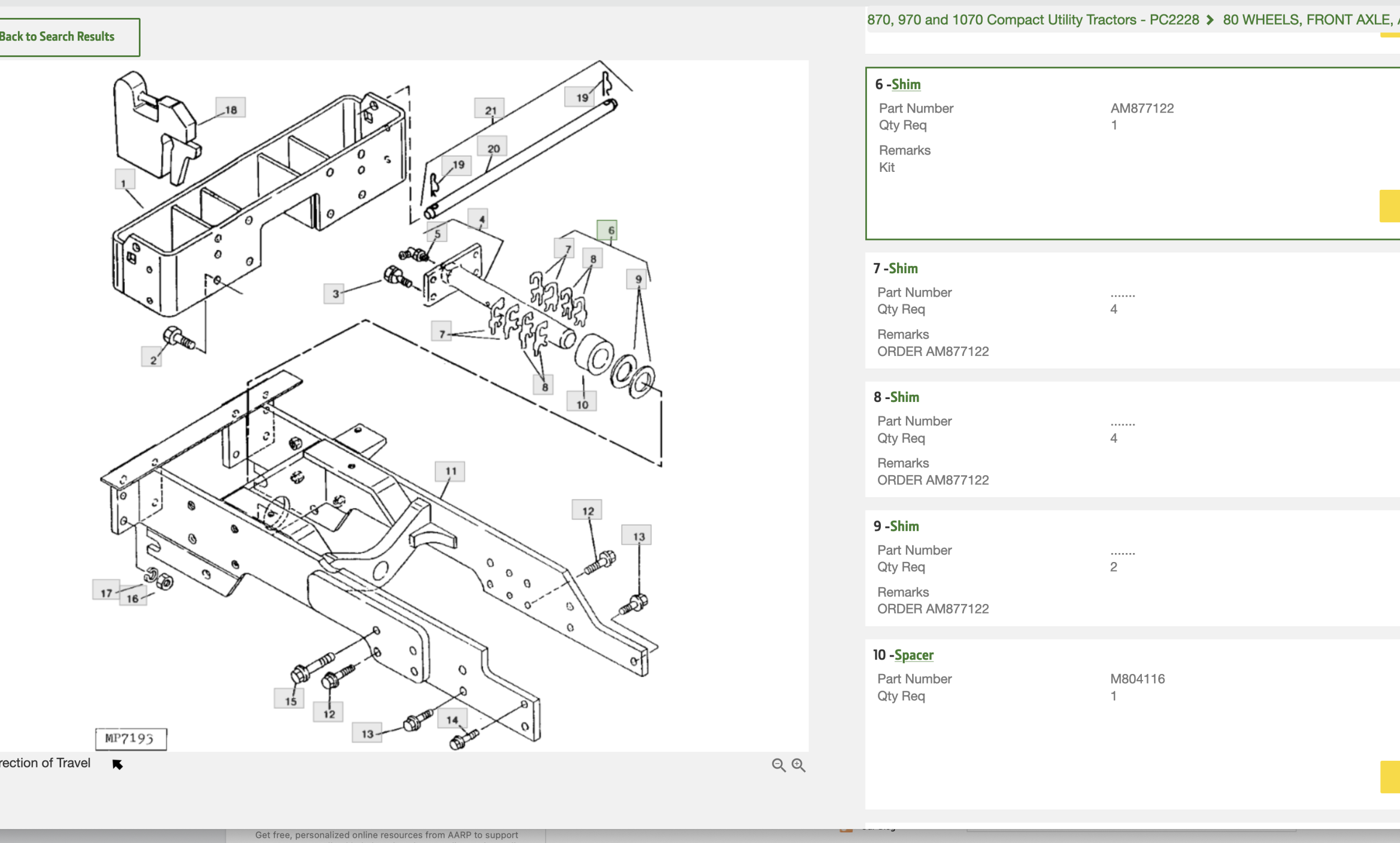 I have a 4wd 1070, some time ago the shims fell out and now I have lots of slop in the front axle when going from either forward to reverse etc I want to replace, but I've looked at the ipl and can't seem to find where (what ipl) they hid it on?