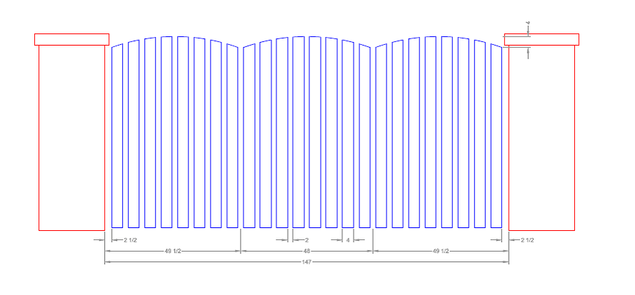 I need to build 2 6 ft. gates for a customer and have a few questions is anyone is willing to help out. I made the pictured gate a couple of years ago. Now i need to make two more for the space to the right of the column. The customer wants the gates to be attached to, two existing 6' brick columns. I am worried about the gates sagging and not lining up in the center. I am also concerned about the brick columns not being strong enough for anchor points. I planned on using. 7" X .75 threaded J-bolts w/ two part epoxy along with a spring loaded wheel but, still am concerned. Could also use use some hinge advise too. Last time i just made the females with .5" X 1.5" flat bar. Don't think that will cut it this time. Does anyone have any suggestions? I also attached a drawing of the new gate as well. Thx