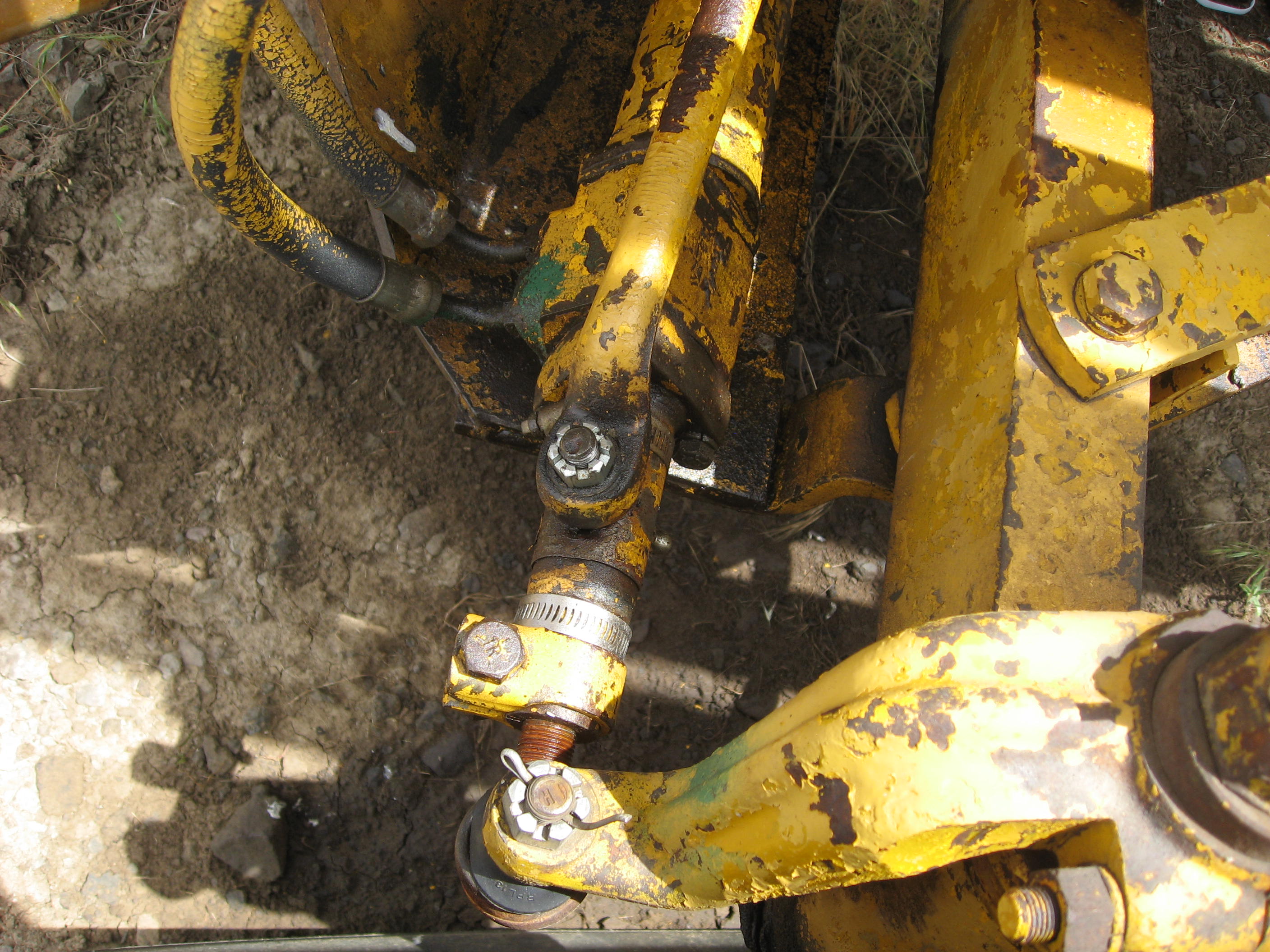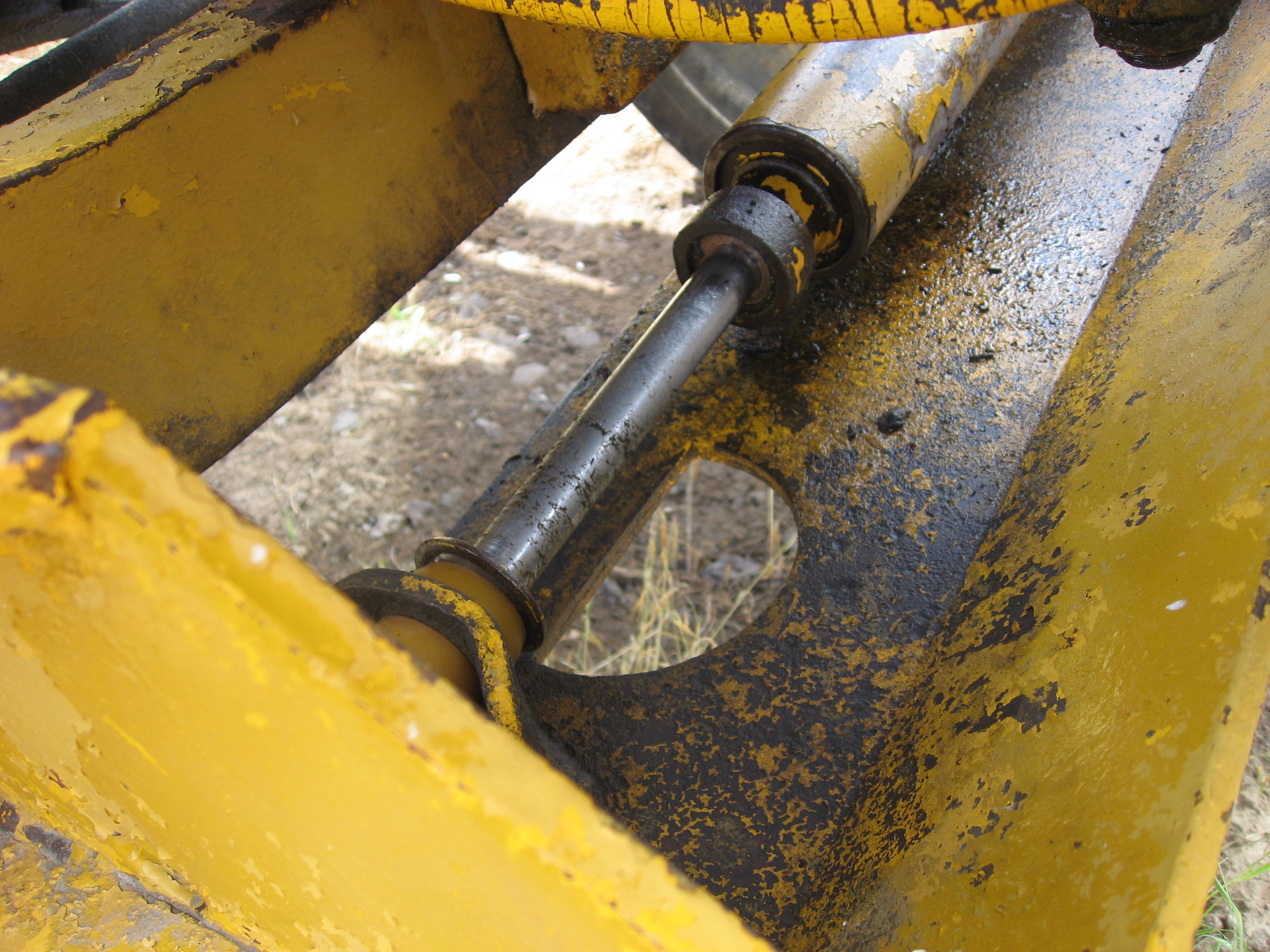 As you can see from this photo, the two arms that connect with the trunnions about mid cylinder, those arms are not on earlier CK's. And you can see also in this photo the leveling cylinder that is almost vertical above the lift cylinder, Stan.