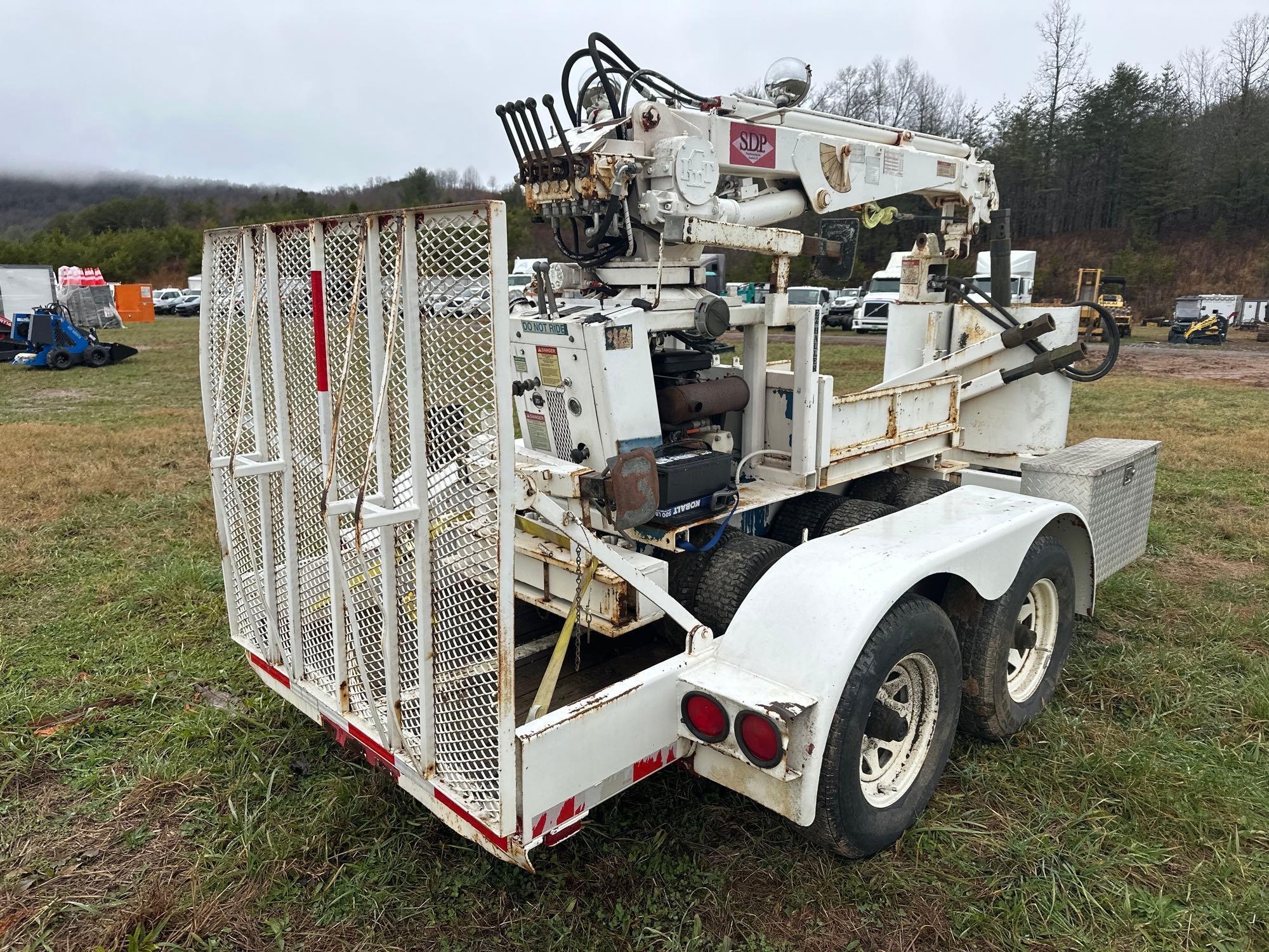 1998 IMT EZ Hauler Mini Crane with Trailer - Serial # EZH981005 - articulating Tired Crane - gas engine - auger bit hookup included - hours unknown - trailer no title invoice only