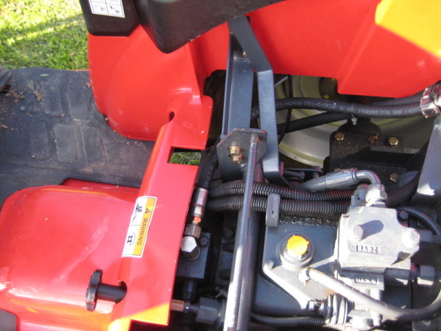Well it happened sooner than I expected but what can ya say? Was doing some loader work this afternoon and I hear a "Hissss" look down and see a stream of fluid shooting out just behind the left front tire. I jump off, get a closer look, whoops - I quickly high-tailed it over to the garage and shut her down. The hyd hose going to the bottom & rear of the gear pump had been rubbing against the loader frame and just blew out. I'd never noticed it rubbing before...course why should I be inspecting the fitment of hoses on a brand-new machine? Anyhow, I can see where it attaches to the pump but it then routes up under the cowling below the stearing(sp?) wheel and I have no idea where it ends up at? I have no service parts manual (or active dealer for that matter) and I would just as soon fix it myself. I realize that these kinds of things eventually just happen. I know that because it's new hoses should be covered under warranty but I don't have an active TYM dealer close to me and I'd rather just get it fixed as soon as possible.