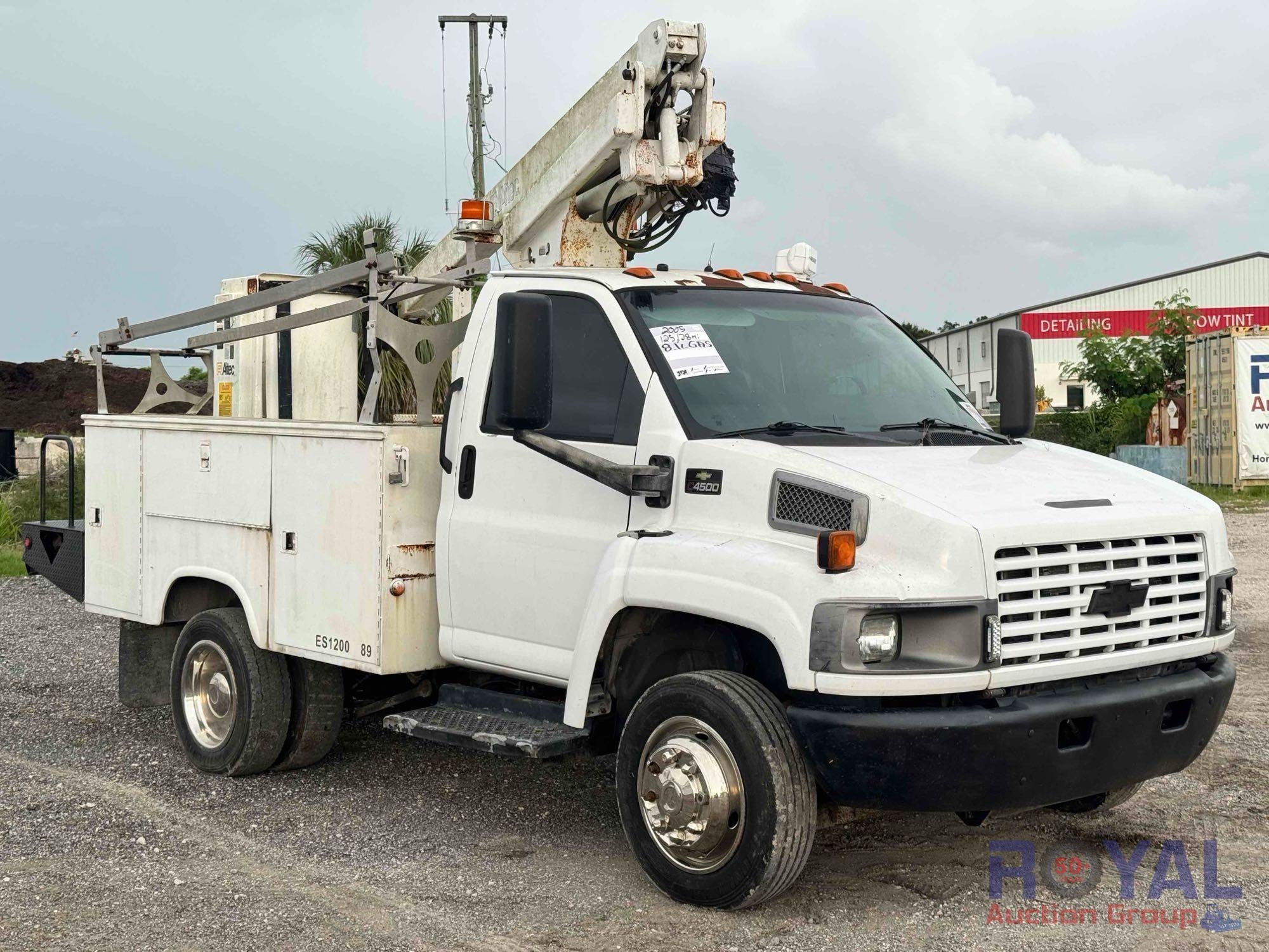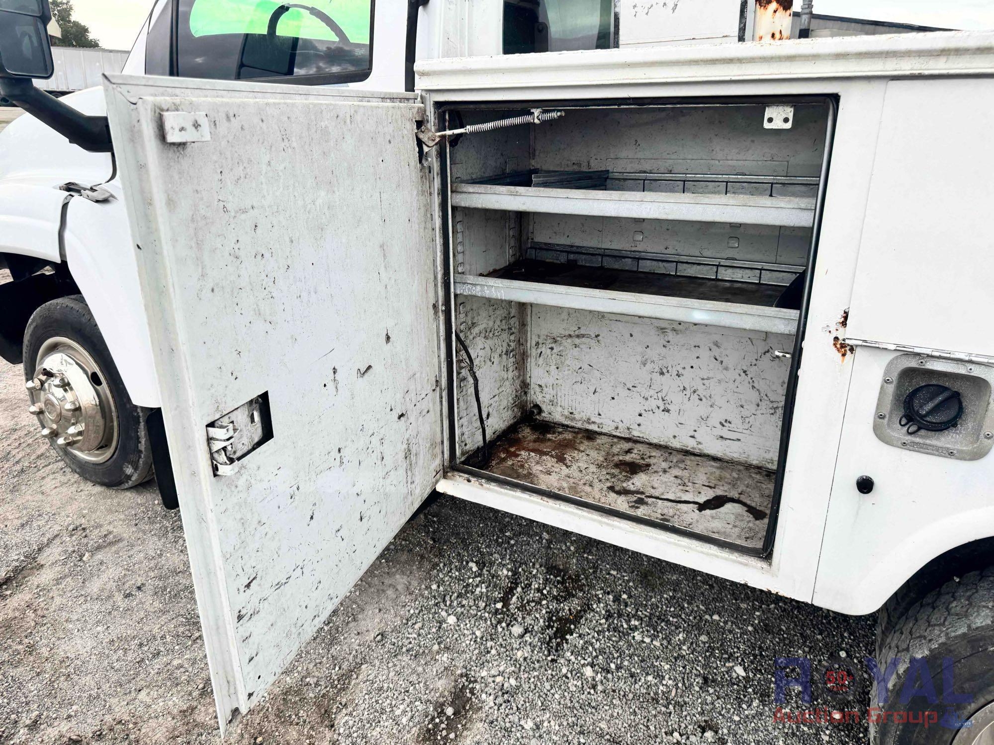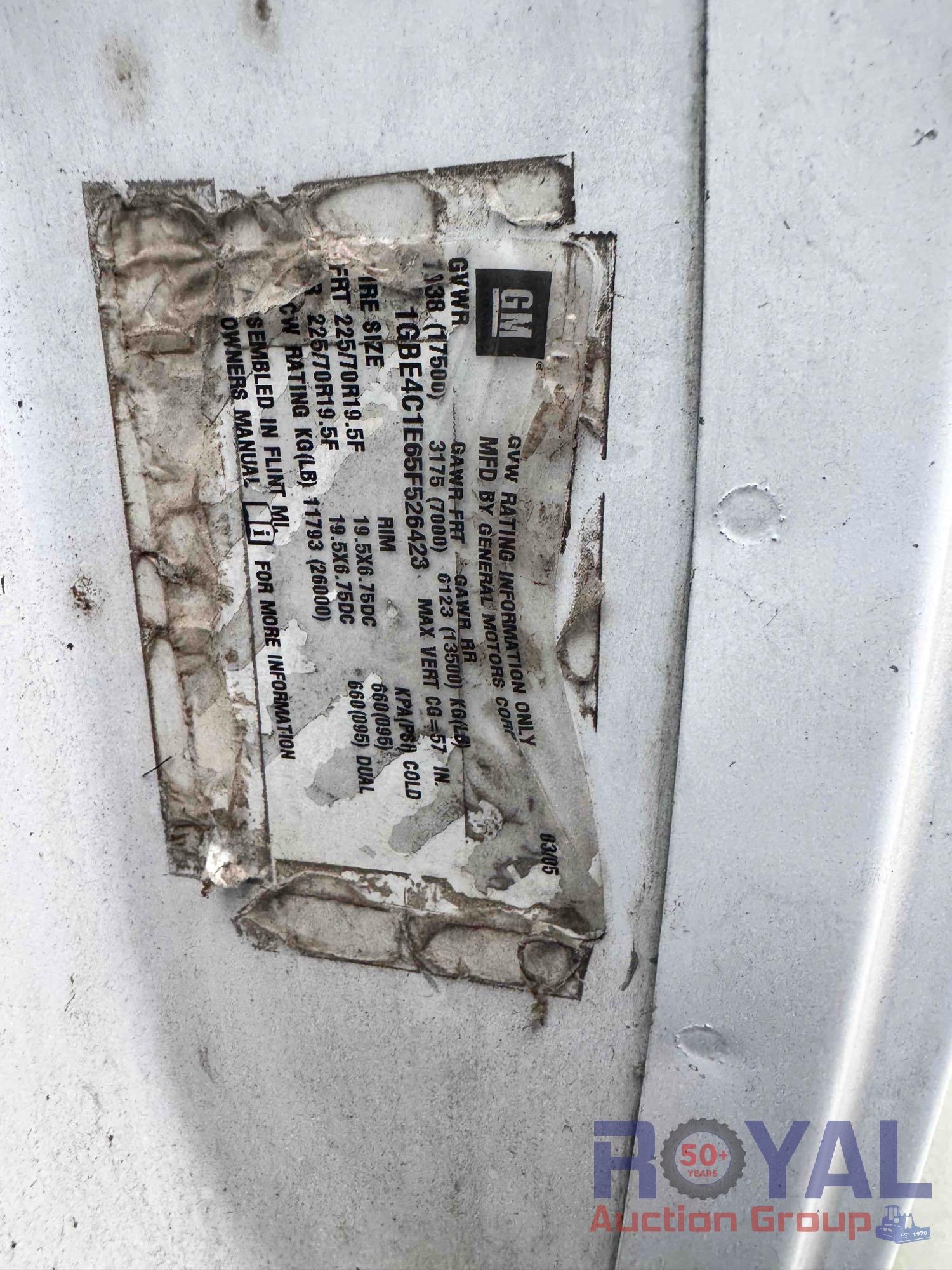 VIN: 1GBE4C1E65F526423 Odom Reads 125,128 miles, mileage on title reads exempt, pwd by 8.1L V8 gas engine, automatic transmission. Equipped with: Altec bucket boom w/ control panel, Altec service body w/ cargo compartments, 4x2 drive line, dual rear wheels, am/fm radio, AC/heat. Runs and drives. Limited function check completed during check in.