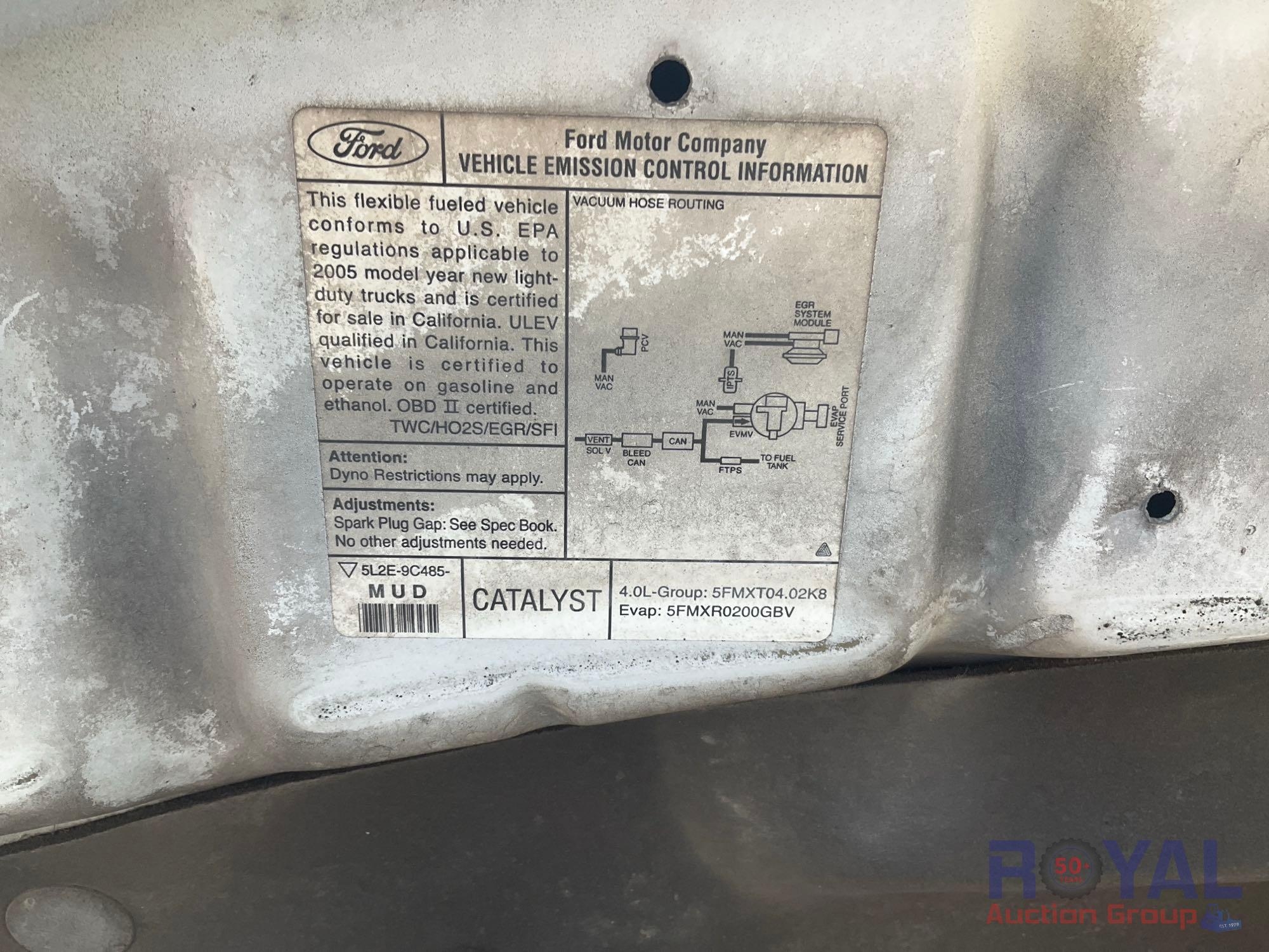 Year: 2005 Make: Ford Model: Explorer Vehicle Type: Multipurpose Vehicle (MPV) Mileage: Plate: Body Type: 4 Door Wagon Trim Level: XLS; XLS Sport Drive Line: 4WD Engine Type: V6, 4.0L (244 CID); FFV Fuel Type: Gasoline/E85 Horsepower: Transmission: VIN #: 1FMZU72KX5ZA25537 Features and Notes: