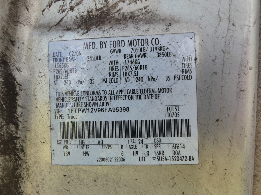 VIN / Serial Number: 1FTPW12V96FA95398