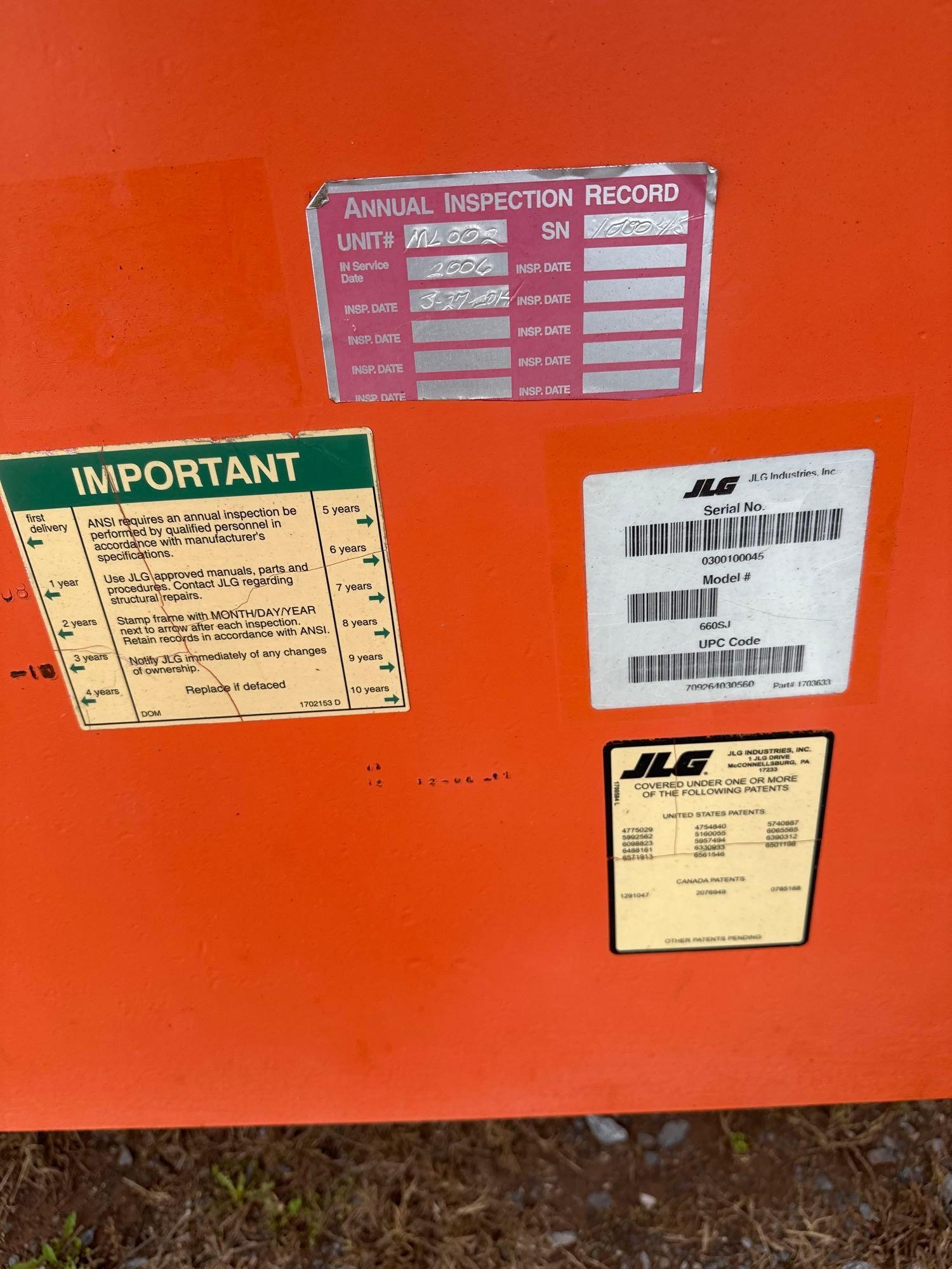2007 JLG 660SJ Diesel, 66 Max Height, 58.75 Max Reach, 500lb Max Capacity, 15-19.5 Tires Hours: 7274 S/N: 100045