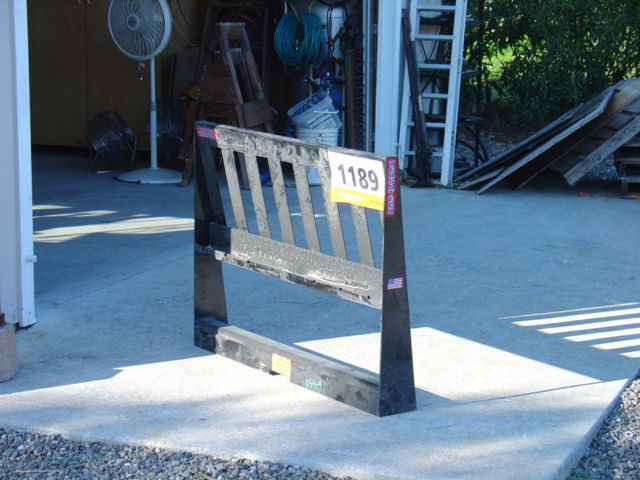 Mine are: forks, fork frame with weights, boom, flat plates for straightening wood piles and adding to an implement to make it usable on the front end, log carrier. Here are some that I photographed (click for larger image):