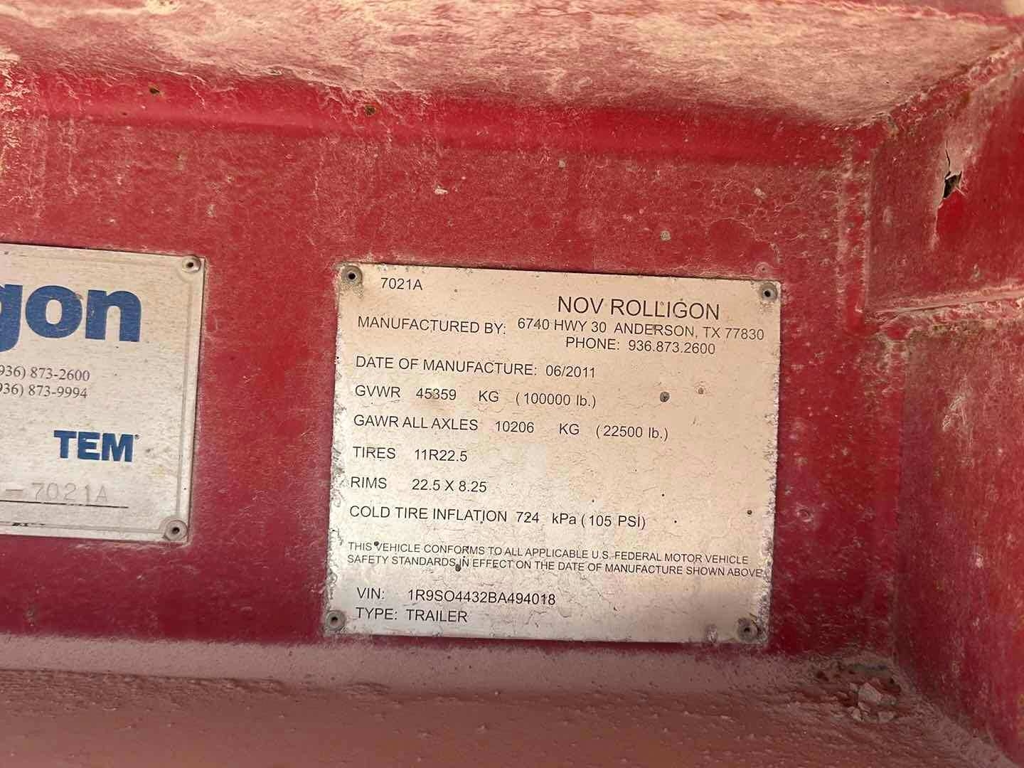 (Odessa. TX) 2011 NOV ROLLIGON DOUBLE PUMPER VIN/SN: ~ 1R9S04432BA494018, SUSPENSION:AIR RIDE, DOUBLE MSI QUINTIPLEX PUMPS. CUMMINS QSK MOTOR. ENCLOSED OPERATOR CAN. TRI AXLE. 3 DIESEL TANKS. ITEM# 18208