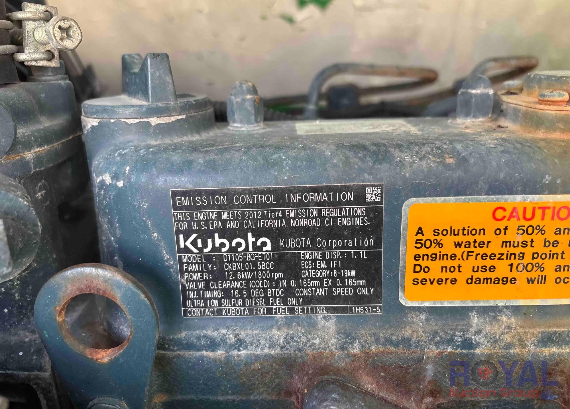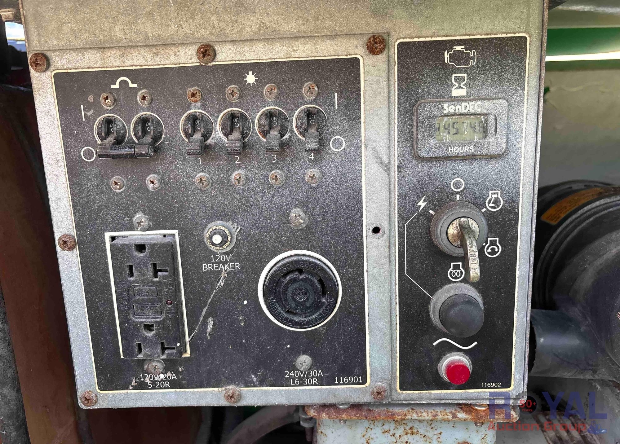City of Sanibel, SN: RL4123640, Trailer VIN: 4ZJSL141XC1003640, hour meter reads 4,574 hours, pwd by Kubota D1105 3-cylinder diesel engine. Equipped with 23ft mast, four metal halide 1000W lights, manual winch, 120V GFI outlet, coupler tow hitch, manual jack stand. Cranks, no start. Limited function check completed at check in.