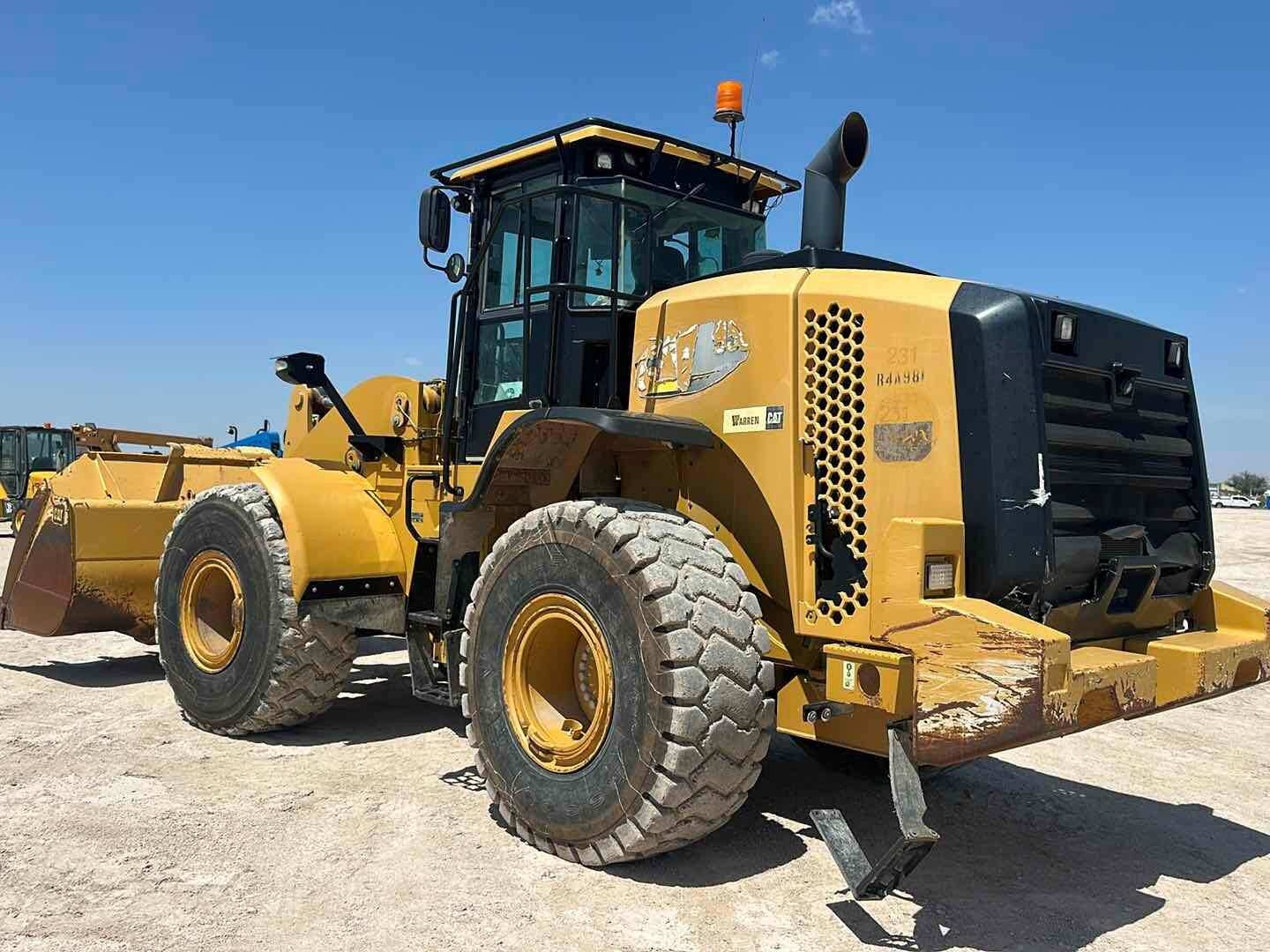 (Odessa. TX) 2013 CAT 950K WHEEL LOADER VIN/SN: CAT0950KPR4A00981, METER READS 13606 HOURS, ENGINE STARTS:YES, UNIT STARTS. DPF FILTER IS COMPLETELY BACKED UP. WILL RUN FOR A SHORT AMOUNT OF TIME AND THEN DIE. CAB A/C TOOTHED BUCKET. JOYSTICK AND AUTOMATIC CONTROLS. LEVEL GRADING SPECS. BACK UP CAMERA. ITEM# 17135
