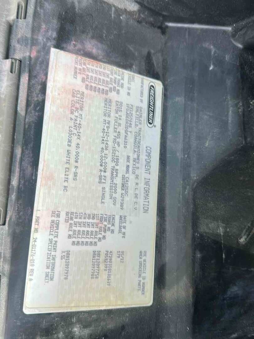 ETROIT DIESEL DD15, TRANSMISSION:EATON FULLER 10 SPEED, SUSPENSION:AIR RIDE, ENGINE STARTS:YES, STARTS. 12K FRONTS. 40K REARS. INTER AXLE LOCK. CENTRIFUGAL PUMP. PTO. FIXED JACK PLATE. ENGINE BRAKE. 179 WHEELBASE. ITEM# 2013 FREIGHTLINER CASCADIA