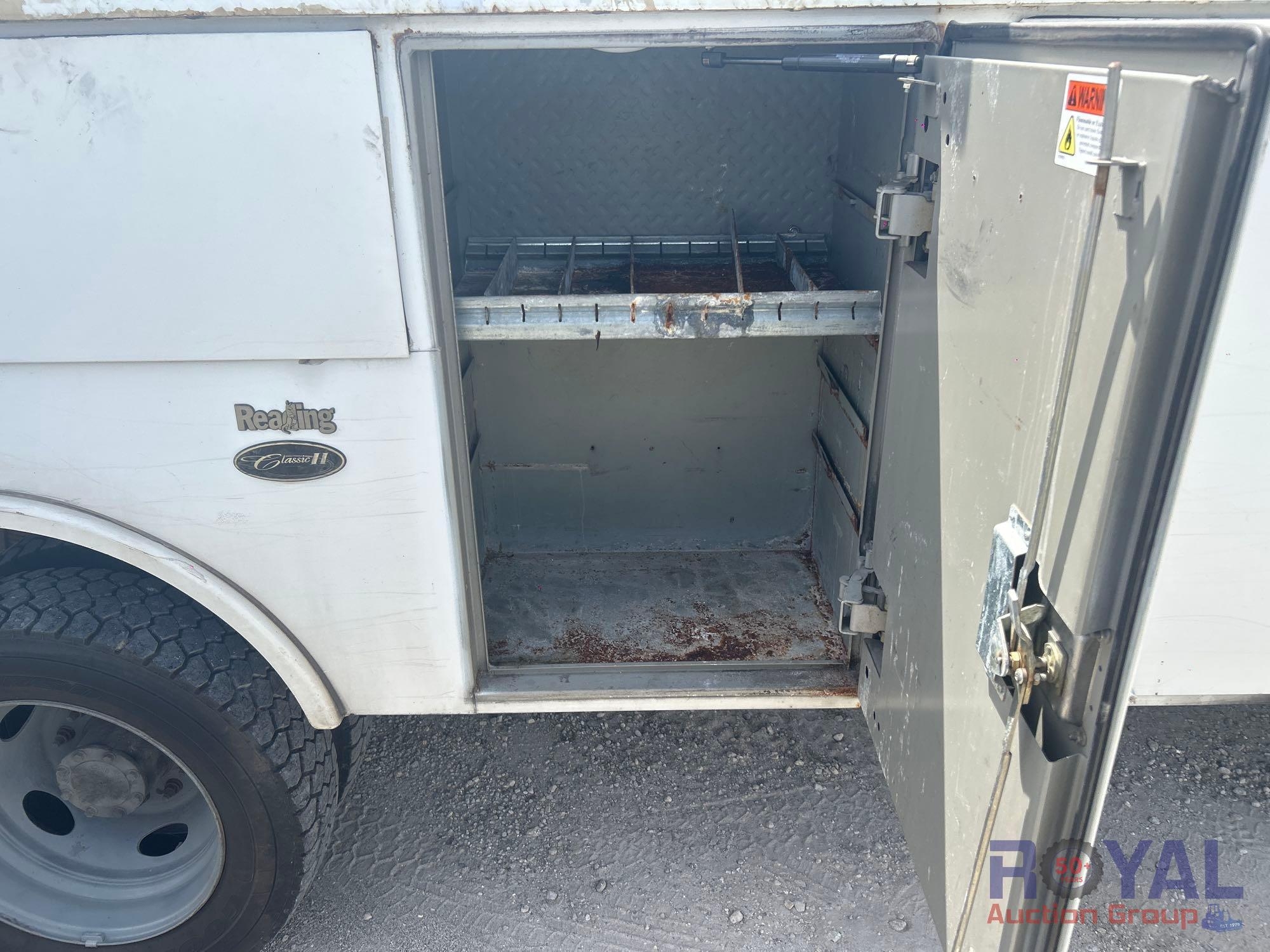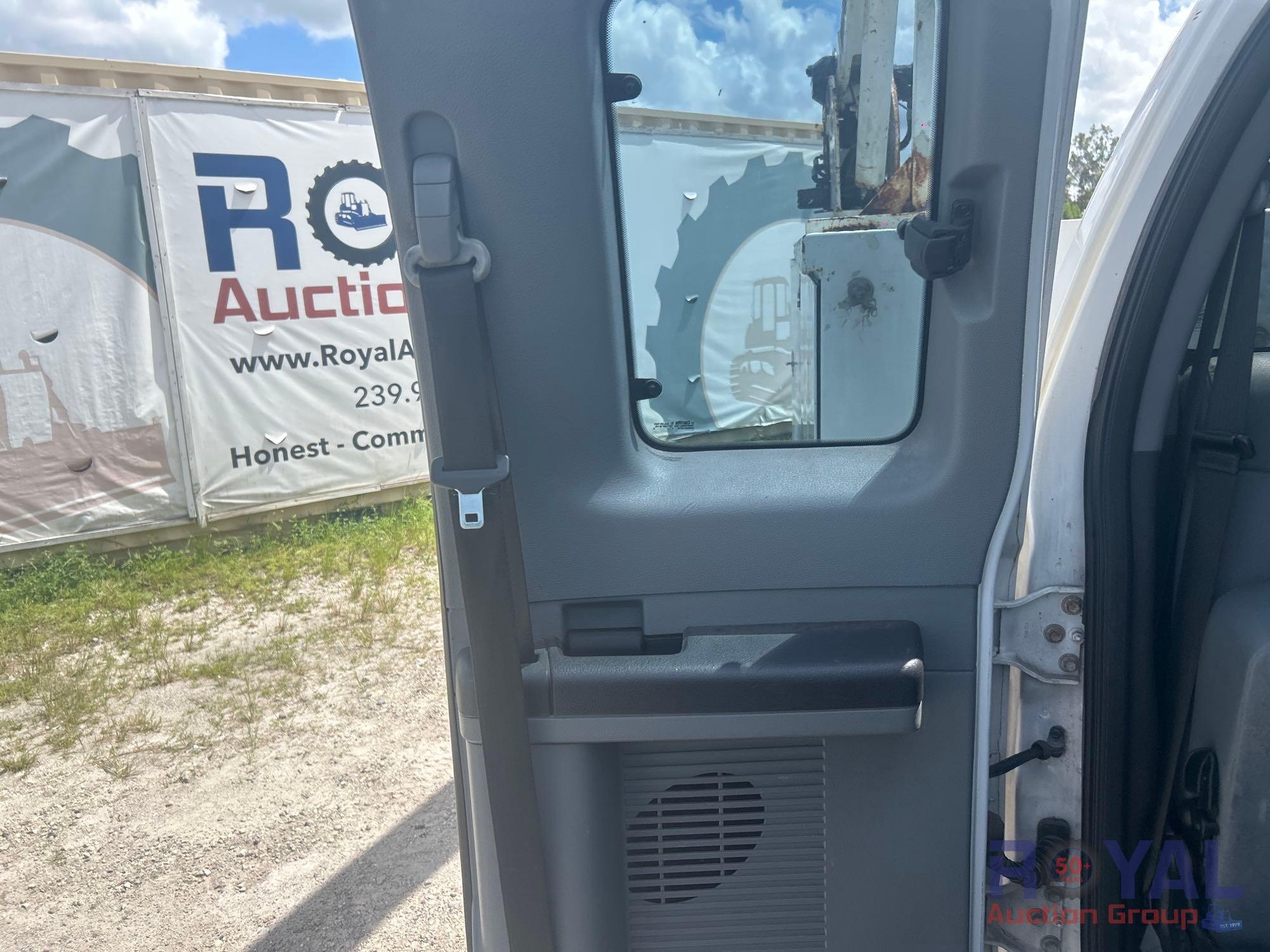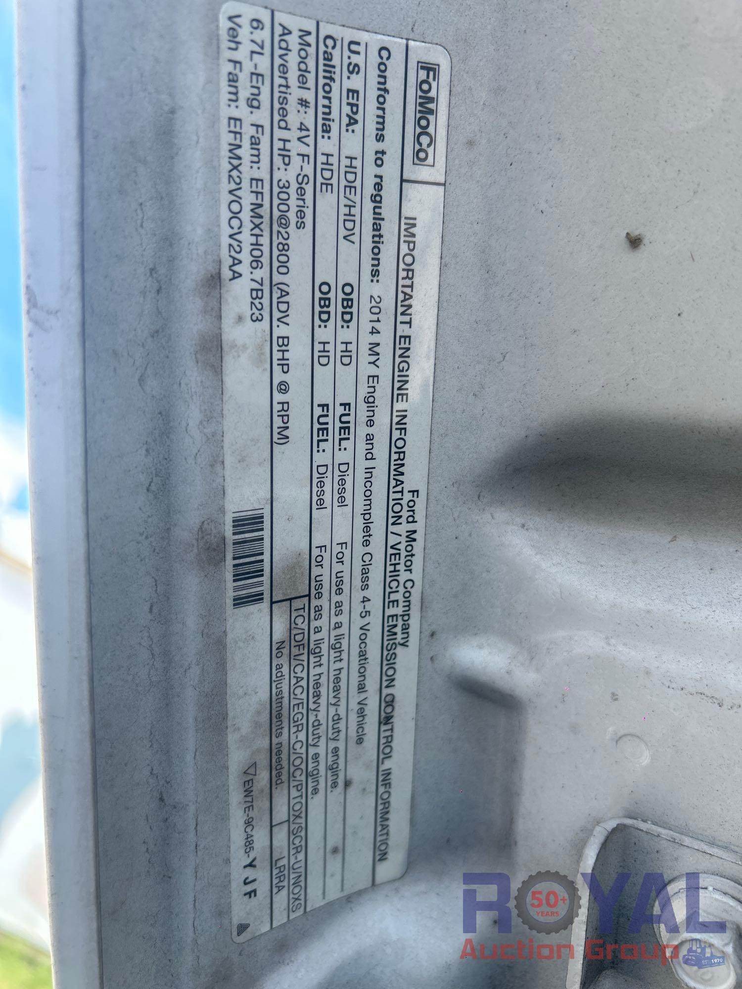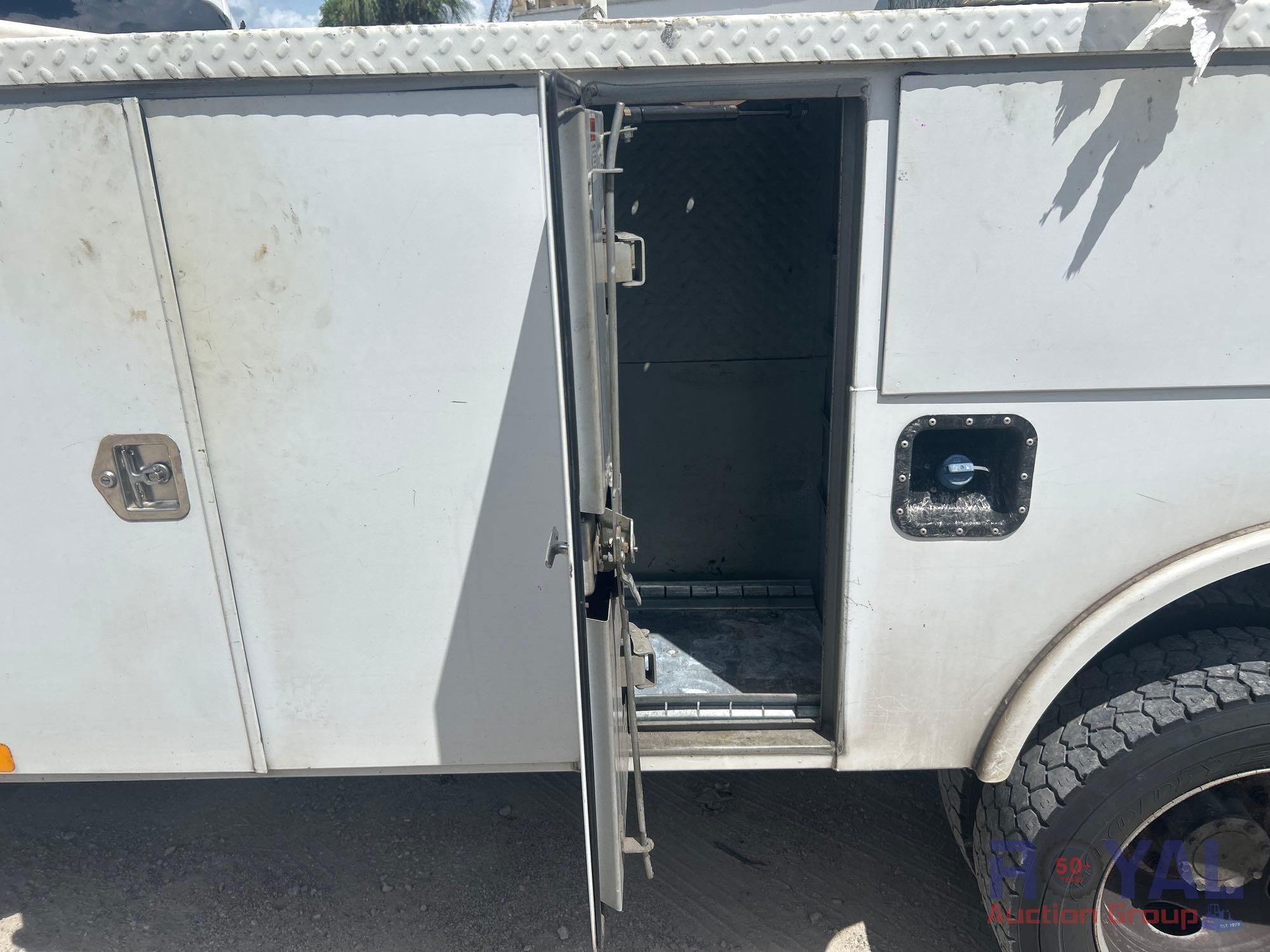 Charlotte County BOCC; VIN:1FD0X5HT8EEA86381 Odom Reads 145,290 miles, pwd by Powerstroke 6.7L V8 turbo diesel engine, automatic transmission. Equipped with: Auto Crane 6406H crane boom, 6,400 lb lifting capacity, Reading service body w/ cargo compartments, four wheel drive 4WD, tow package, hydraulic stabilizers, dual rear wheels, running boards, extended cab, pwr windows, mirrors and locks, steering wheel cruise, auxiliary switches, am/fm stereo, AC/heat. Runs and drives. Limited function check completed during check in.
