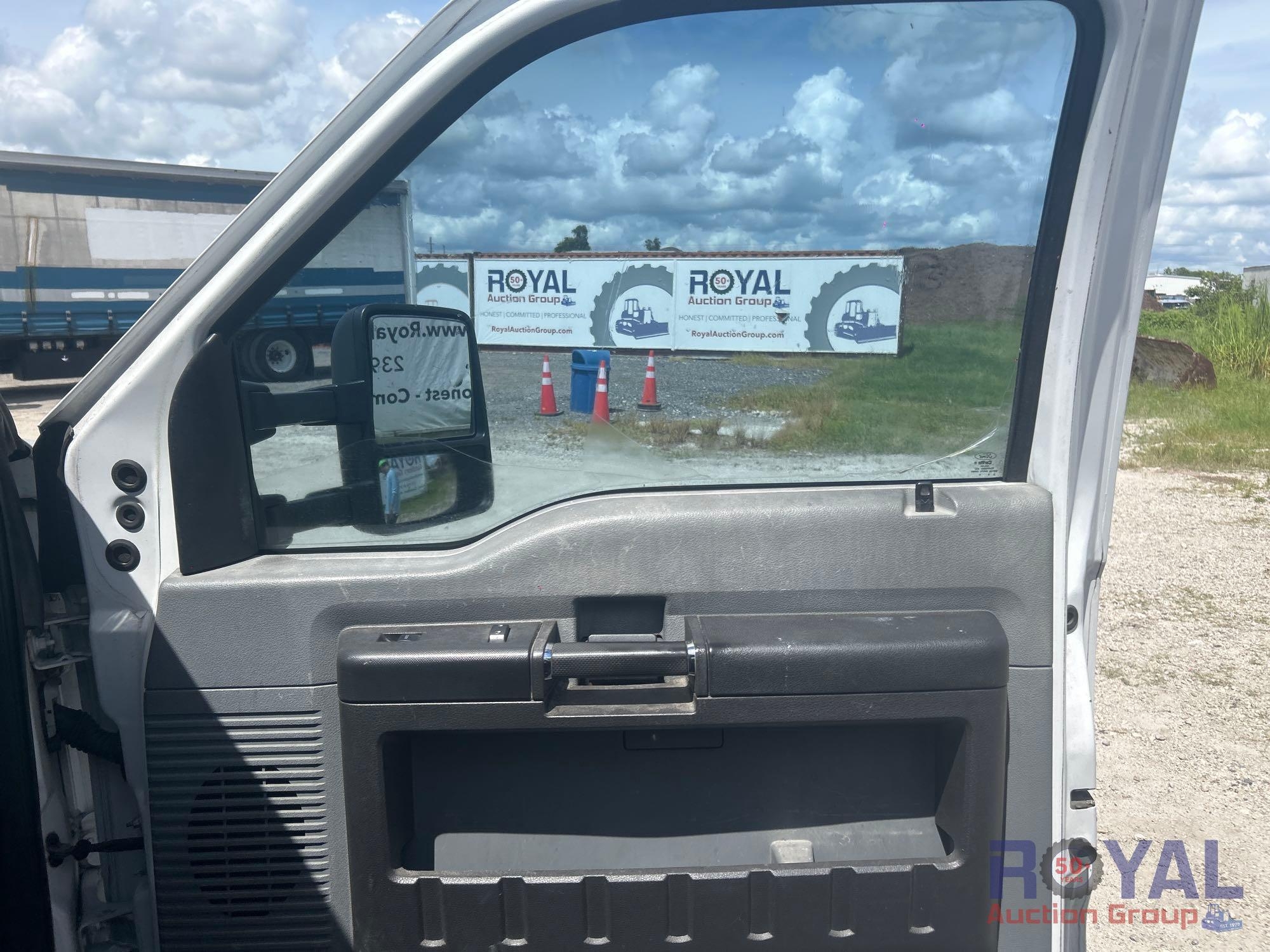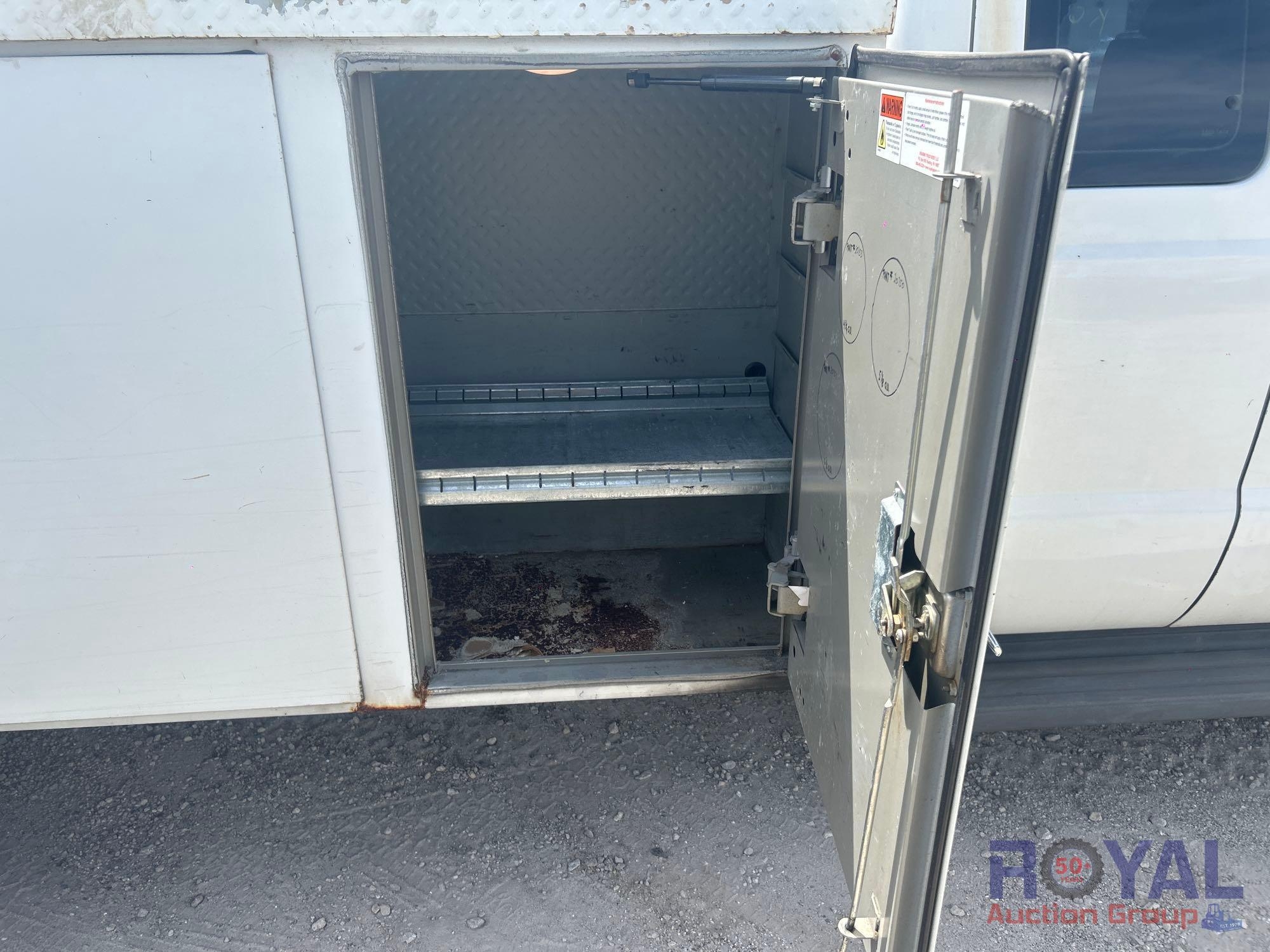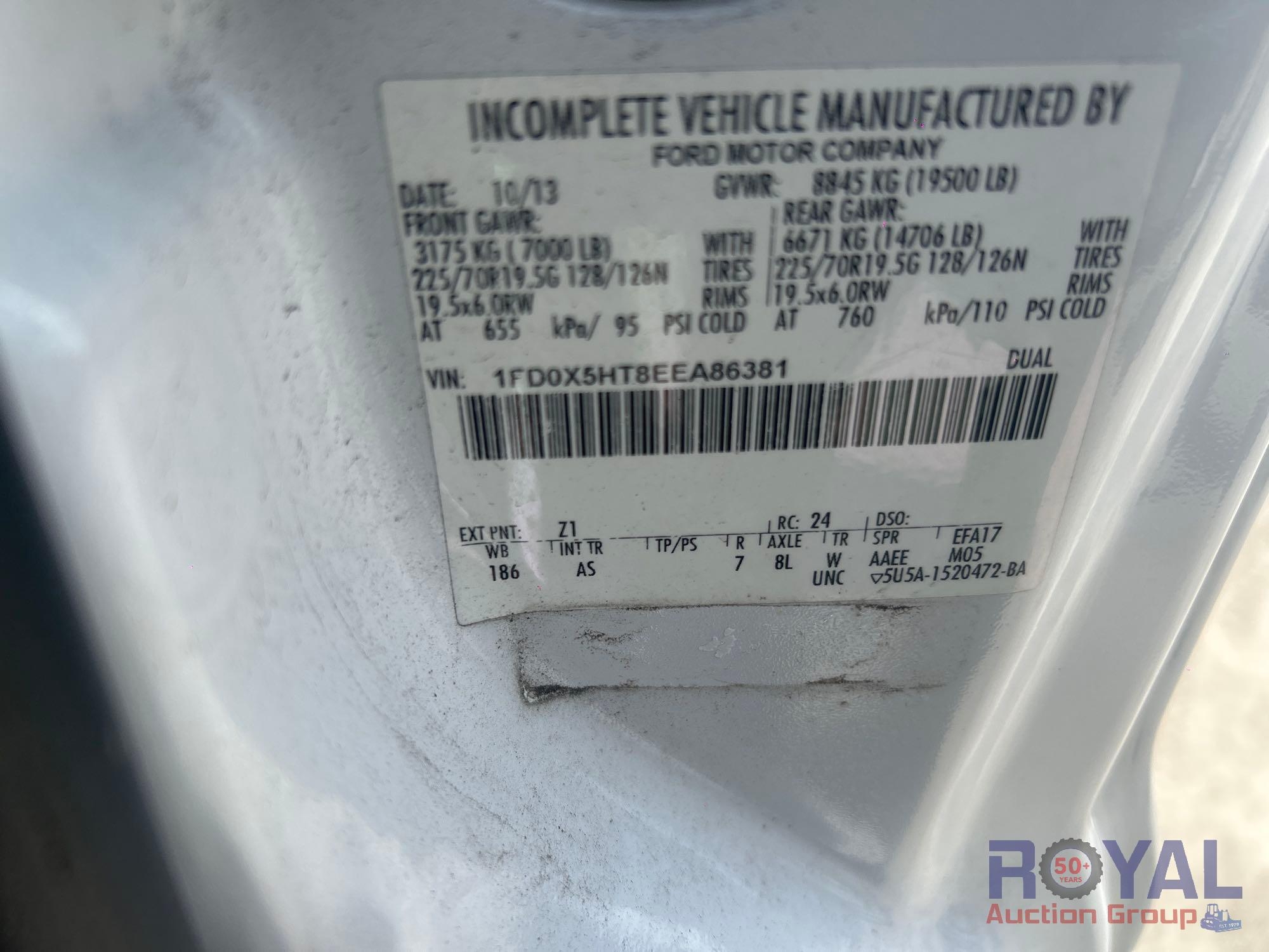 Charlotte County BOCC; VIN:1FD0X5HT8EEA86381 Odom Reads 145,290 miles, pwd by Powerstroke 6.7L V8 turbo diesel engine, automatic transmission. Equipped with: Auto Crane 6406H crane boom, 6,400 lb lifting capacity, Reading service body w/ cargo compartments, four wheel drive 4WD, tow package, hydraulic stabilizers, dual rear wheels, running boards, extended cab, pwr windows, mirrors and locks, steering wheel cruise, auxiliary switches, am/fm stereo, AC/heat. Runs and drives. Limited function check completed during check in.