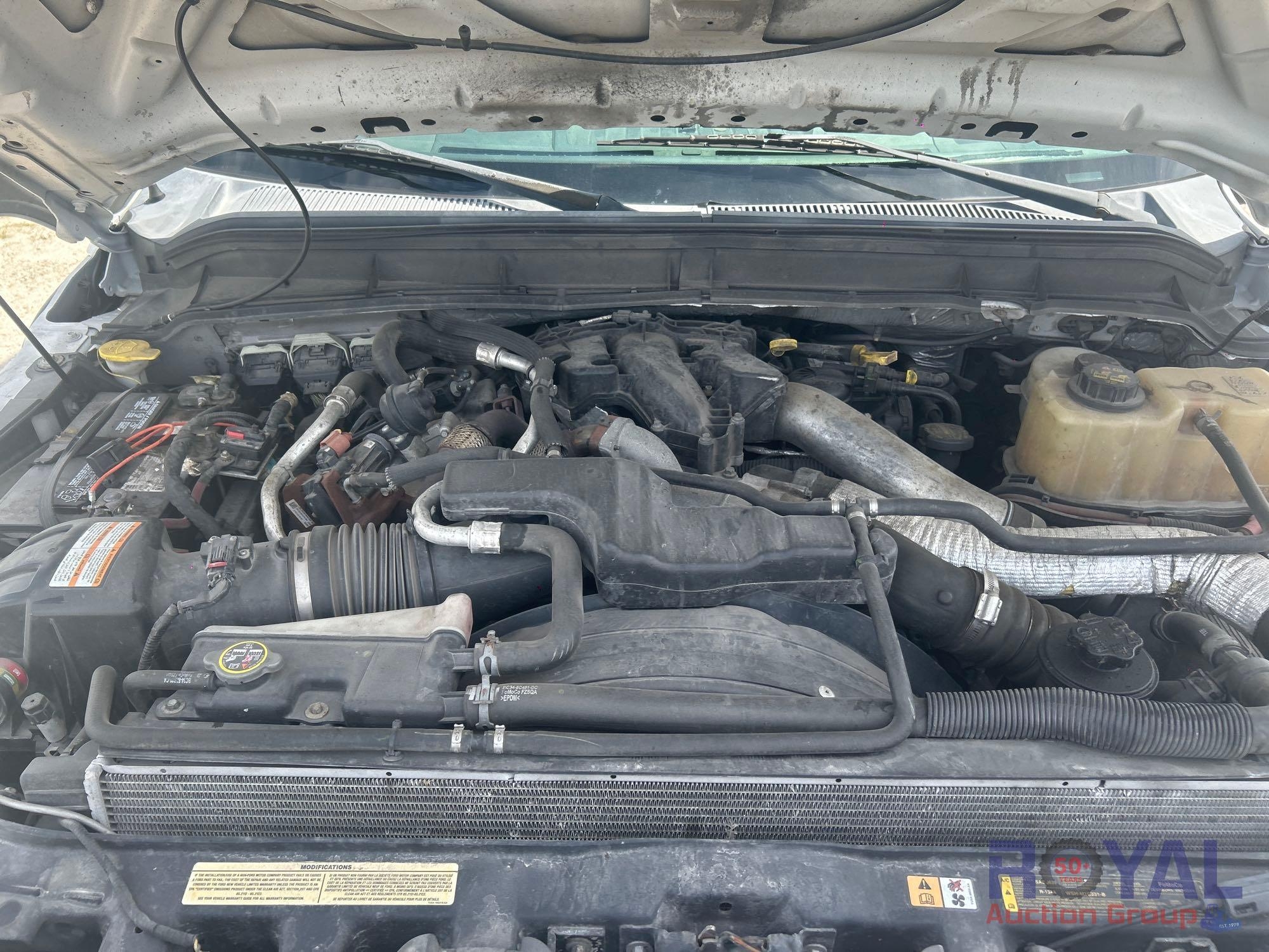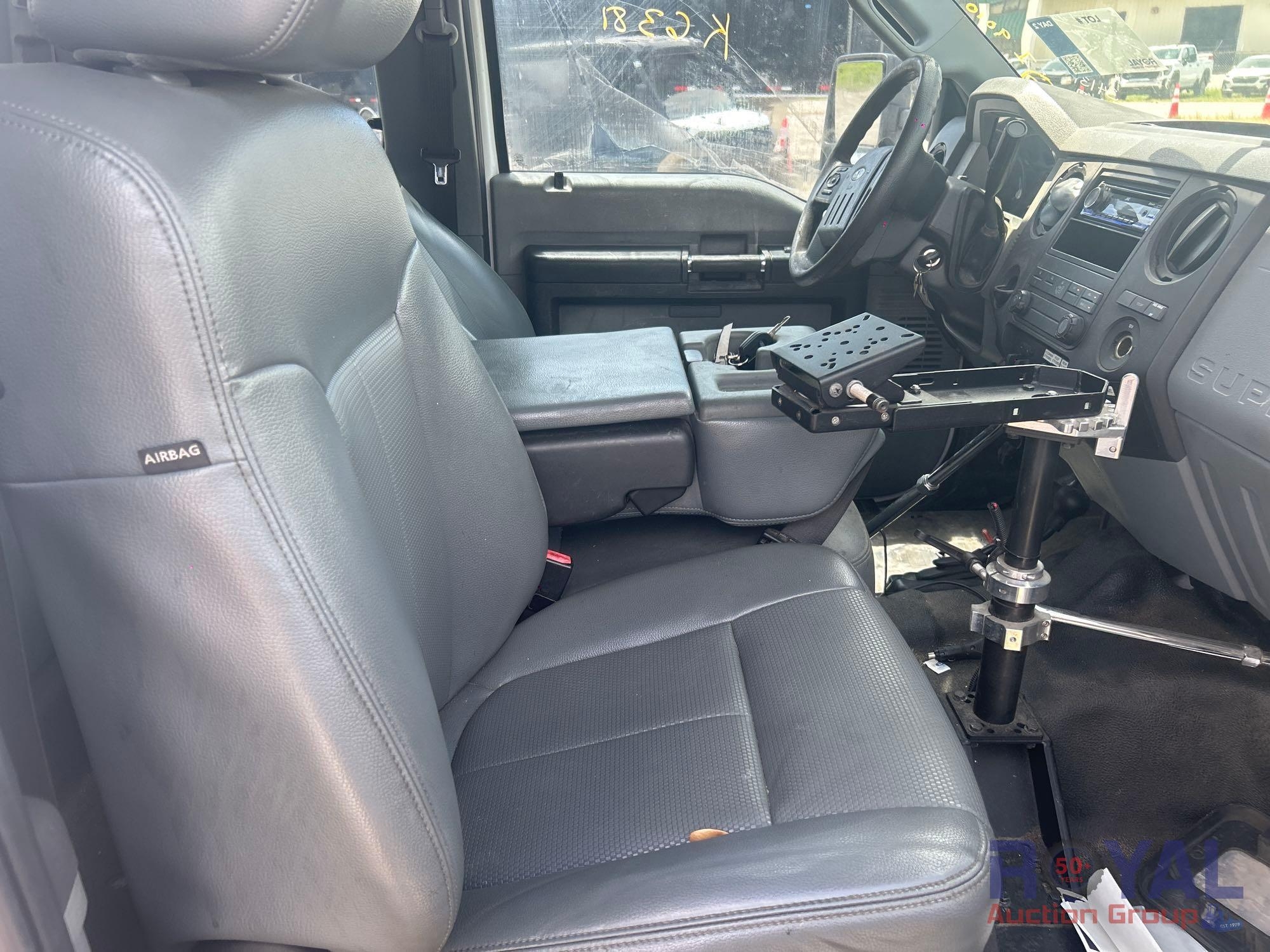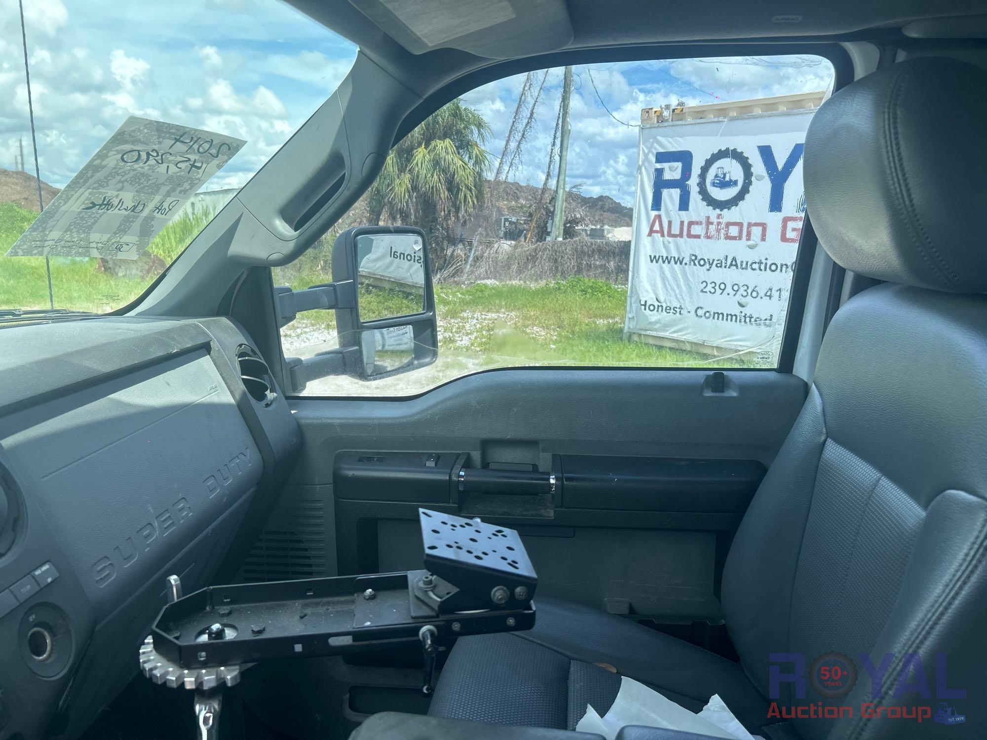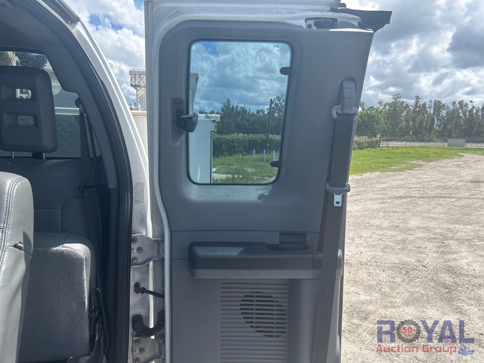 Charlotte County BOCC; VIN:1FD0X5HT8EEA86381 Odom Reads 145,290 miles, pwd by Powerstroke 6.7L V8 turbo diesel engine, automatic transmission. Equipped with: Auto Crane 6406H crane boom, 6,400 lb lifting capacity, Reading service body w/ cargo compartments, four wheel drive 4WD, tow package, hydraulic stabilizers, dual rear wheels, running boards, extended cab, pwr windows, mirrors and locks, steering wheel cruise, auxiliary switches, am/fm stereo, AC/heat. Runs and drives. Limited function check completed during check in.