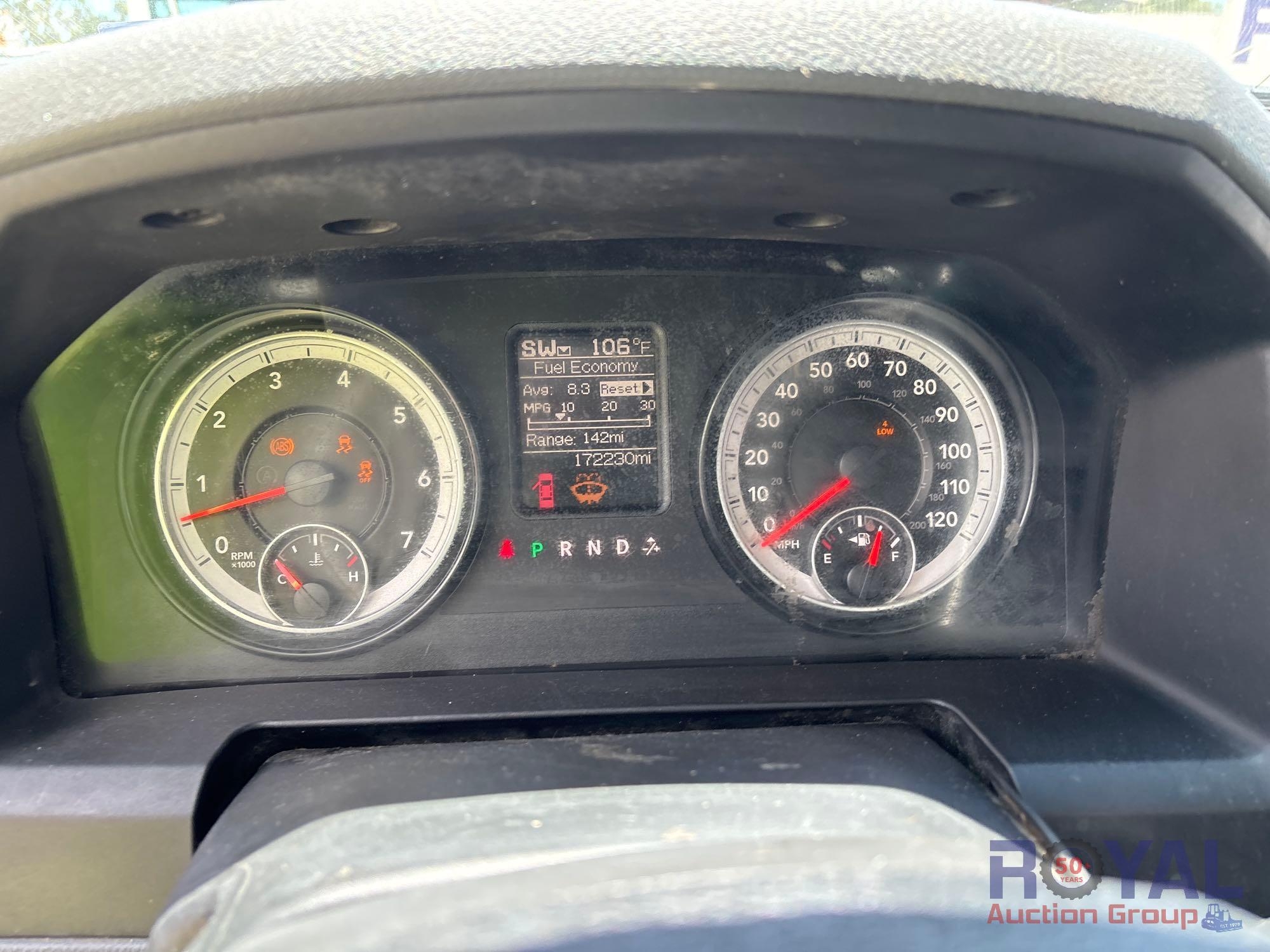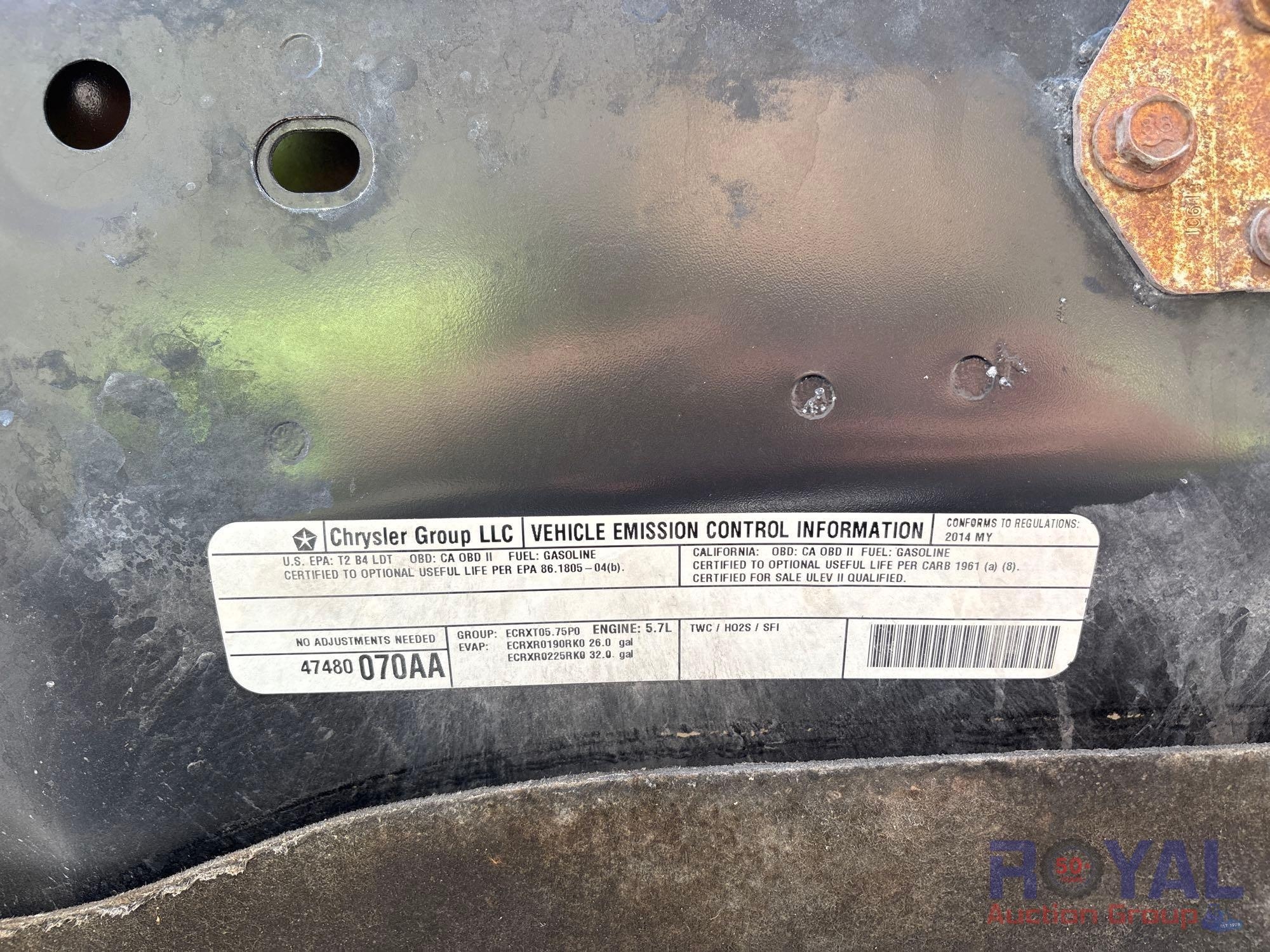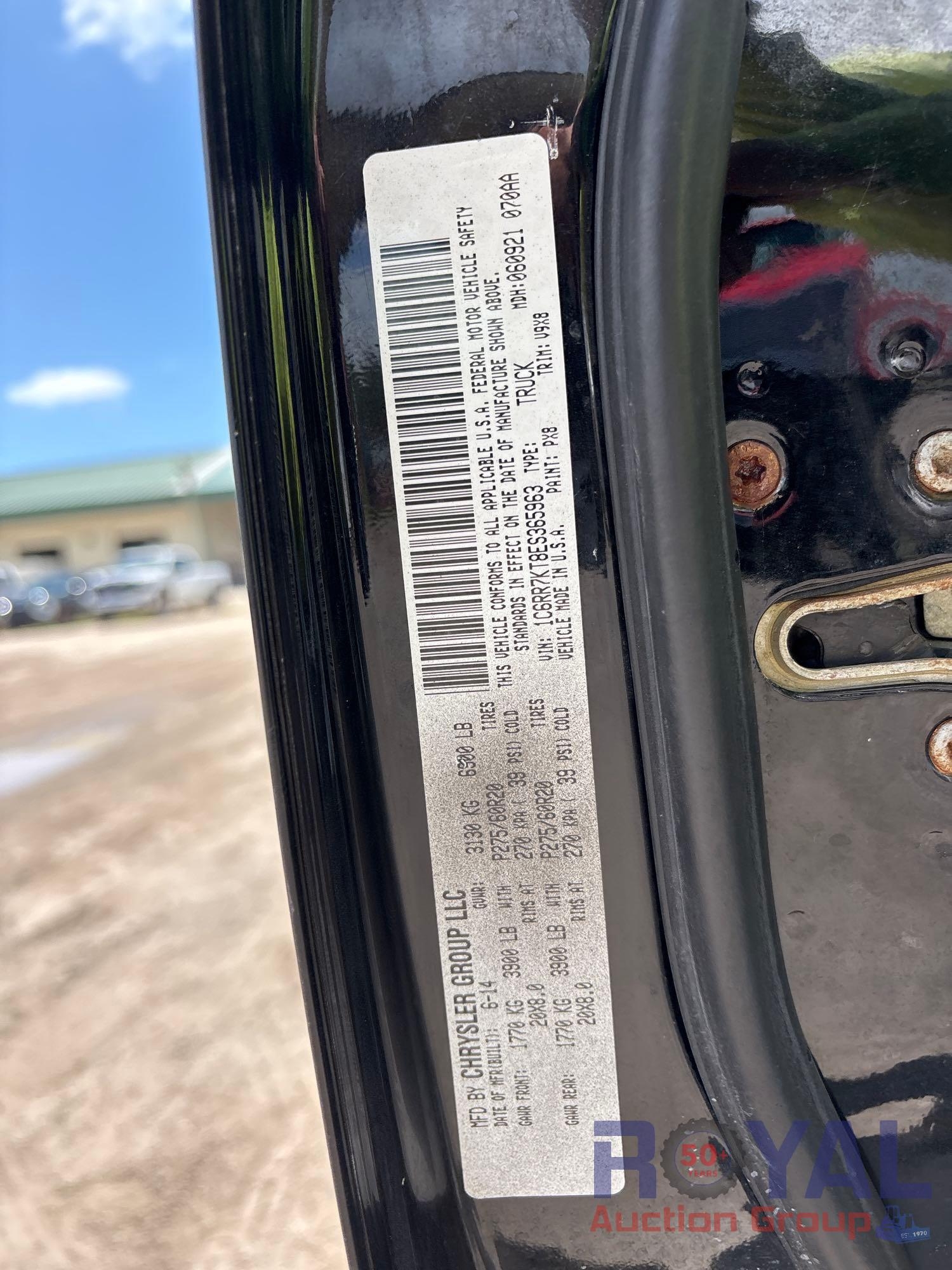 VIN: 1C6RR7KT8ES365963, Odom Reads: 172,230 miles. Powered by a HEMI 5.7L V8 Gasoline Engine, Automatic Transmission. Equipped with four wheel drive/4WD, tow package, bed liner, power windows, locks, and mirrors, steering wheel cruise controls, stereo controls, and handsfree calling, infotainment system, climate controls, 12V charging. Runs and drives, Limited function check completed at check in.