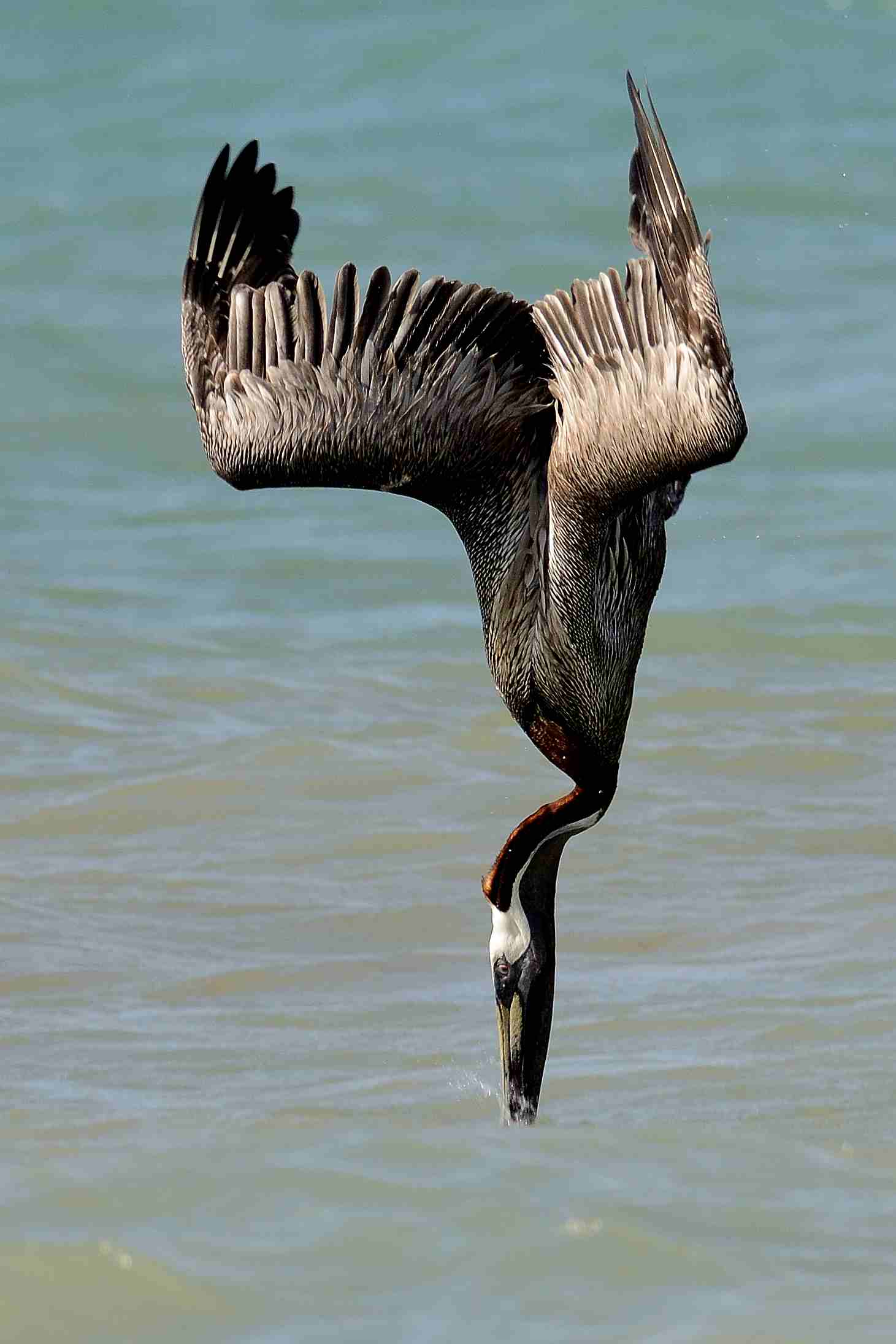 At times, I was wishing for a zoom lens and the 200-400/F4 would have been perfect. I was trying to get photos of the MULTIPLE Pelicans dive bombing the fish but I was never able to quite get what I wanted even though I spent 4-6 hours over two days trying. The 200-400mm/F4 lens would have been helpful but it would likely have required a tripod to hold the camera/lens for a couple of hours. I was trying to get an image like below but with more than one bird.