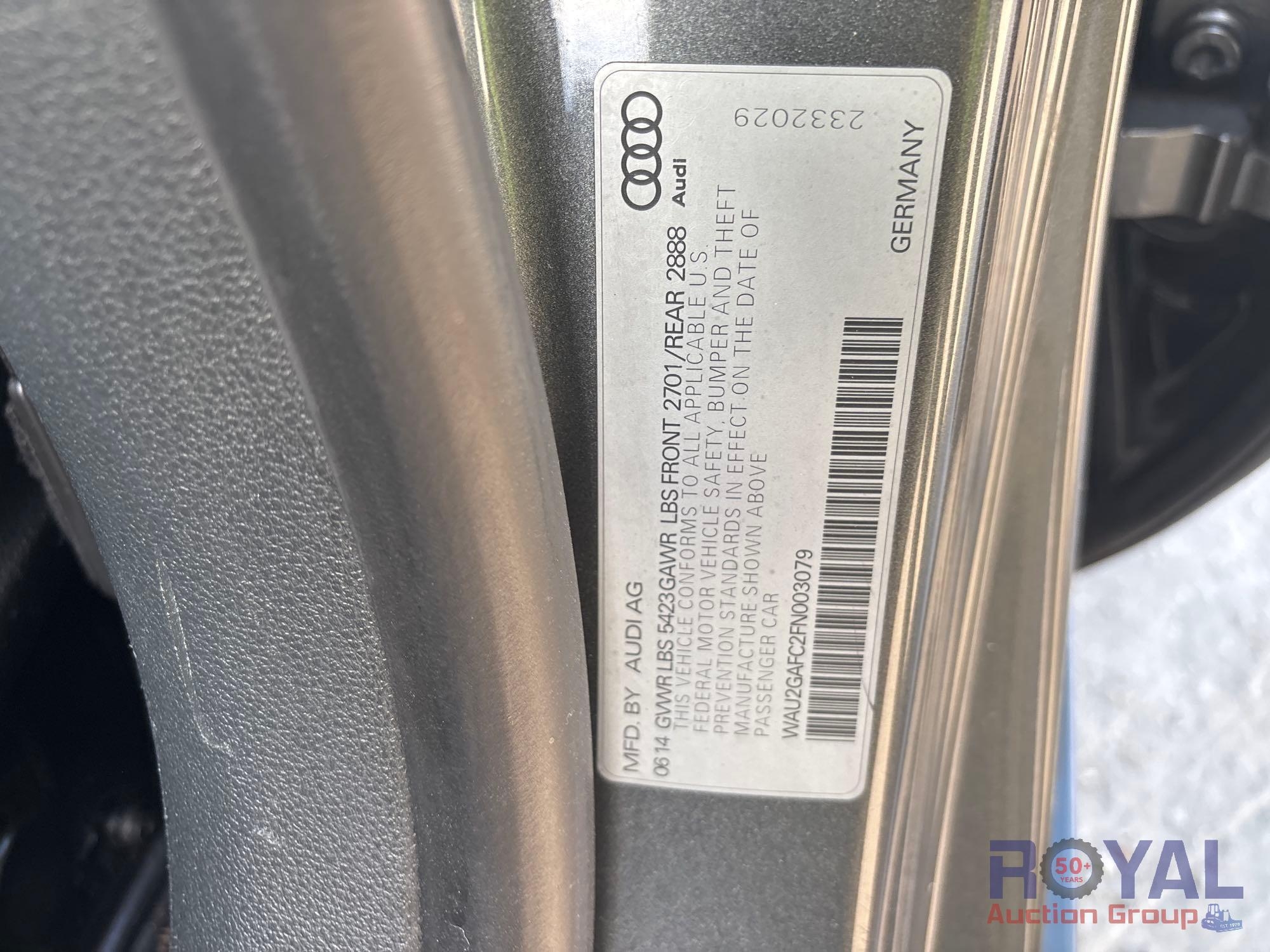 Lee County Sheriff VIN: WAU2GAFC2FN003079 Odom Reads: 118,219 Miles. Pwd by 3.0L Supercharged V6 gasoline engine, Automatic transmission, Equipped with AWD/All Wheel Drive, pwd seats with heat and a/c, windows, locks, and mirrors, heated steering wheel with cruise controls and hands free capabilities, Bluetooth compatible AM/FM stereo with CD player, 2x WDX DB Drive Subwoofers, Rear View camera, dual climate controls, heat and A/C, Runs and Drives. Limited Function Check Completed At Check In.