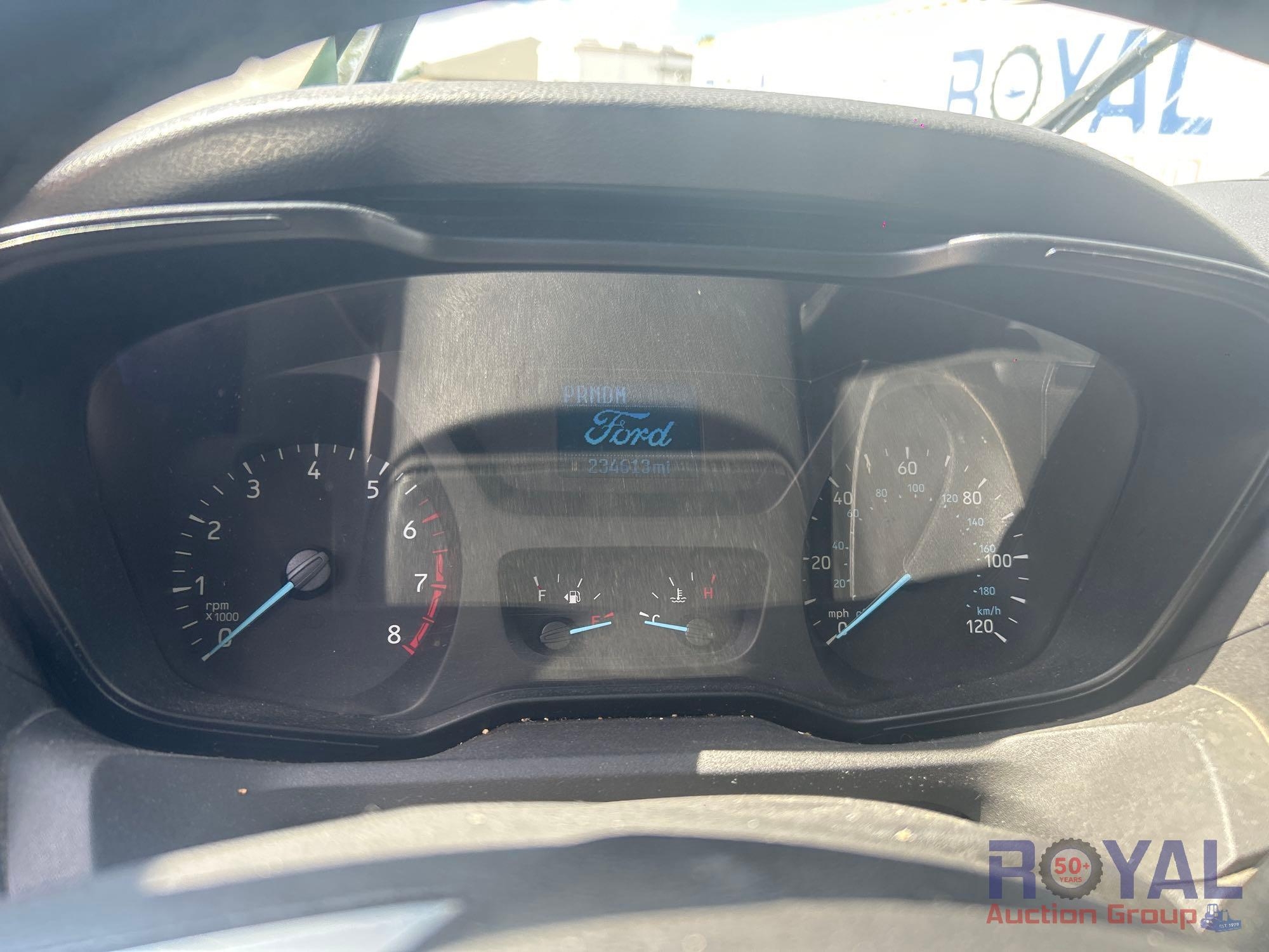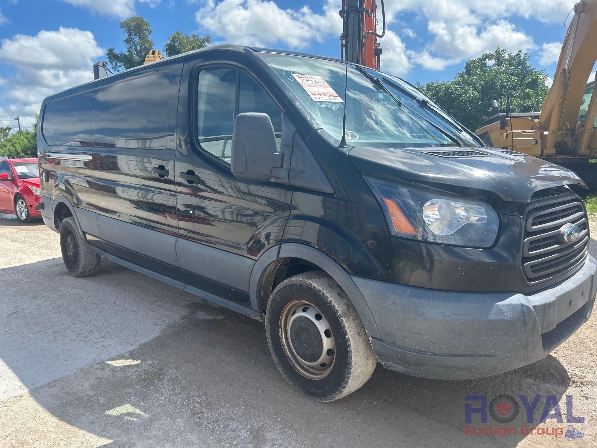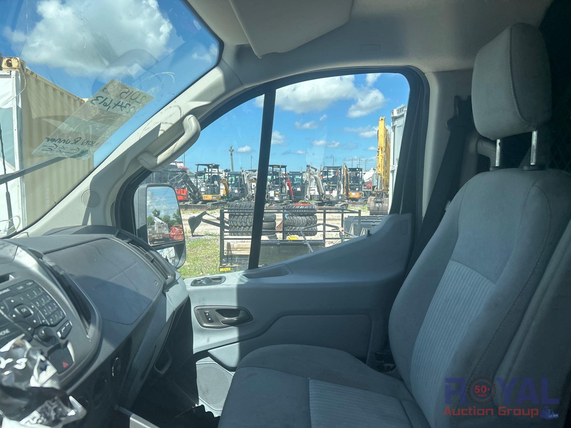 VIN: 1FTYR2YG7FKB09252, odom reads 234,613 miles, pwd by 3.5L V6 turbo gas engine, automatic transmission. Equipped with: tow package, dual rear swing doors, cargo bulkhead, metal shelves and drawers, pwr windows, locks, and mirrors, hands free phone capable, steering wheel phone, cruise and media controls, AC/heat, am/fm stereo. Non Runner. Limited function check completed at check in.
