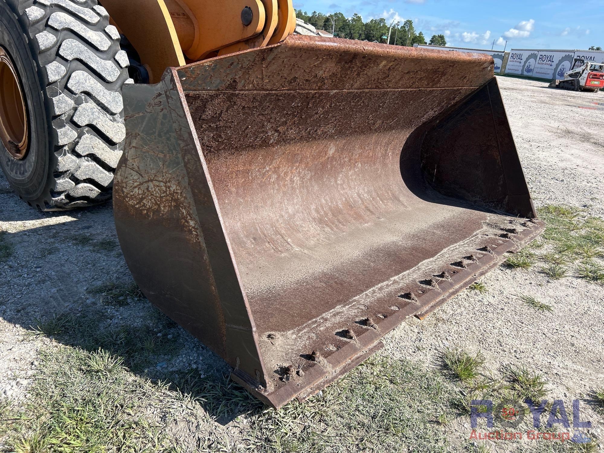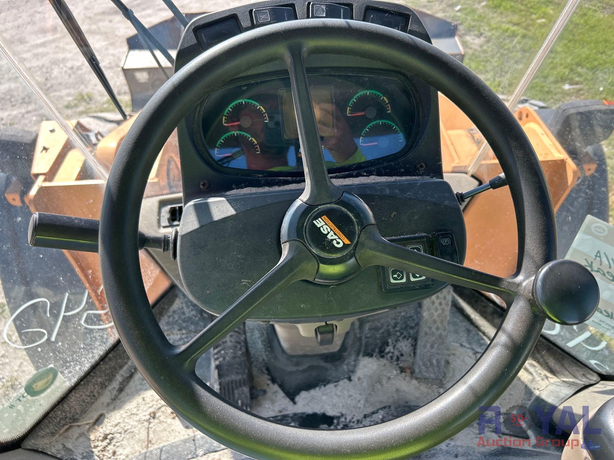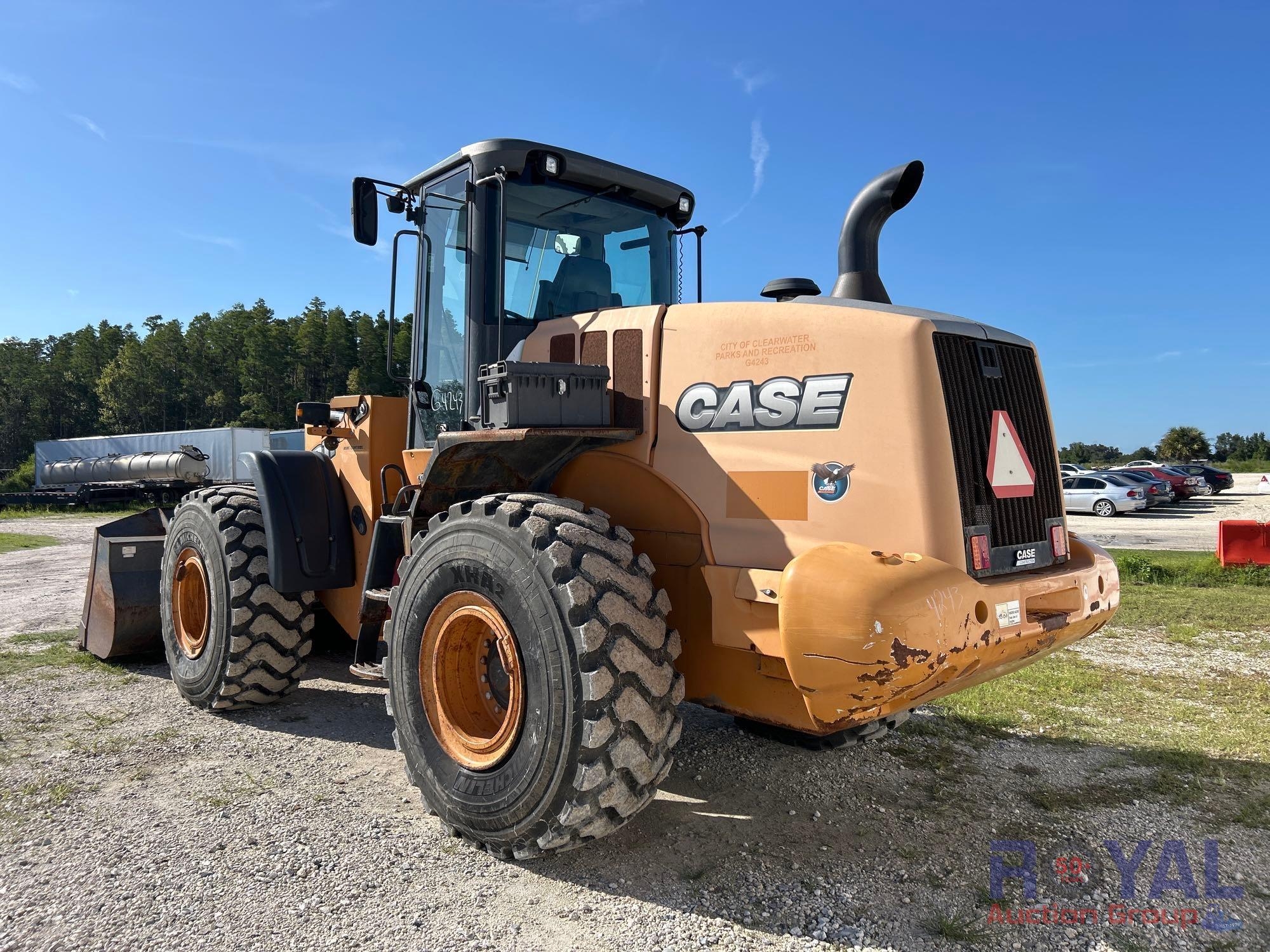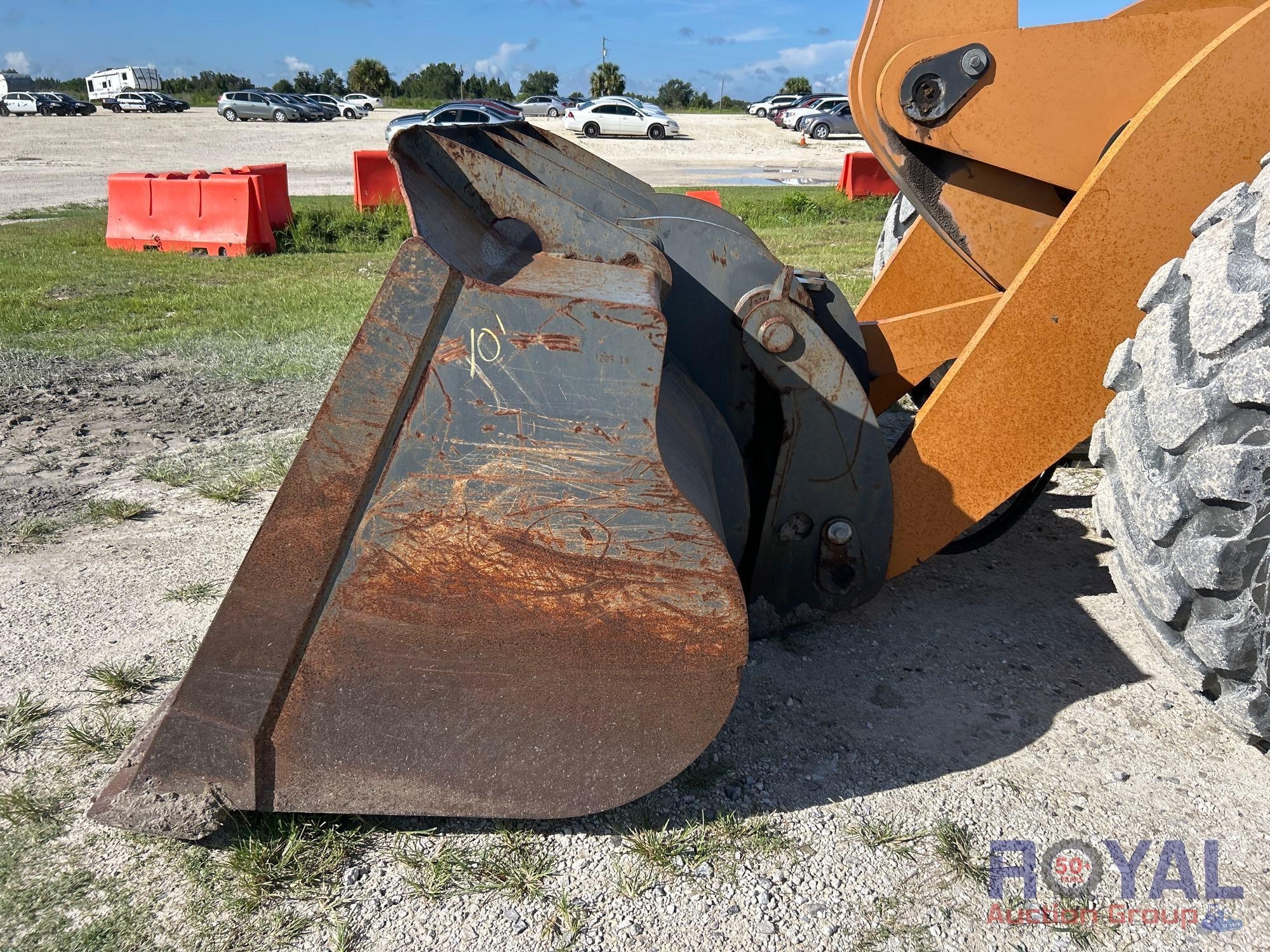City of Clearwater (G4243), SN: NGF235331, Hours Read: Unreadable. Powered by a FPT F4HFE613 Turbo Diesel Engine, PowerShift Transmission. Equipped with CNH 4.0cuYd general purpose loader bucket with bolt on cutting edge, manual quick coupler, joystick bucket controls, adjustable throttle, cab work lights, rear pintle hitch receiver, AM/FM stereo, EROPS enclosed cab with heat and AC. Runs, drives, and operates, Hydraulic leak noted, Limited function check completed at check in.