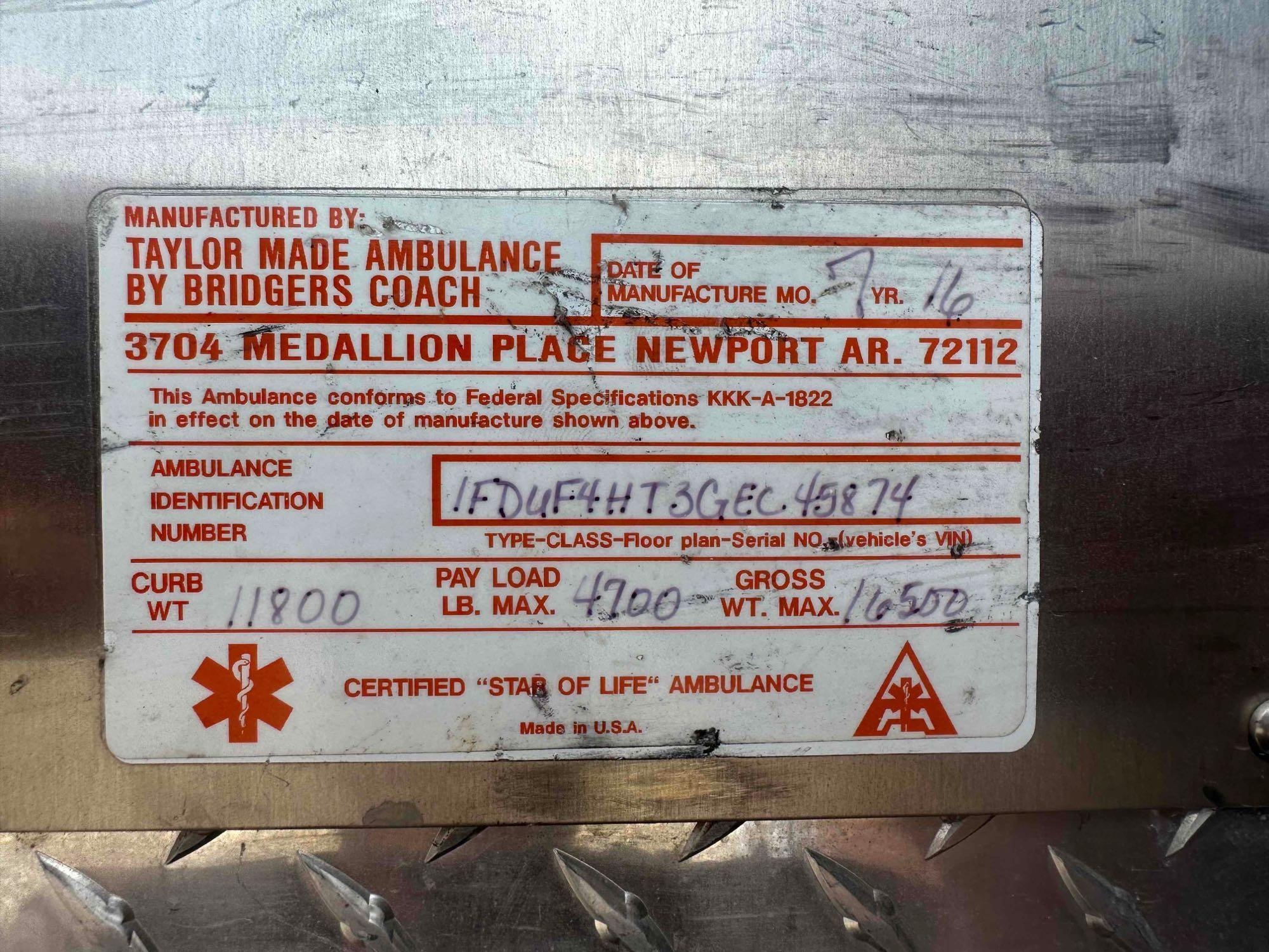 2016 Ford F-450 4x4 Ambulance, VIN # 1FDUF4HT3GEC45874