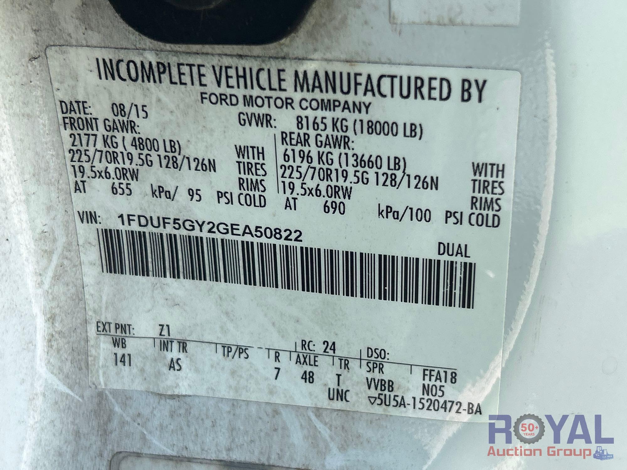 City of Clearwater (G4177), VIN: 1FDUF5GY2GEA50822 Odom Reads 111,560 miles, pwd by 6.8L V10 gas engine, automatic transmission. Equipped with: Palfinger PSC3216 crane boom, 4,000 lb capacity, 16ft outreach, flatbed body w/ cargo compartments, dual rear wheels, hydraulic stabilizers, tow package, running boards, GVWR 18,000 lbs, ECCO backup camera, am/fm stereo, AC/heat. Runs and drives. Limited function check completed during check in.