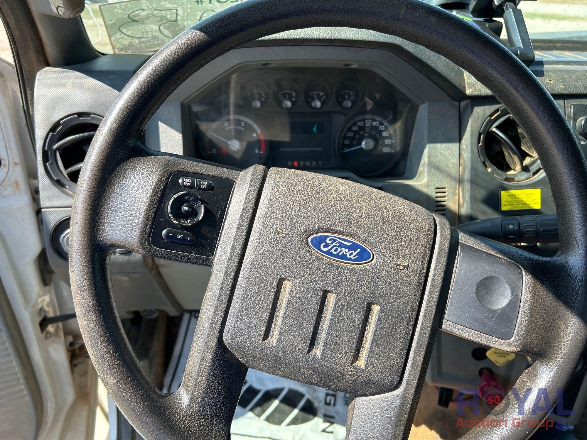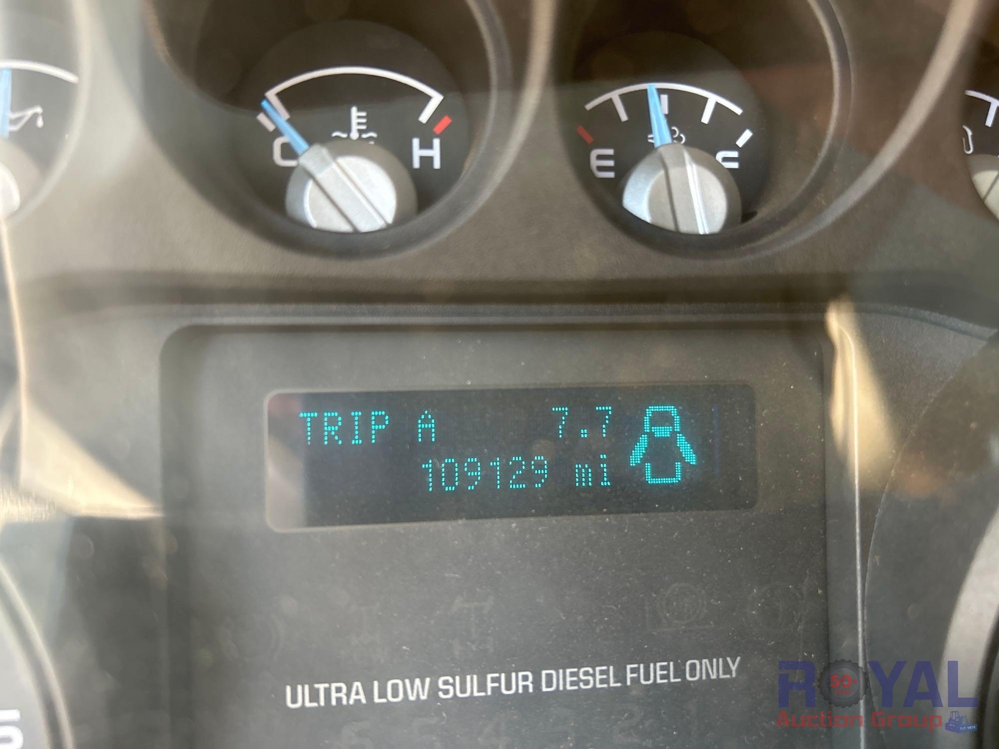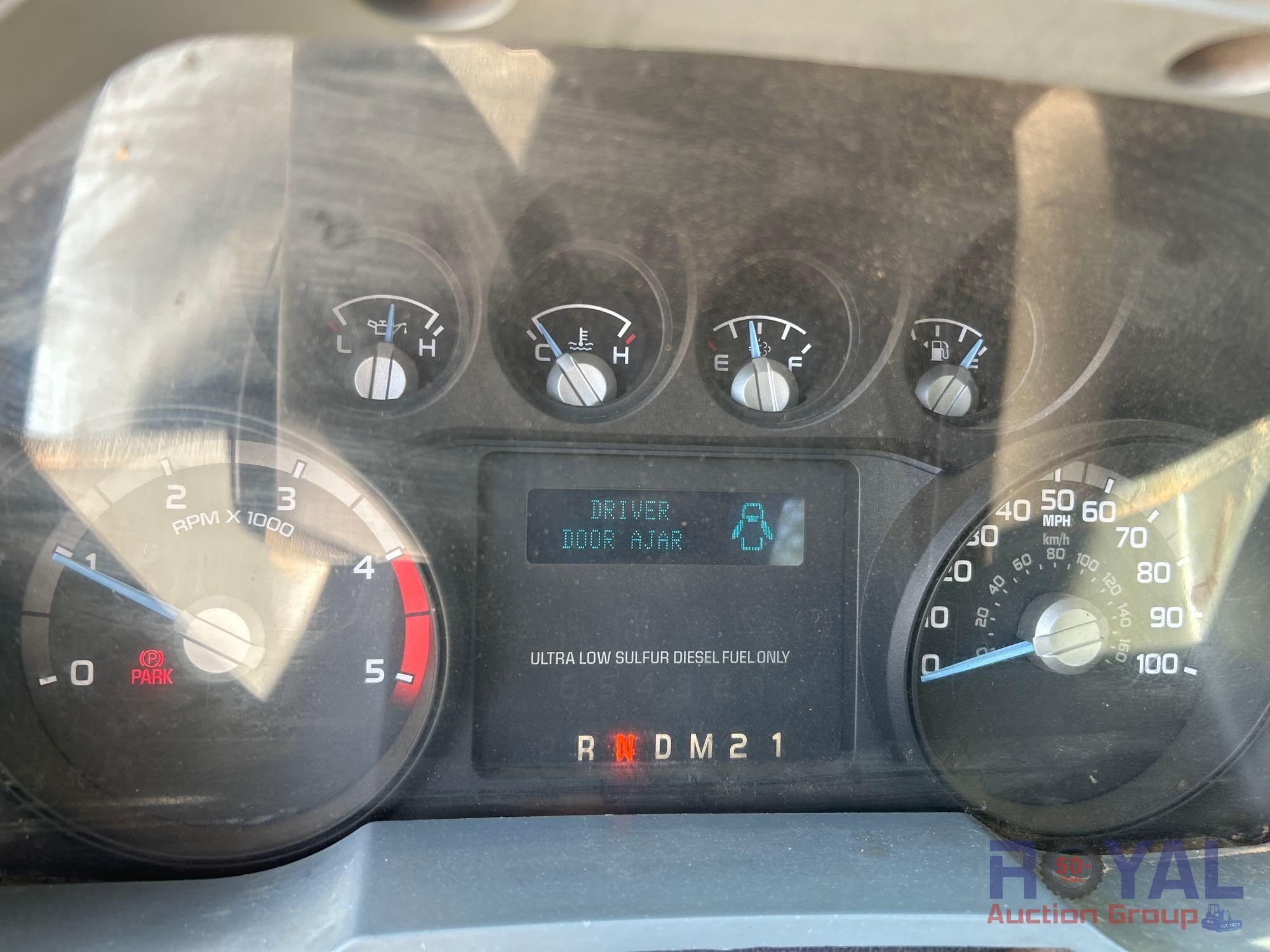 VIN: 1FDXF7DE4GDA03980 Odom reads 109,129 miles. Powered by a Power Stroke 6.7L V8 Turbo Diesel Engine, Automatic Transmission. Equipped with flatbed body with left side service storage boxes, tow package, GVWR 33,000lbs, front GAWR 12,000lbs, rear GAWR 21,000lbs, dual wheel rear axle, air brakes, trailer air supply, steering wheel cruise controls, AM/FM stereo, auxiliary switches, climate controls, AUX input, 12V charging. Runs and drives, Limited function check completed at check in.