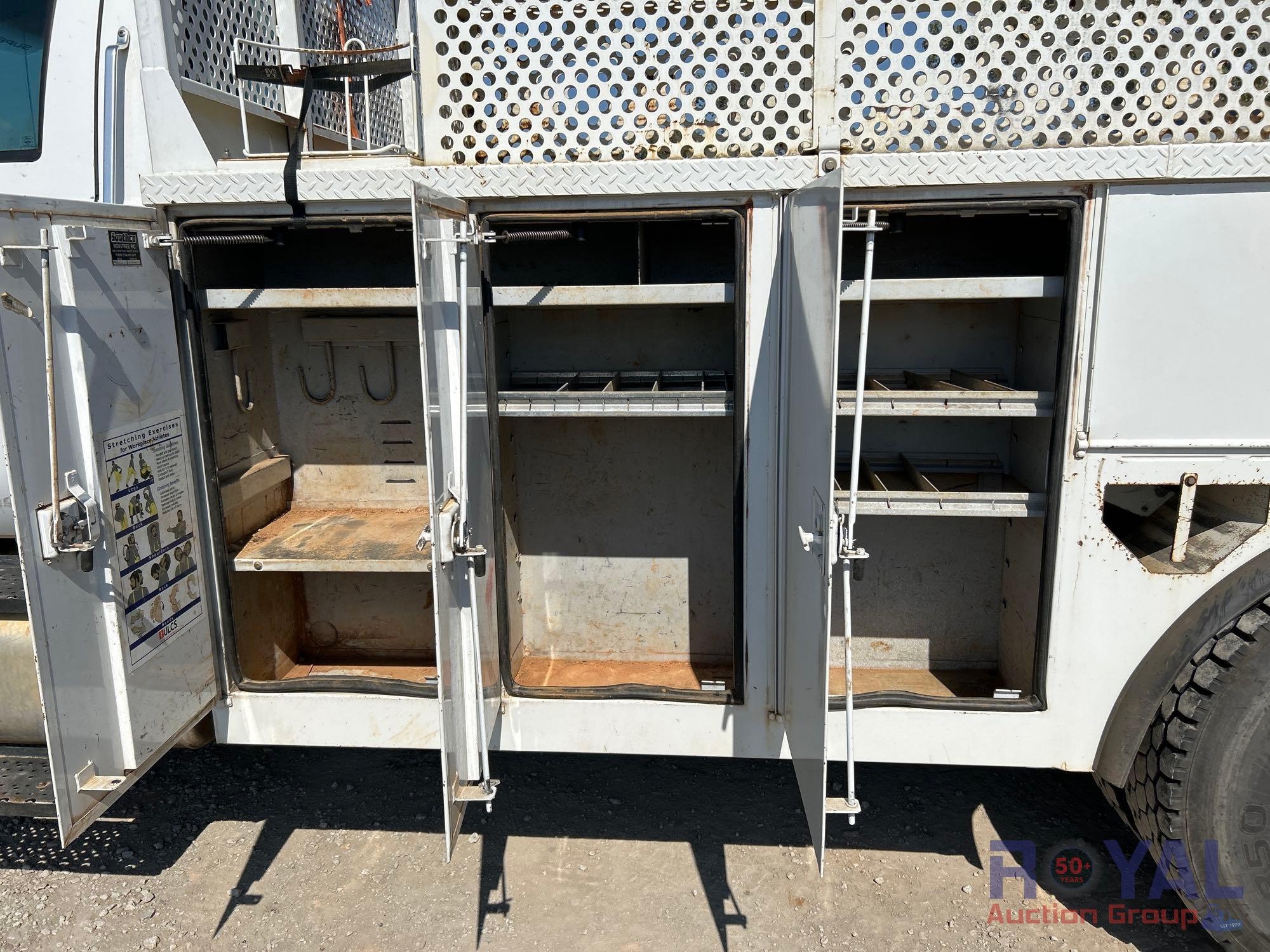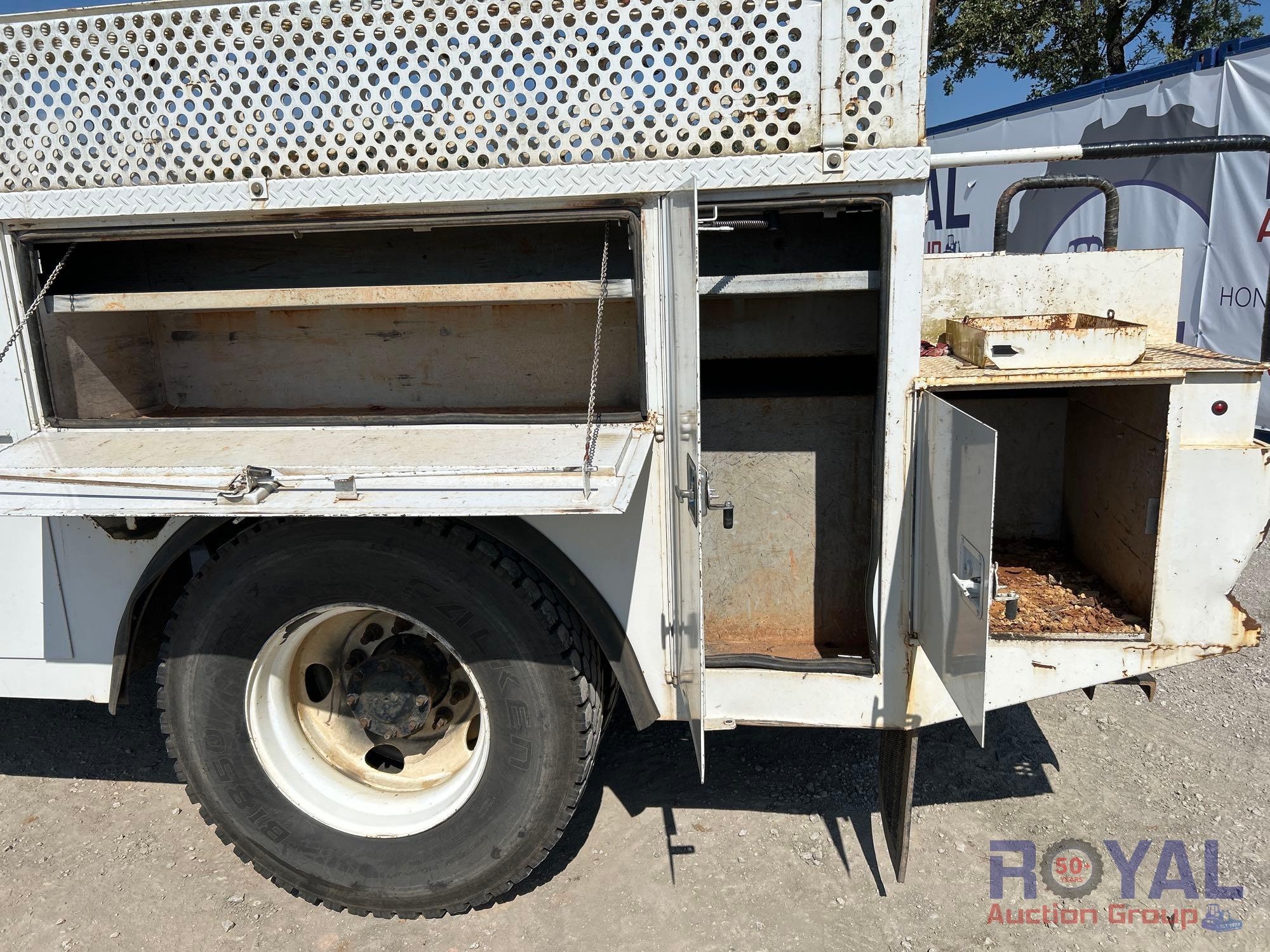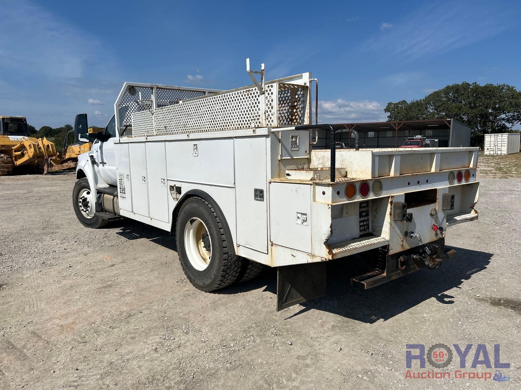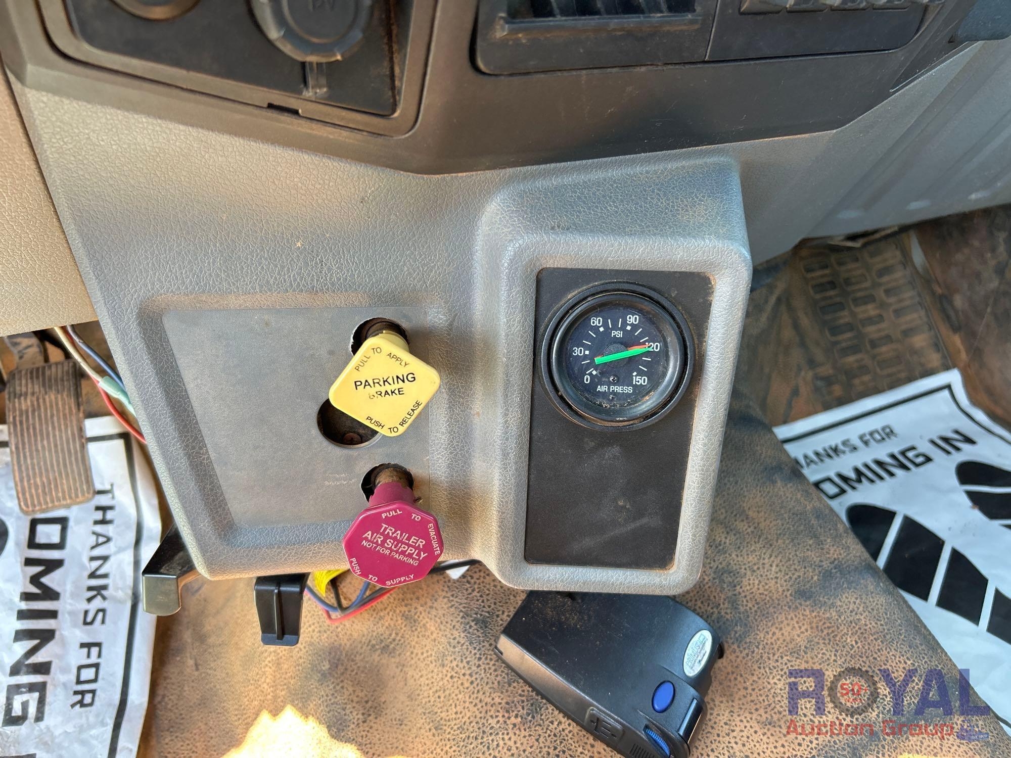 VIN: 1FDXF7DE4GDA03980 Odom reads 109,129 miles. Powered by a Power Stroke 6.7L V8 Turbo Diesel Engine, Automatic Transmission. Equipped with flatbed body with left side service storage boxes, tow package, GVWR 33,000lbs, front GAWR 12,000lbs, rear GAWR 21,000lbs, dual wheel rear axle, air brakes, trailer air supply, steering wheel cruise controls, AM/FM stereo, auxiliary switches, climate controls, AUX input, 12V charging. Runs and drives, Limited function check completed at check in.