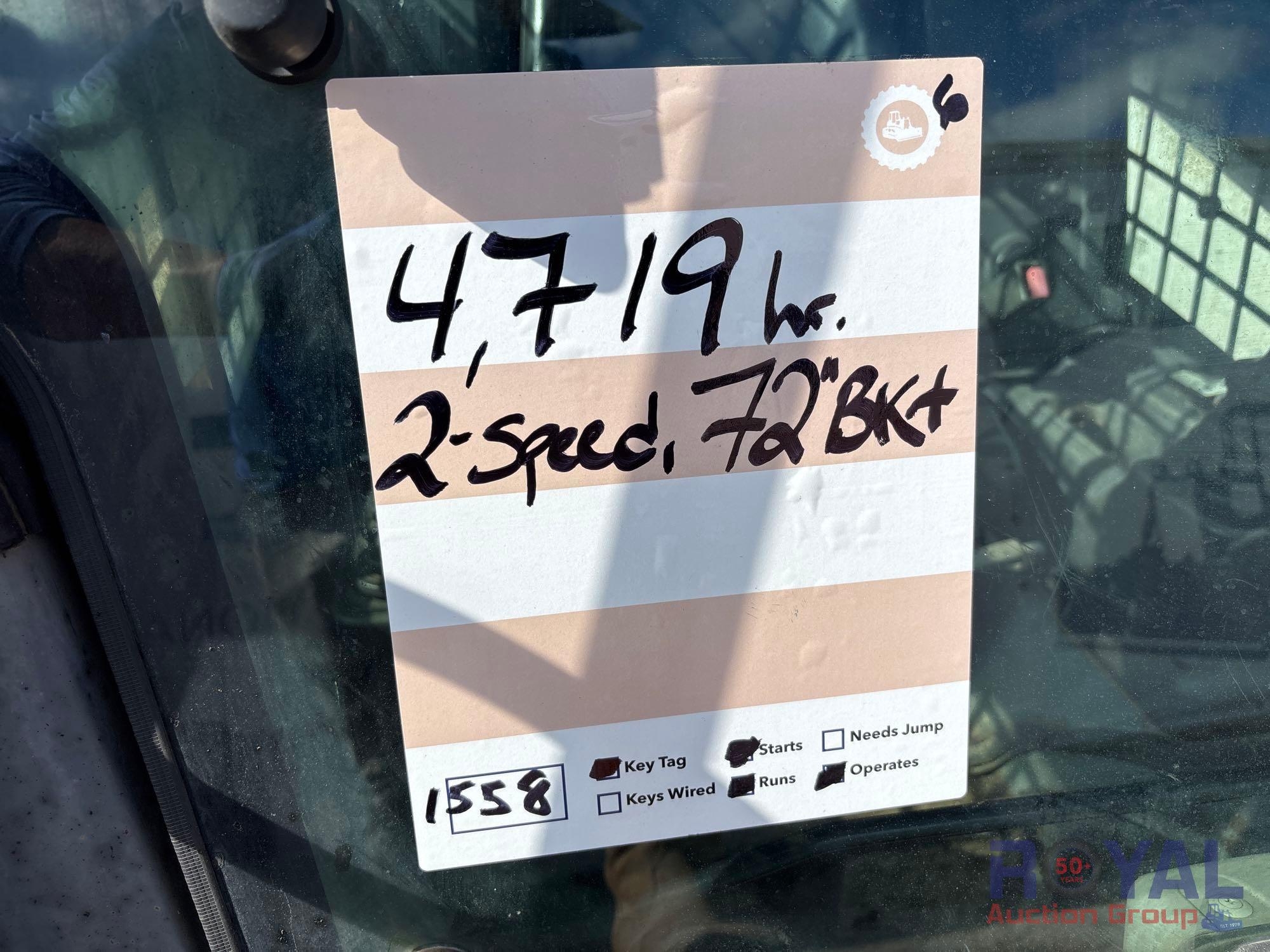 SN: 410000536, Odom Reads: 4,719 hours. Powered by a V3307-CR-T-EF02 Turbo Diesel Engine, Hydrostatic Drive. Equipped with 72in general purpose loader bucket with bolt on cutting edge, hydraulic quick coupler, adjustable throttle with two speed, auxiliary hydraulics, rubber tracks, digital info display, pilot bucket and drive controls, rear backup assist camera, AM/FM stereo, climate controls, cab work lights, EROPS enclosed cab. Runs, drives, and operates, Limited function check completed at check in.
