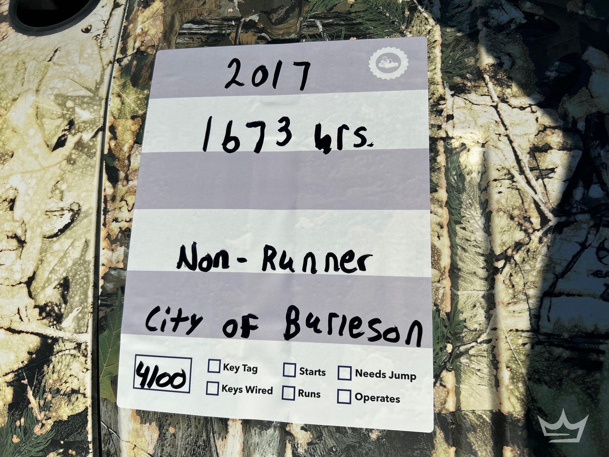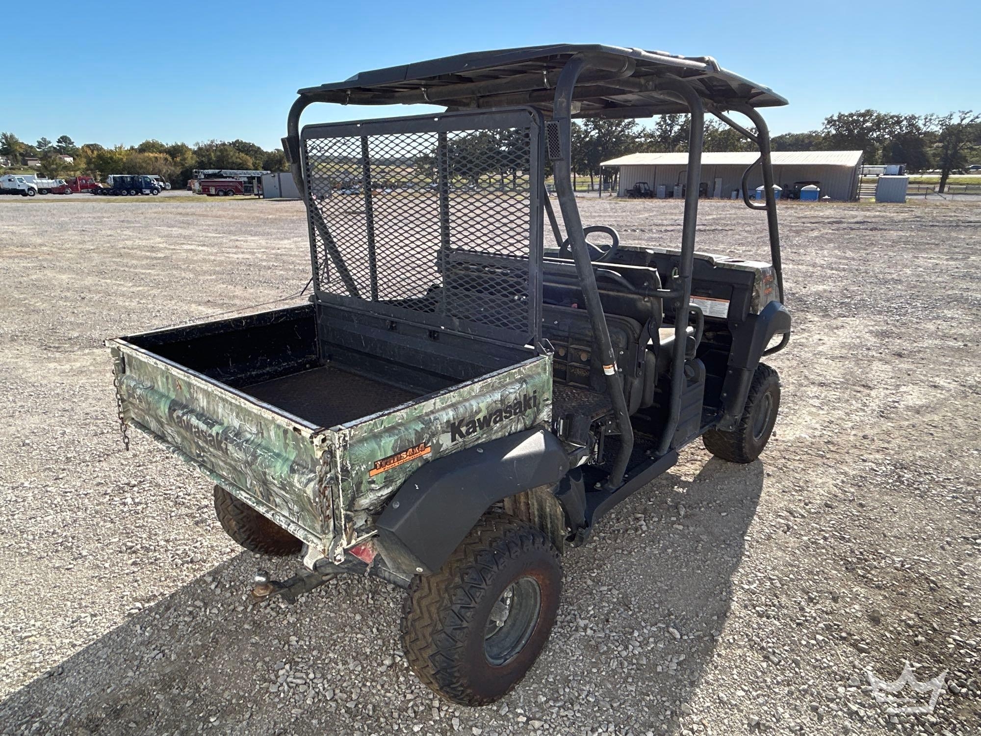 City of Burleson(630) SN:JK1AFCS18GB510745. Odom reads 1,673 hours Powered by: Kawasaki gas engine, CVT transmission . Equipped with: Four wheel drive/4WD, H/L shifter, 2WD/4WD shifter, 4 passenger seating, utility bed, headlights, front bumper guard, 4 post ROPS, ball hitch receiver, towing capacity 1,200 lbs, 1,300 lbs payload capacity. Non-Runner *Title Remarks: Off-Highway Use Only*