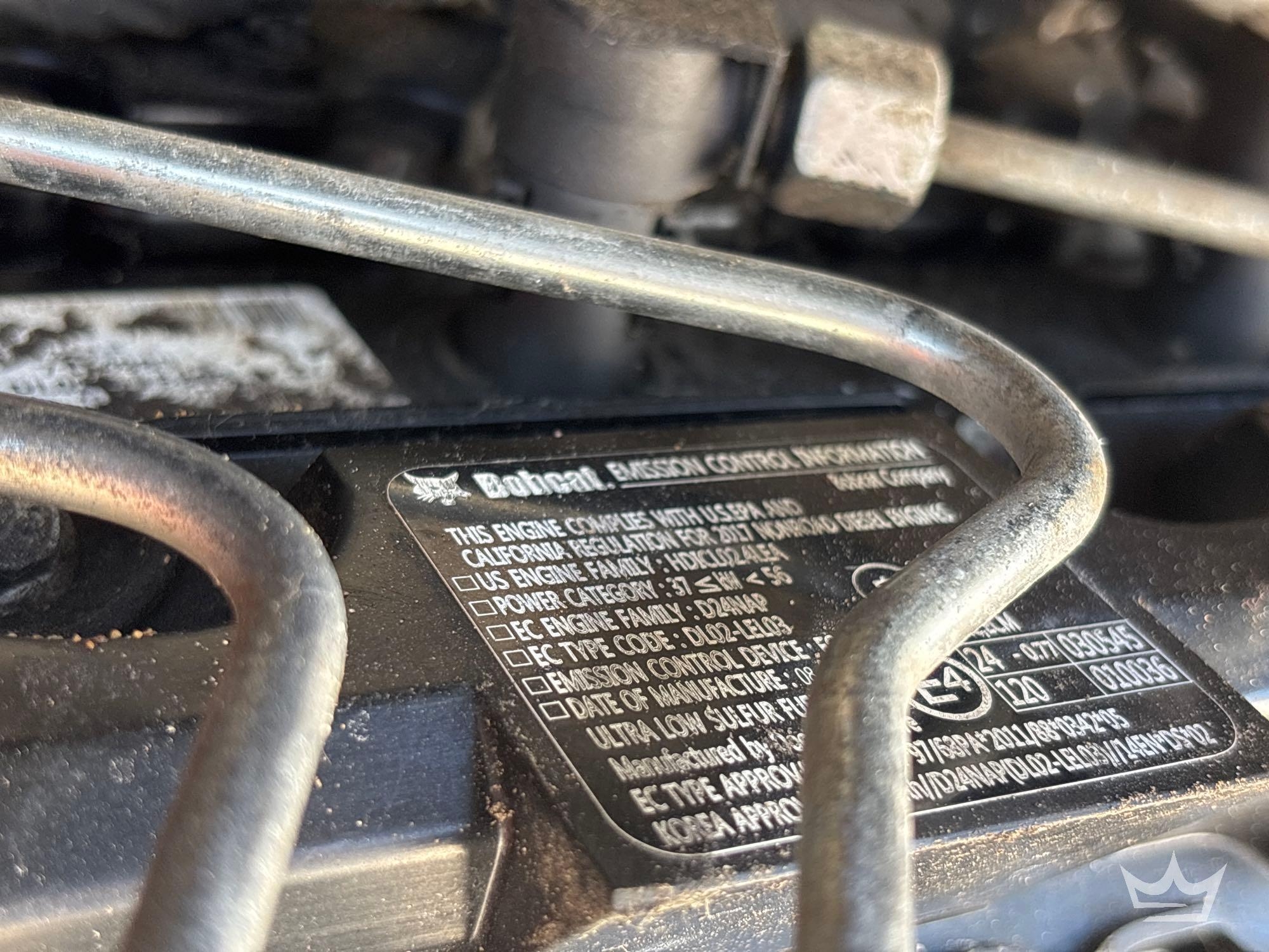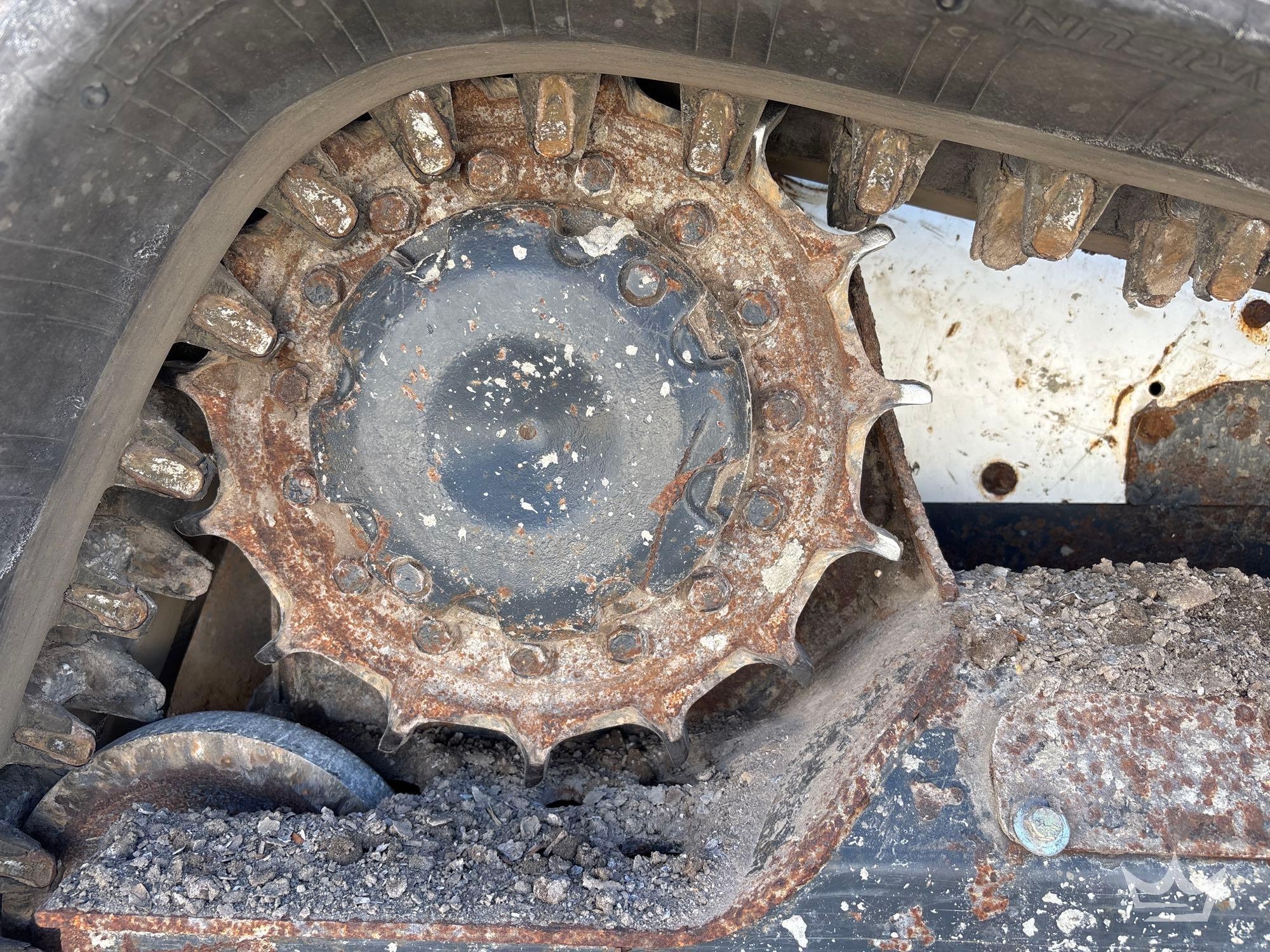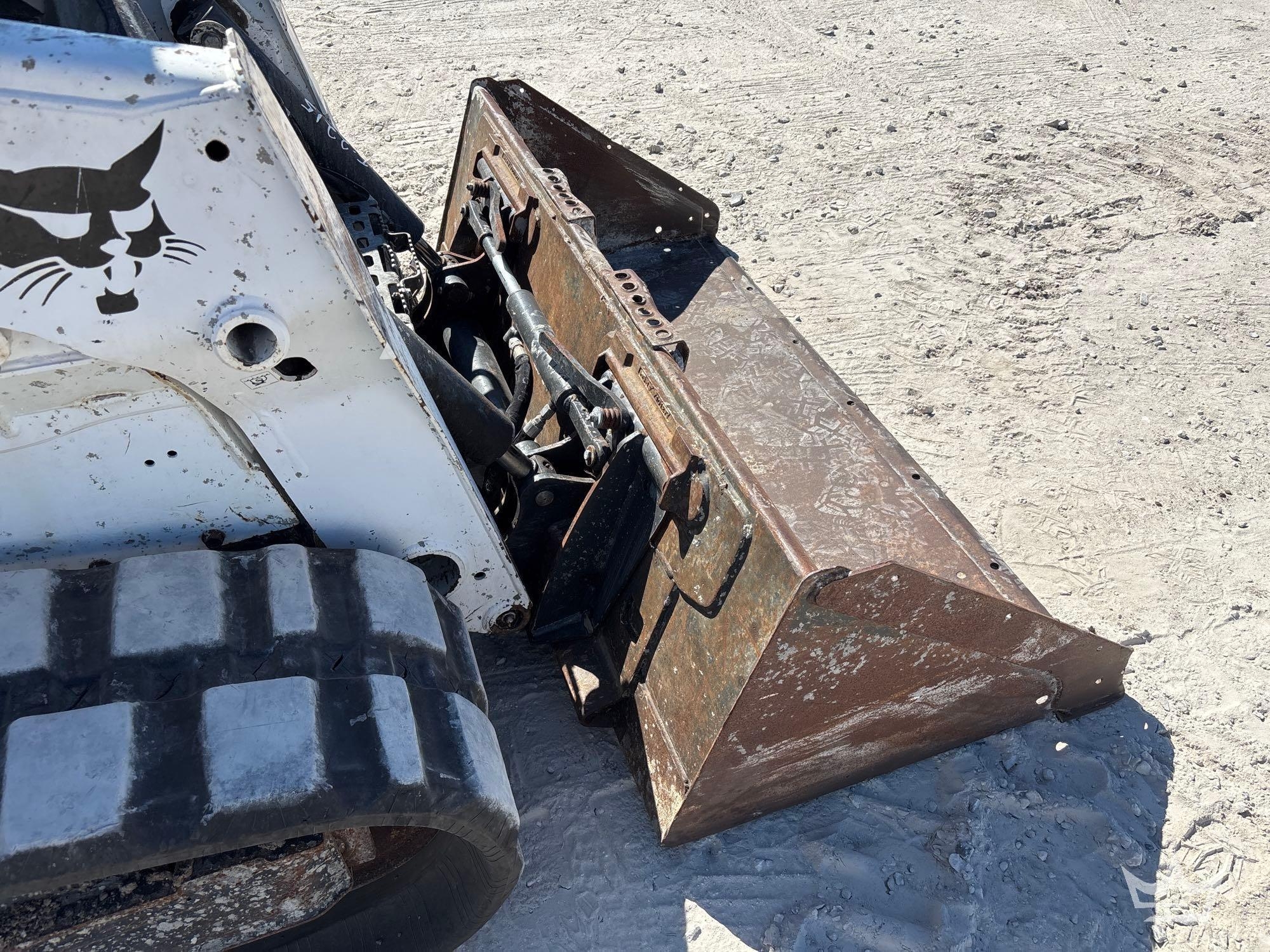 PIN: ALJU25246 Hours read 2,307 hrs. Pwd. by Bobcat D24NAP 4-cylinder Diesel Engine, Hydrostatic Drive. Equipped with: general purpose front loader bucket with bolt on cutting edge, manual quick coupler, auxiliary hydraulics, 12in rubber tracks, ISO switch, adjustable throttle with two speed, pilot bucket and drive controls, cab work lights, ROPS. Runs, drives, and operates, Unit shuts off after running for a few minutes. Limited function check completed at check in.