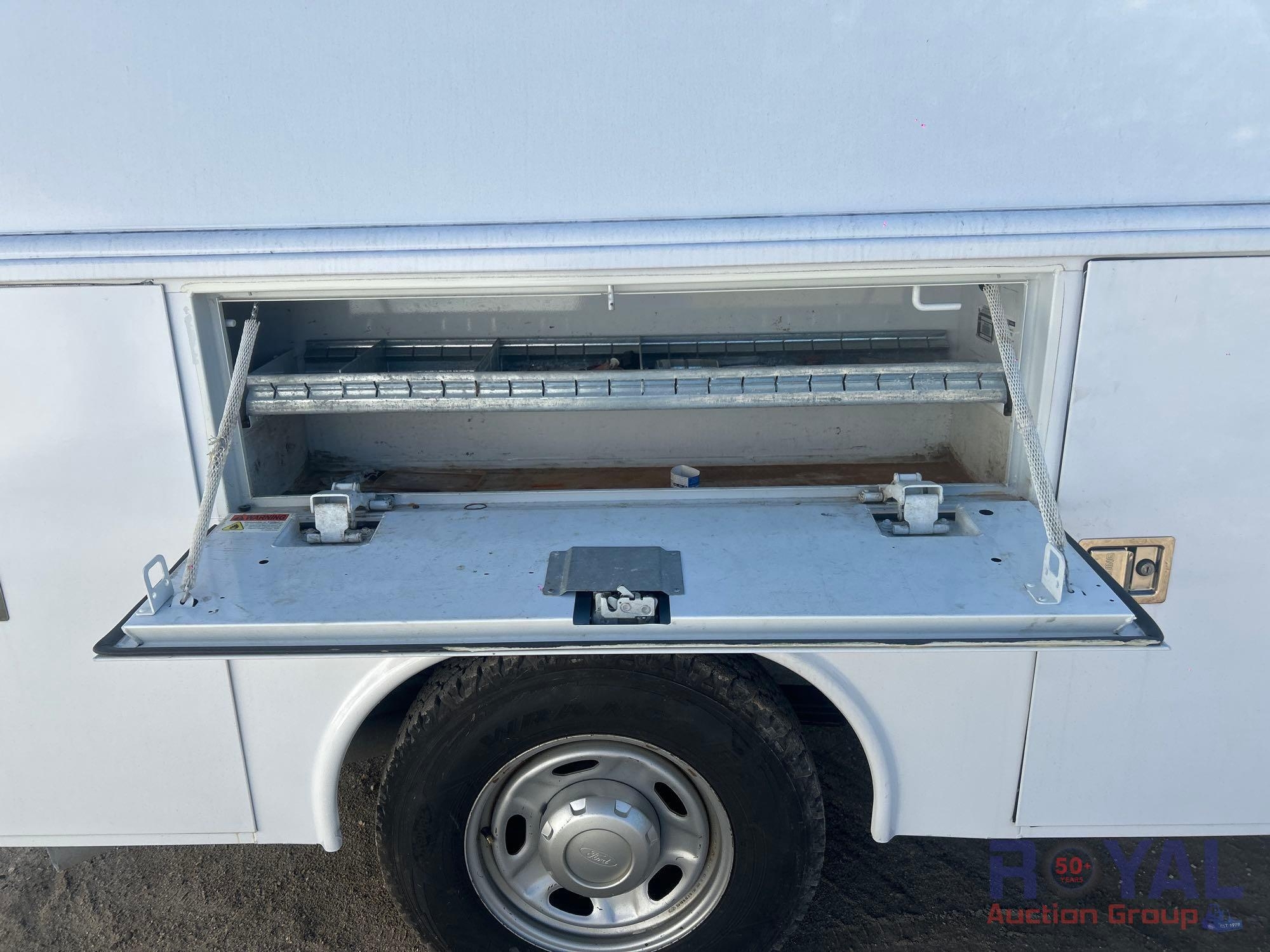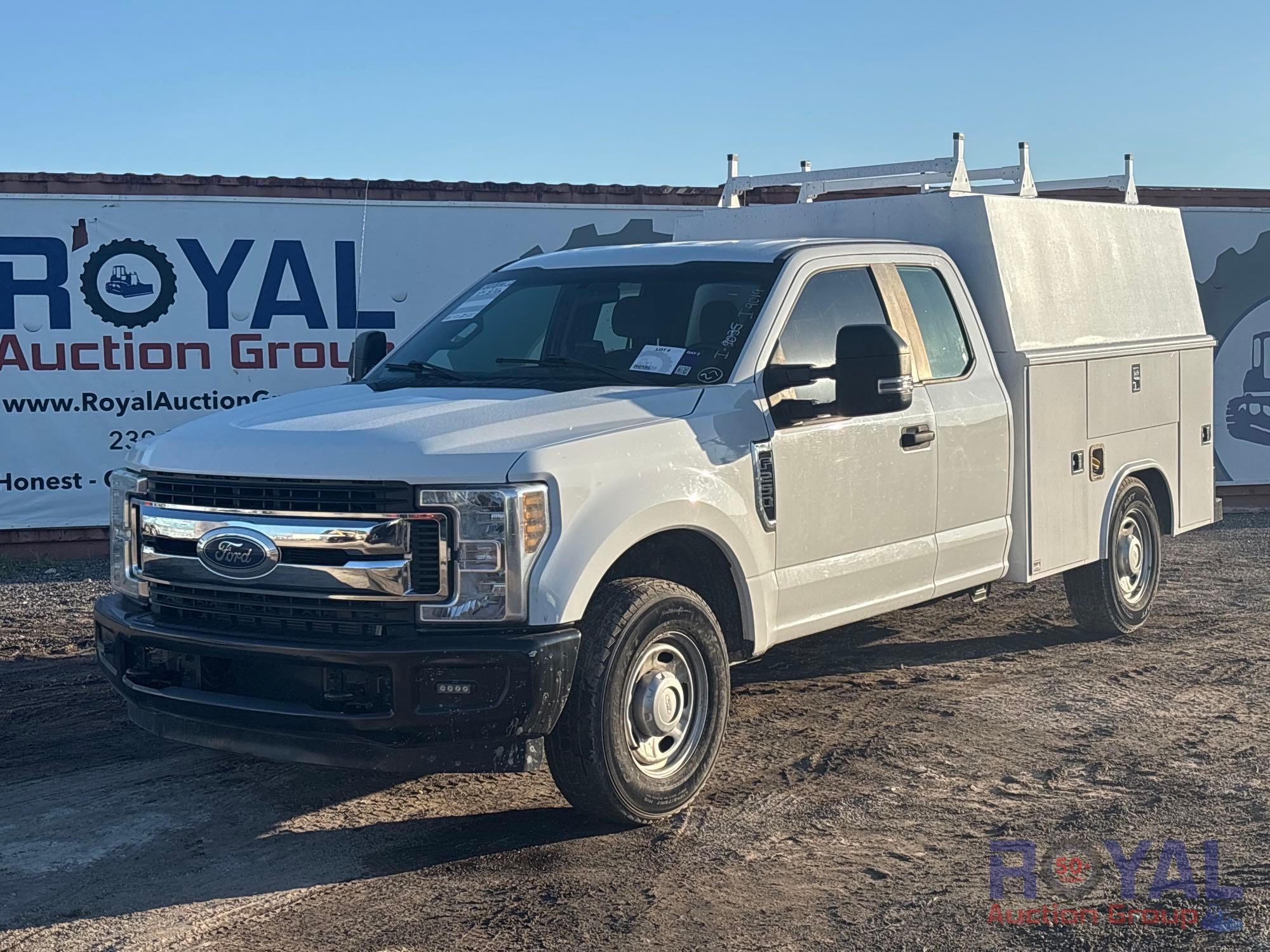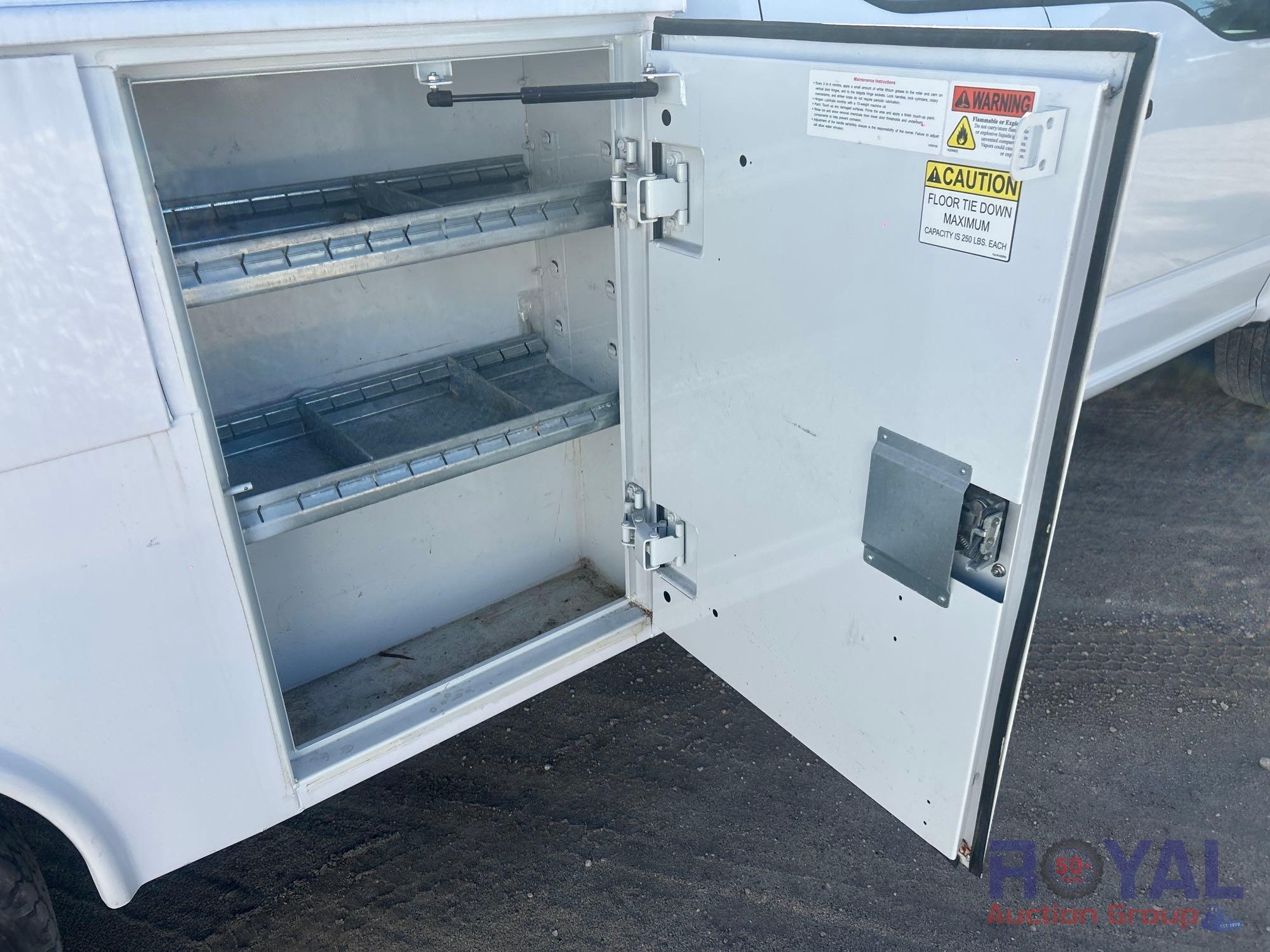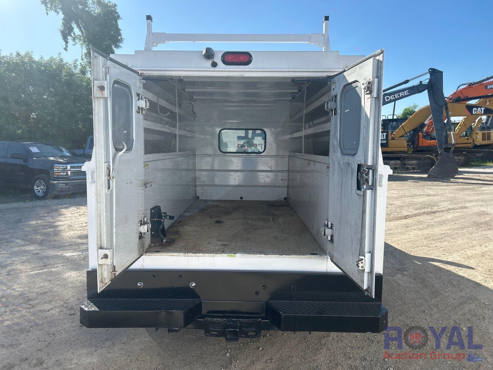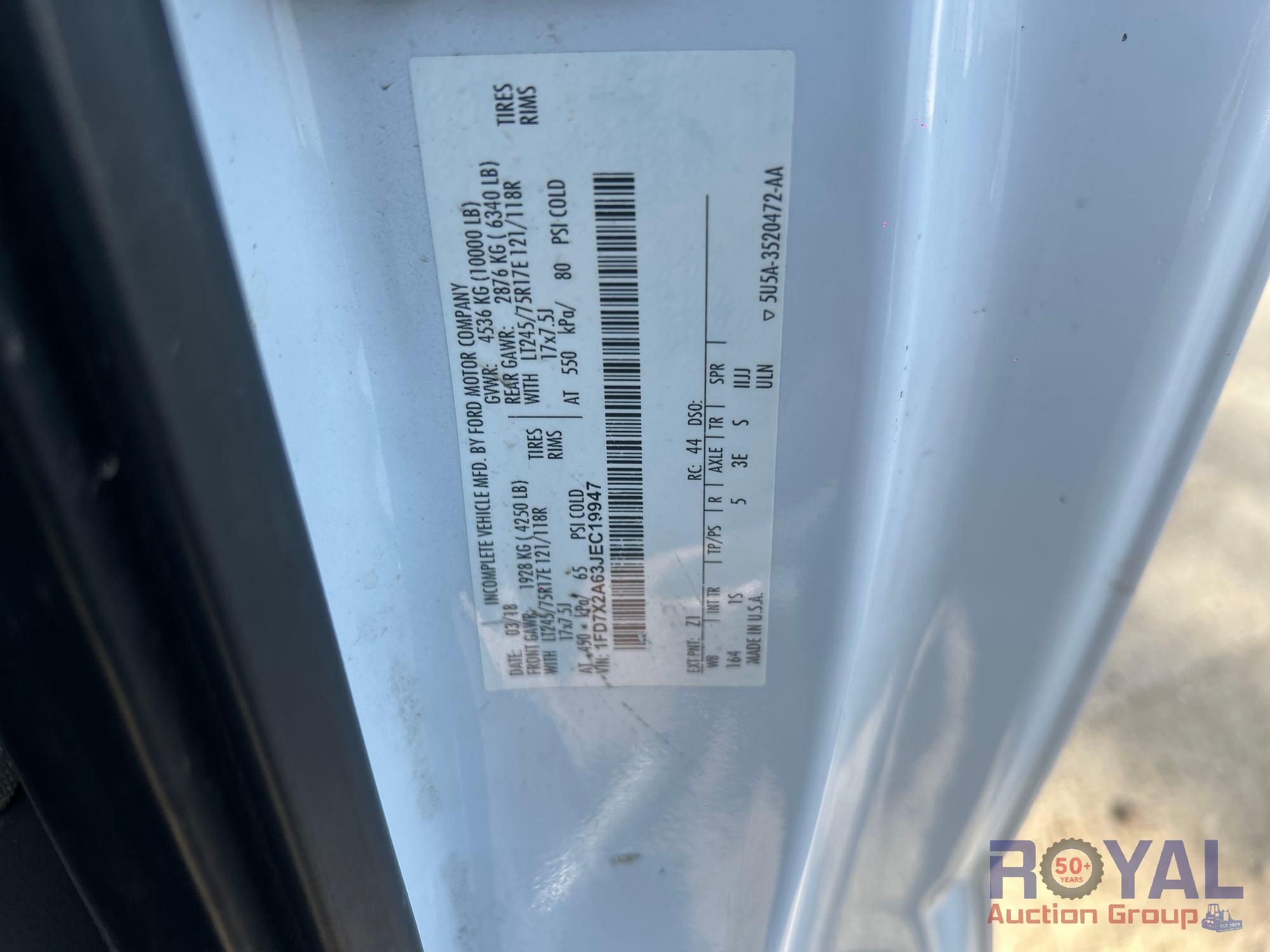 VIN: 1FD7X2A63JEC19947, odom reads 184,871 miles, pwd by 6.2L V8 gas engine, automatic transmission. Equipped with: tow package, Reading enclosed service body, roof ladder rack, step bumper, diff lock, ECCO screen, pwr windows, locks, and mirrors, trailer brake controls, hands free phone capable, steering wheel phone and media controls, AC/heat, am/fm/cd stereo infotainment system. Runs and drives. Limited function check completed at check in.
