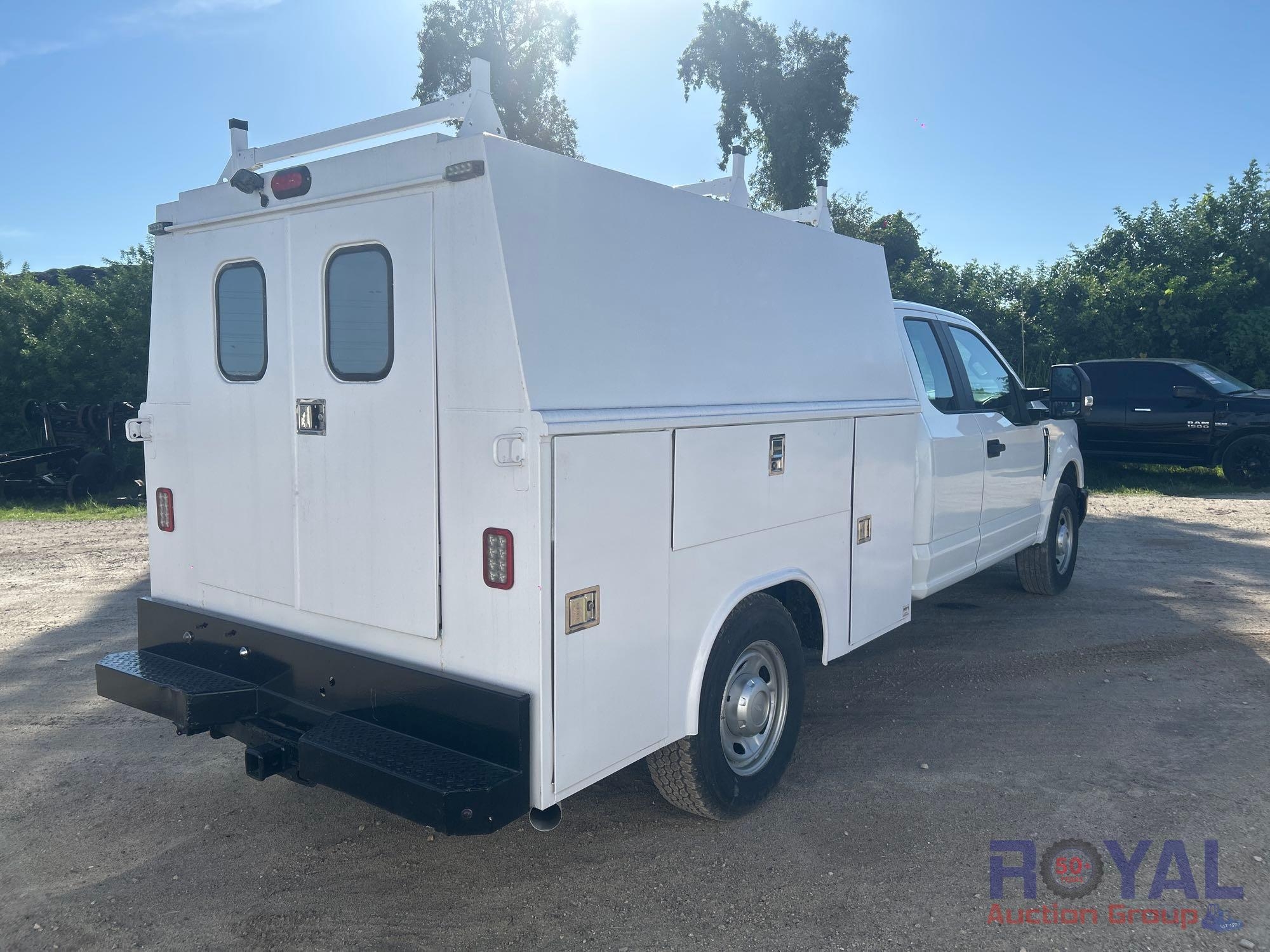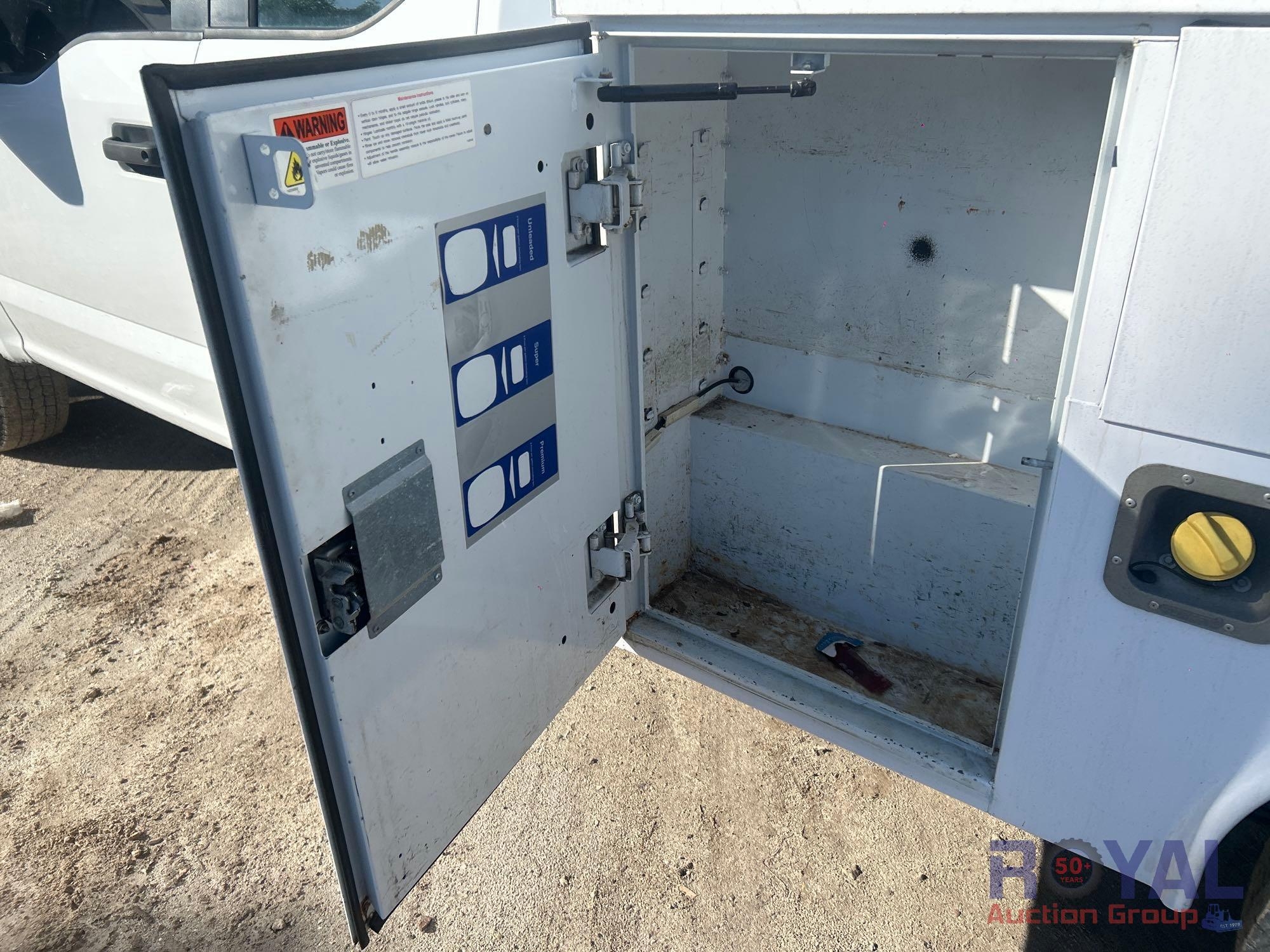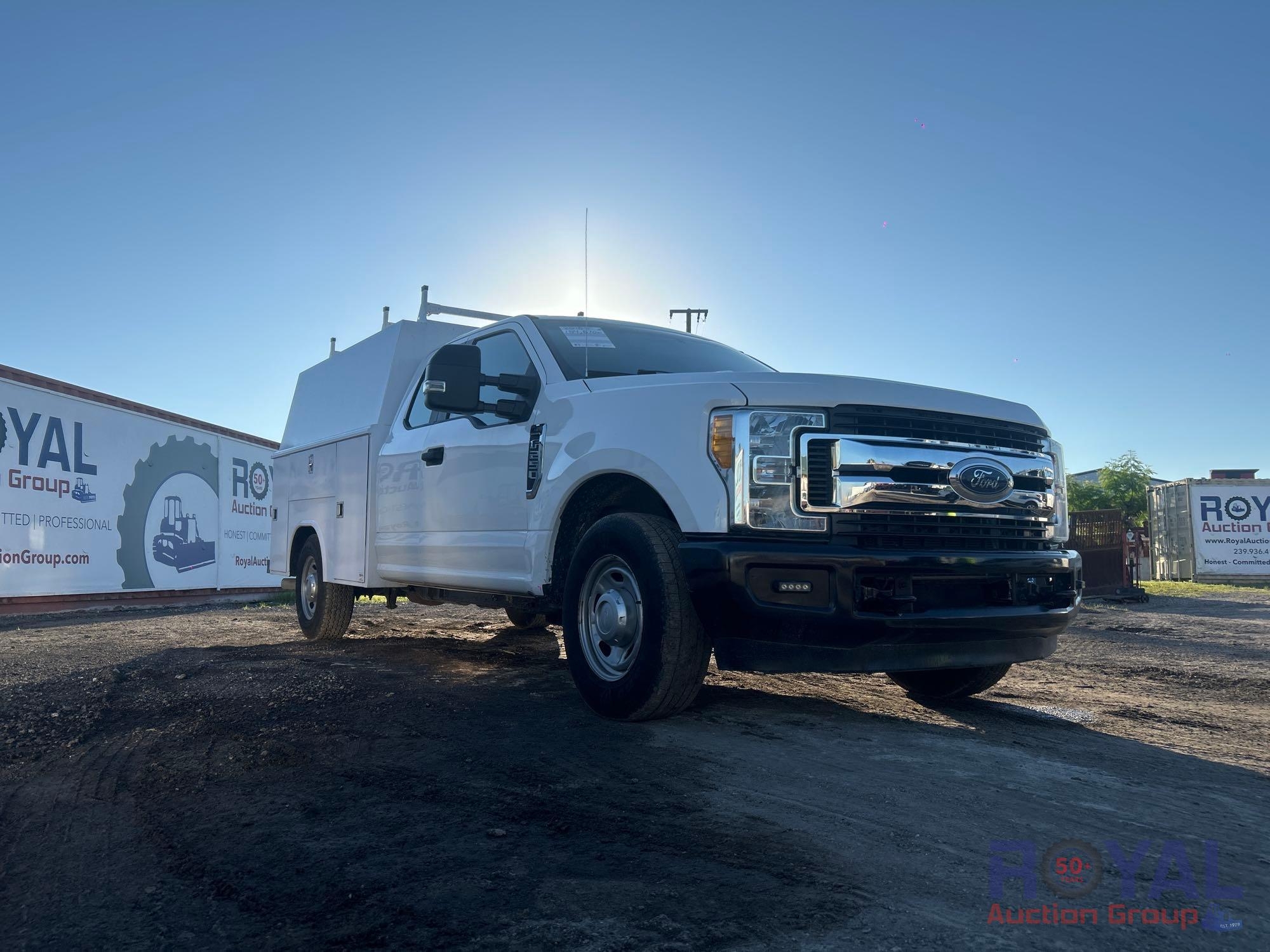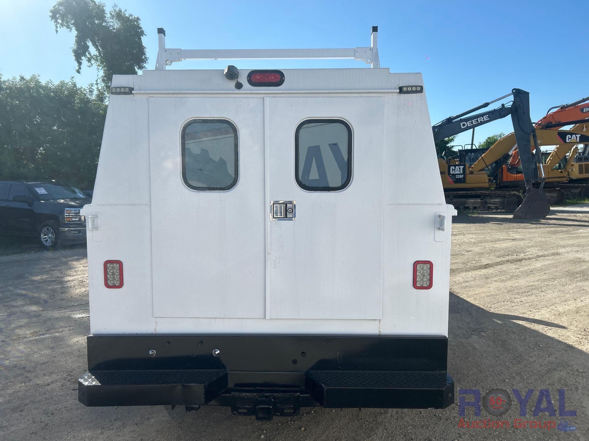 VIN: 1FD7X2A63JEC19947, odom reads 184,871 miles, pwd by 6.2L V8 gas engine, automatic transmission. Equipped with: tow package, Reading enclosed service body, roof ladder rack, step bumper, diff lock, ECCO screen, pwr windows, locks, and mirrors, trailer brake controls, hands free phone capable, steering wheel phone and media controls, AC/heat, am/fm/cd stereo infotainment system. Runs and drives. Limited function check completed at check in.