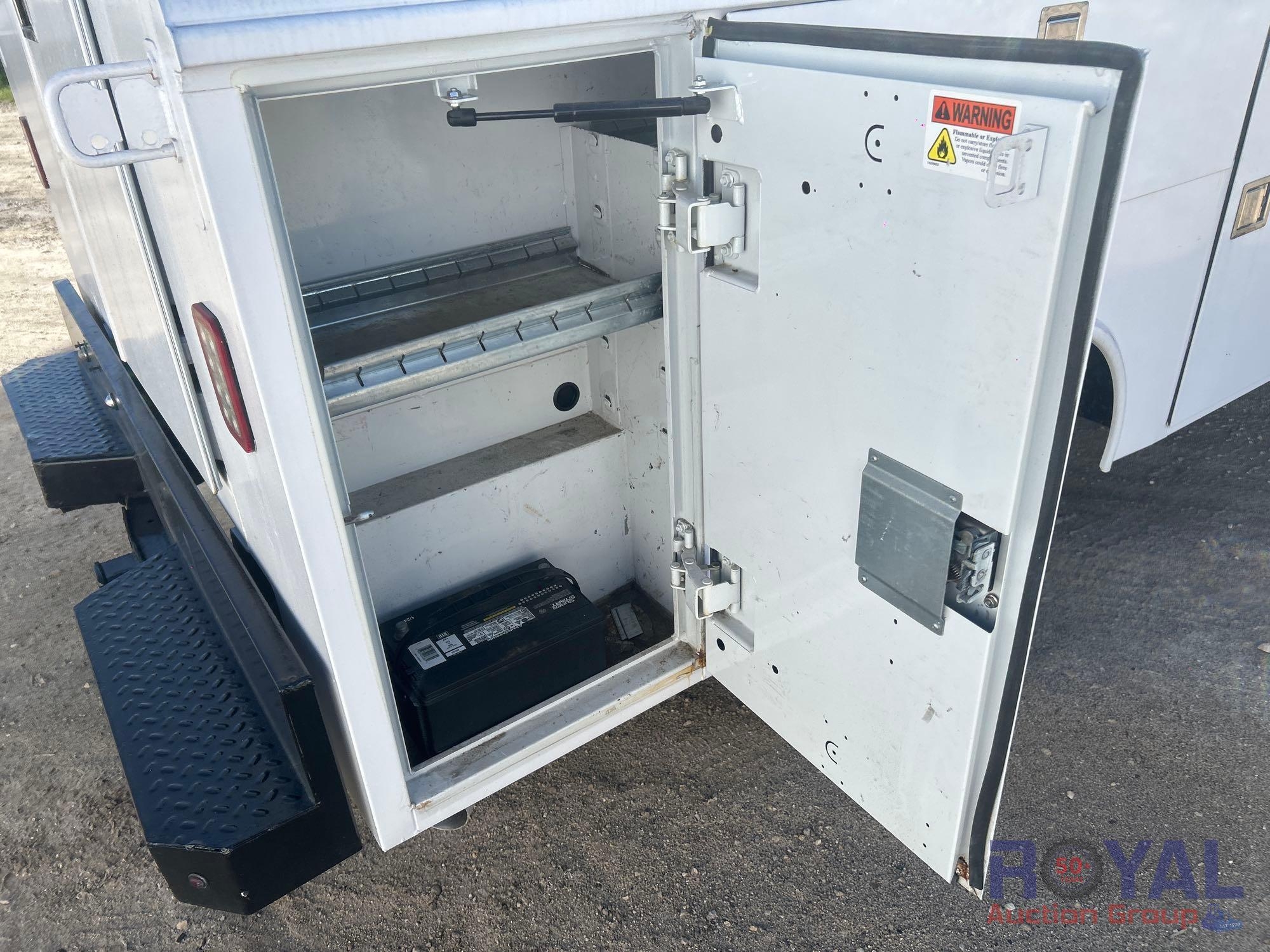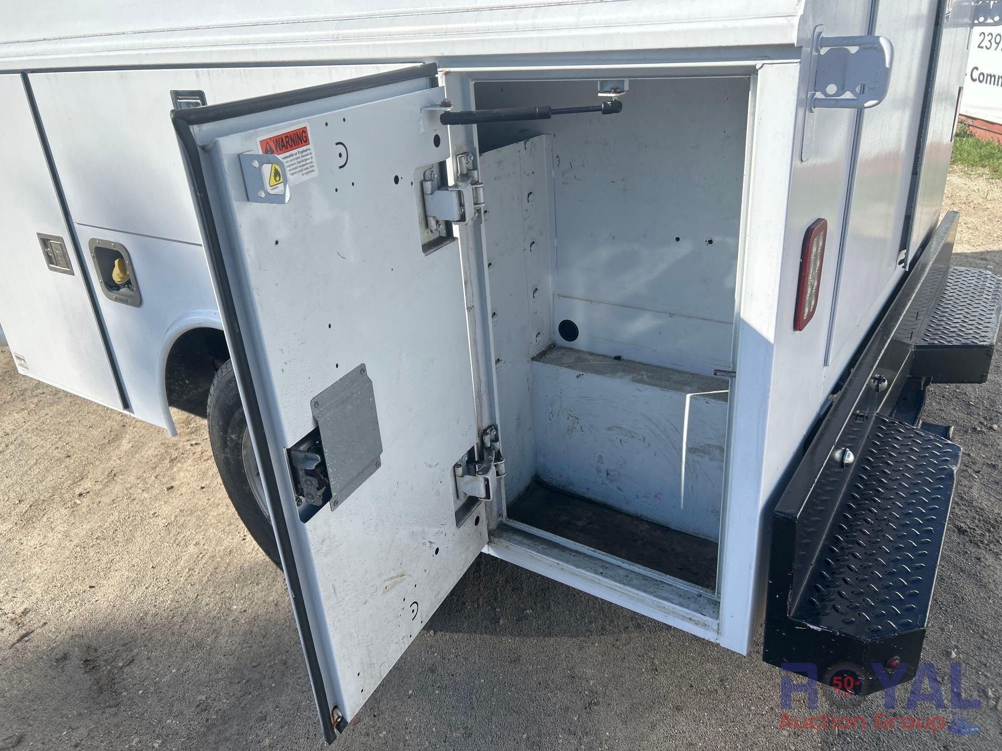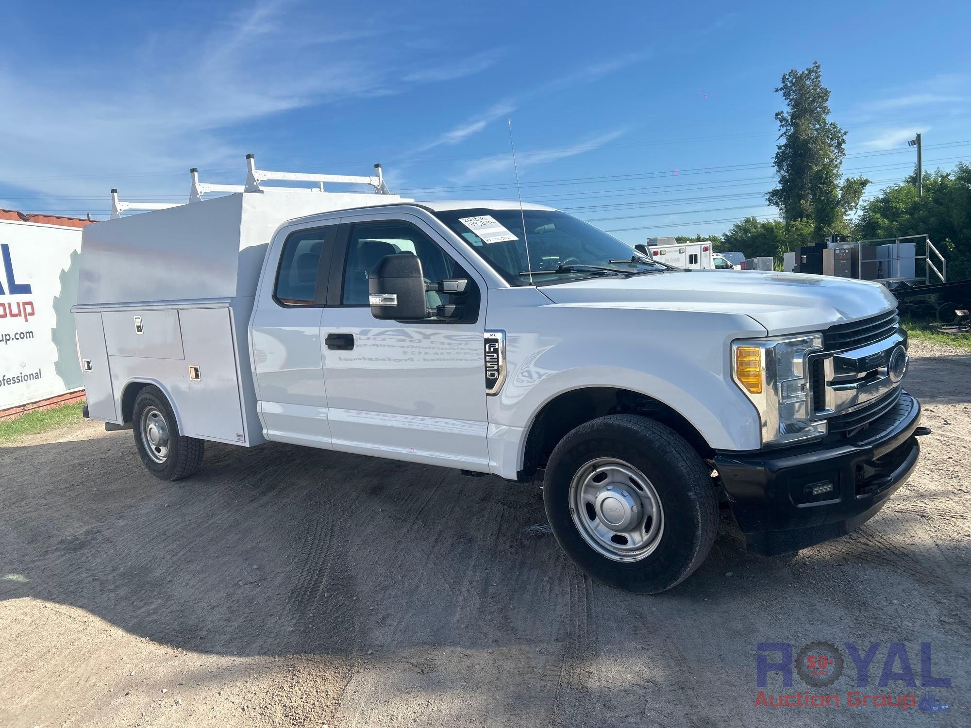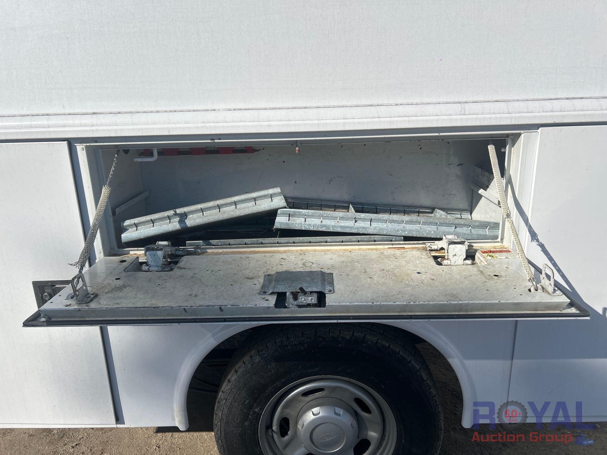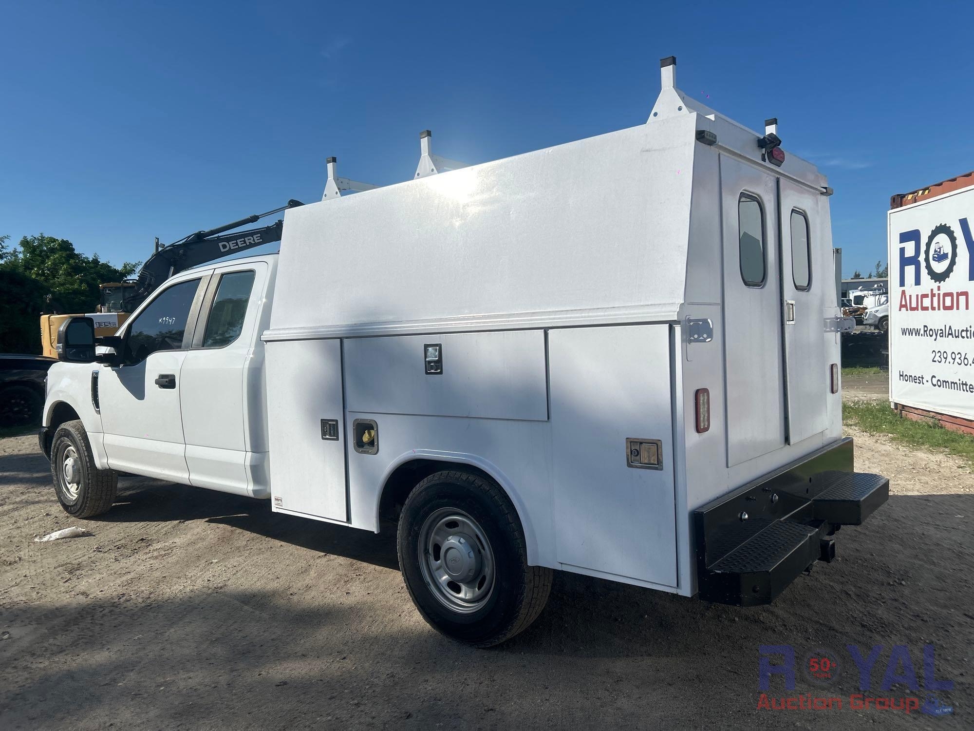 VIN: 1FD7X2A63JEC19947, odom reads 184,871 miles, pwd by 6.2L V8 gas engine, automatic transmission. Equipped with: tow package, Reading enclosed service body, roof ladder rack, step bumper, diff lock, ECCO screen, pwr windows, locks, and mirrors, trailer brake controls, hands free phone capable, steering wheel phone and media controls, AC/heat, am/fm/cd stereo infotainment system. Runs and drives. Limited function check completed at check in.