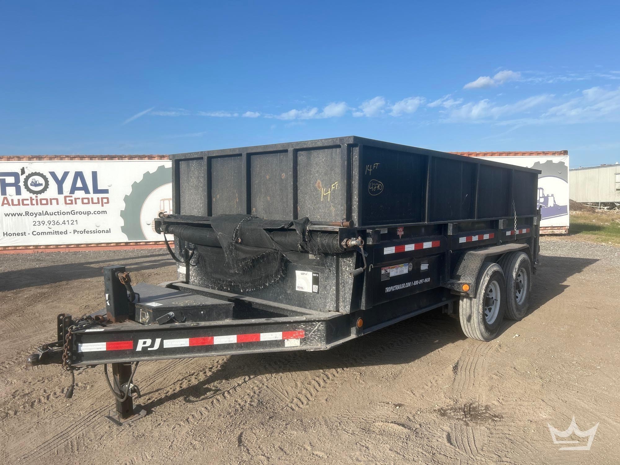 *Selling at Royal Auction Fort Myers, FL Location* VIN: 4P5DL1427J3032329, 14ft length, dual rear side swing dump doors, 8-lug axles, high metal walls, tongue storage compartment, manual jack stand, adjustable ball hitch receiver.